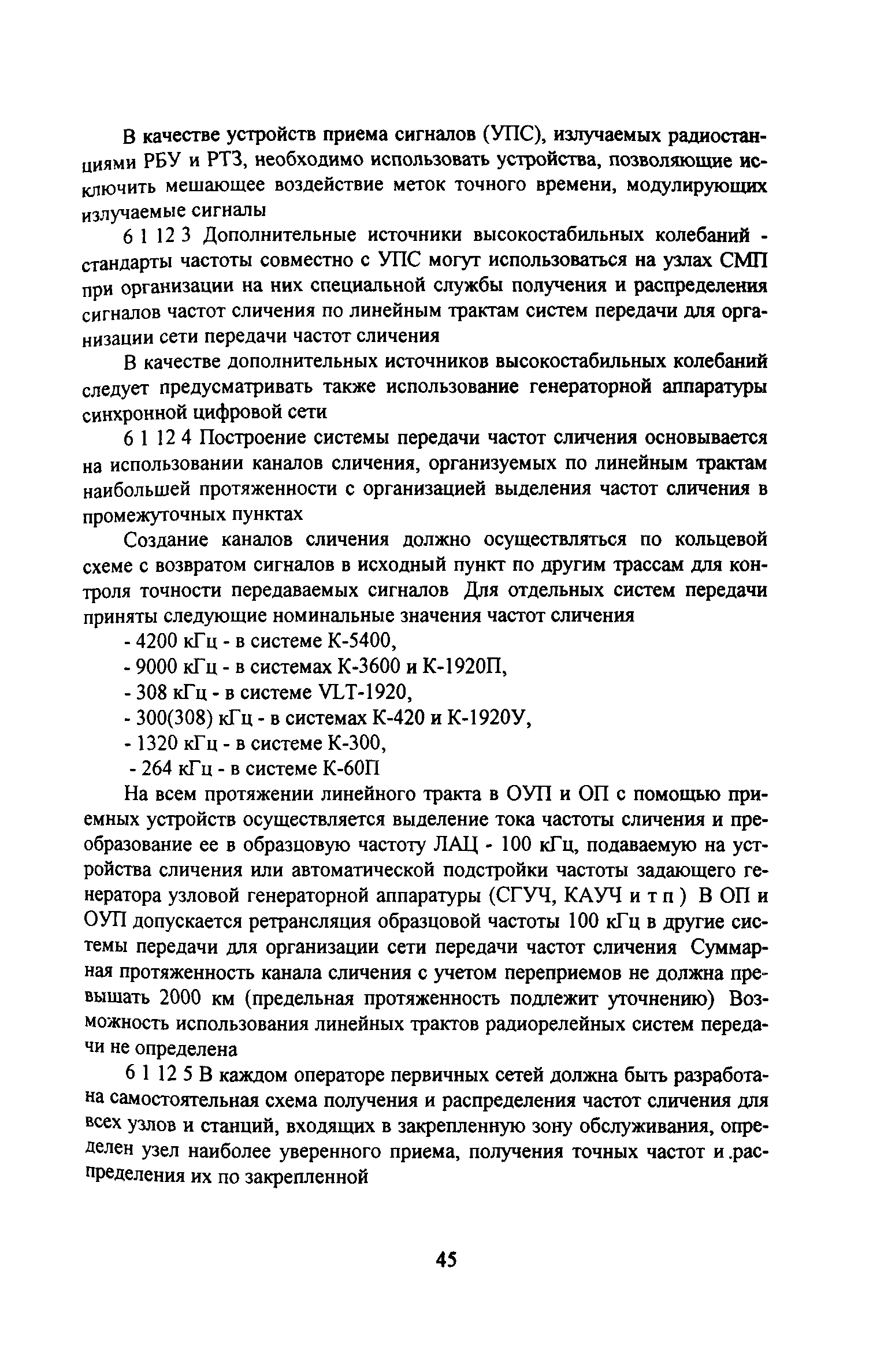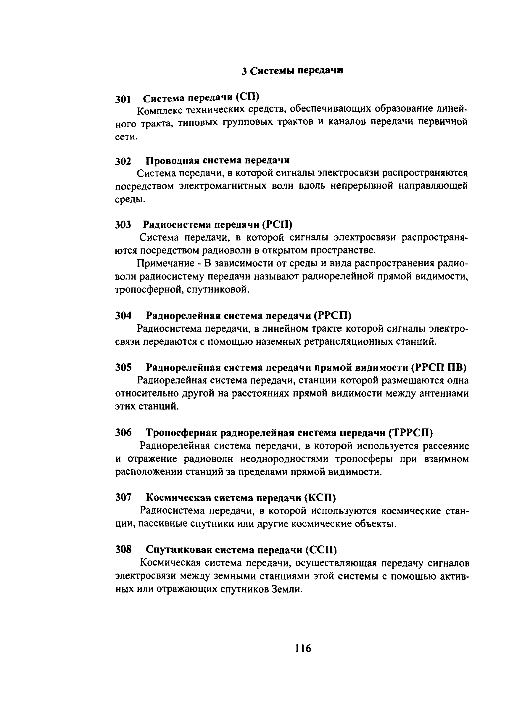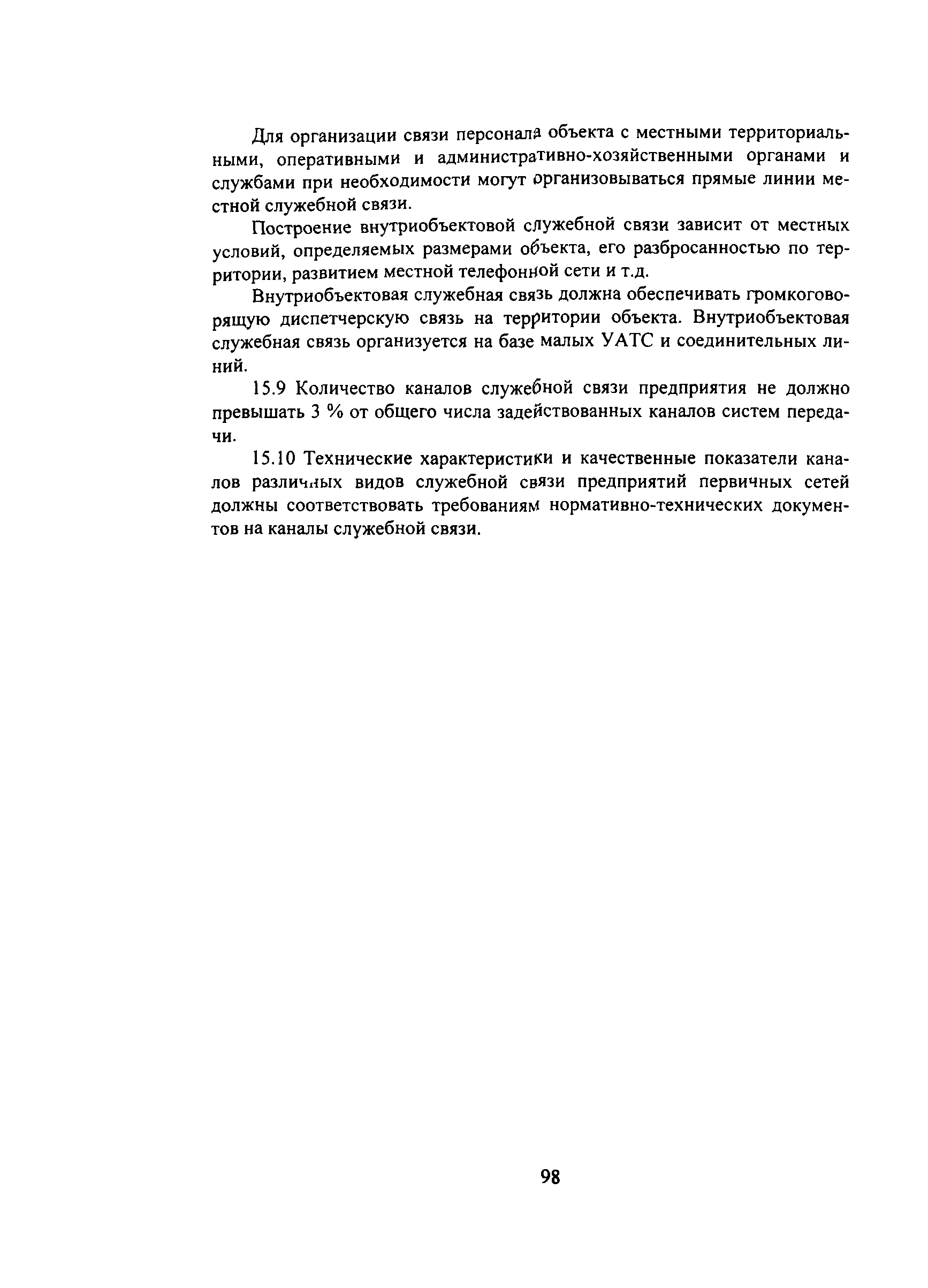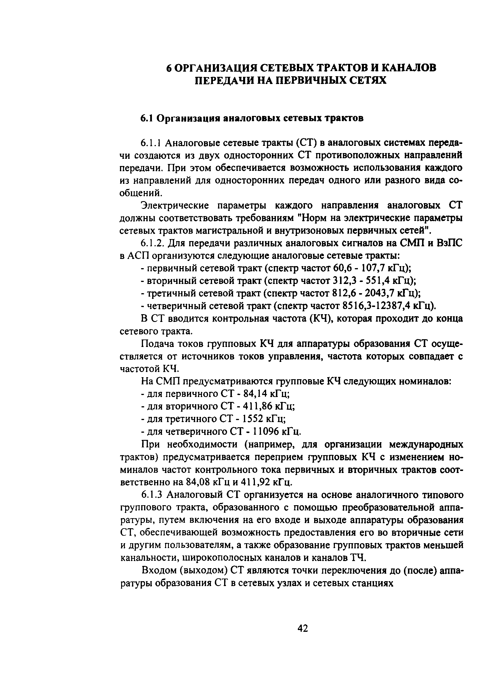 | | Нормативные ссылки: |   ОСТ 45.121-97 «Линии передачи кабельные магистральные и внутризоновые. Сооружения линейные. Термины и определения» СНиП II-4-79 «Естественное и искусственное освещение» ПР 50.2.014-96 «Государственная система обеспечения единства измерений. Правила проведения аккредитации метрологических служб юридических лиц на право поверки средств измерений»  ГОСТ 21.406-88 «Система проектной документации для строительства. Проводные средства связи. Обозначения условные графические на схемах и планах»  ГОСТ 19463-89 «Магистральные каналы изображения радиорелейных и спутниковых систем передачи. Основные параметры и методы измерений»  ГОСТ 26886-86 «Стыки цифровых каналов передачи и групповых трактов первичной сети ЕАСС. Основные параметры» ГОСТ 27908-88 «Стыки цифровых волоконно-оптических систем передачи первичной сети EACC. Номенклатура и основные параметры»  ГОСТ 12.1.005-88 «Система стандартов безопасности труда. Общие санитарно-гигиенические требования к воздуху рабочей зоны» ГОСТ Р 50712-94 «Соединительные линии и аппаратные звукового вещания. Технические характеристики. Методы измерений» ГОСТ Р 50725-94 «Соединительные линии в каналах изображения. Основные параметры. Методы измерений»  ГОСТ Р 50765-95 «Аппаратура радиорелейная. Классификация. Основные параметры цепей стыка»  ГОСТ Р 50933-96 «Каналы и тракты внутризоновых радиорелейных линий. Основные параметры и методы измерений»  ГОСТ Р 8.563-96 «Государственная система обеспечения единства измерений. Методики выполнения измерений» ВСН 332-93 «Инструкция по проектированию электроустановок предприятий и сооружений электросвязи, проводного вещания, радиовещания и телевидения» ВСН 333-93 «Инструкция по проектированию. Проводные средства связи и почтовая связь. Производственные здания» ВСН 45.122-77 «Инструкция по проектированию искусственного освещения предприятий связи» ВСН 601-92 «Допустимые уровни шума на предприятиях связи»  ГОСТ 22348-86 «Сеть связи автоматизированная единая. Термины и определения»  ГОСТ 27763-88 «Структуры циклов цифровых групповых сигналов первичной сети единой автоматизированной сети связи. Требования и нормы»  ГОСТ 28871-90 «Аппаратура линейных трактов цифровых волоконно-оптических систем передачи. Методы измерения основных параметров»  ГОСТ 28439-90 «Аппаратура волоконно-оптических систем передачи по линиям электропередач цифровая. Общие технические требования»  ГОСТ 5237-83 «Аппаратура электросвязи. Напряжения питания и методы измерений»  СНиП 2.09.04-87* «Административные и бытовые здания»  СНиП 2.04.01-85* «Внутренний водопровод и канализация зданий»  ГОСТ 11515-91 «Каналы и тракты звукового вещания. Основные параметры качества. Методы измерений»  СНиП 2.04.05-91* «Отопление, вентиляция и кондиционирование»  ГОСТ 21552-84 «Средства вычислительной техники. Общие технические требования, приемка, методы испытаний, маркировка, упаковка, транспортирование и хранение»  ПР 50.2.005-94 «Государственная система обеспечения единства измерений. Порядок лицензирования деятельности по изготовлению, ремонту, продаже и прокату средств измерений»