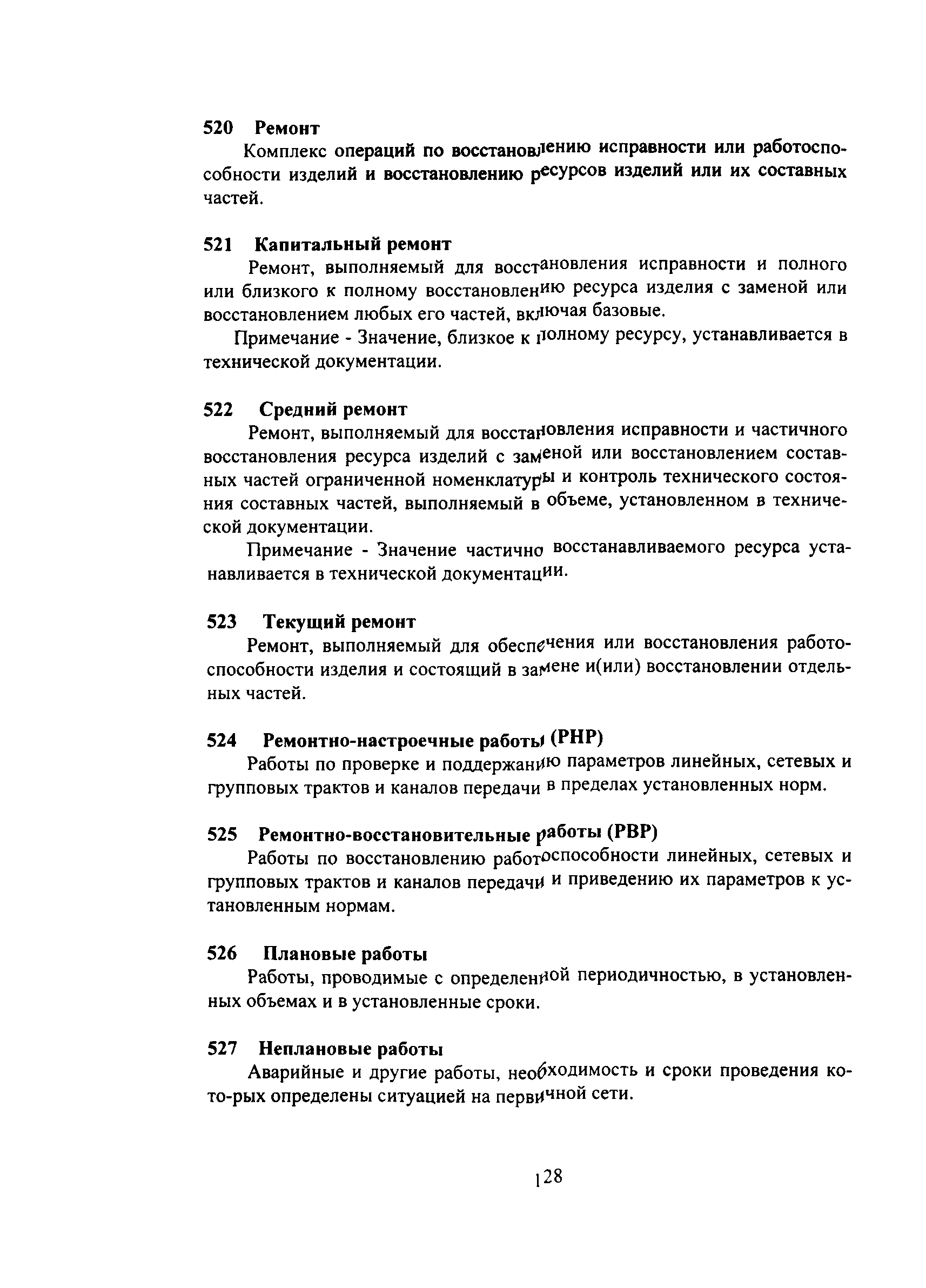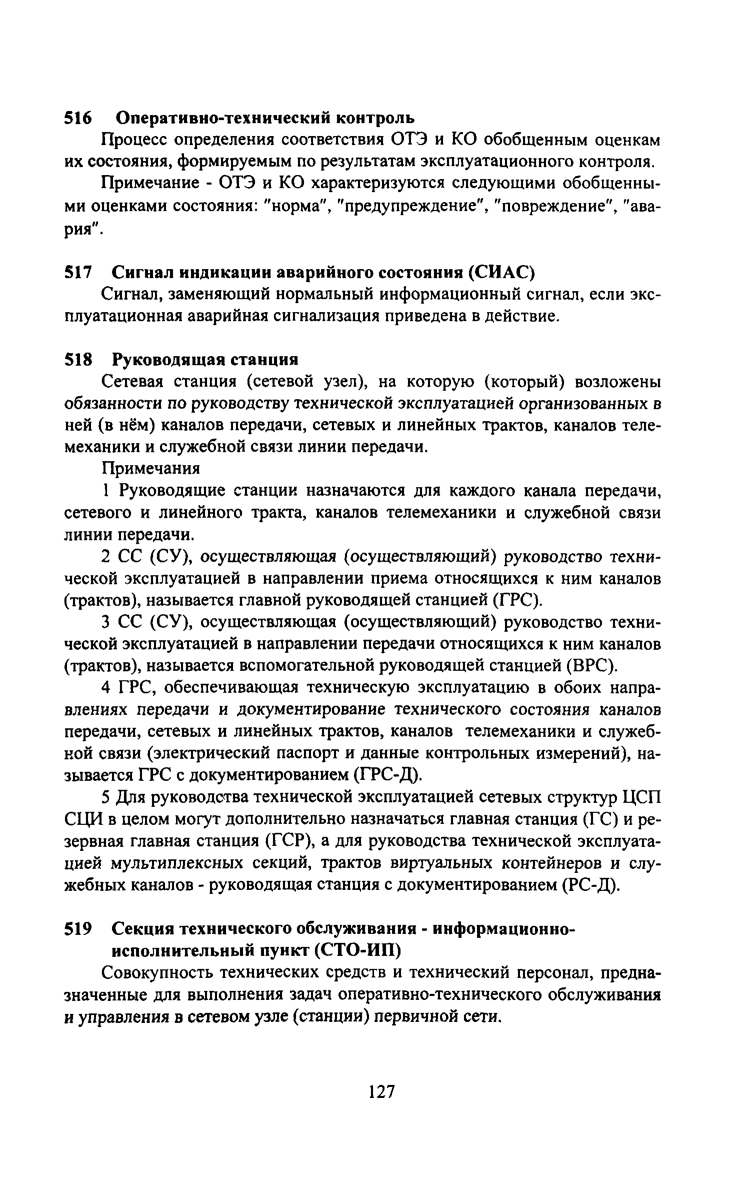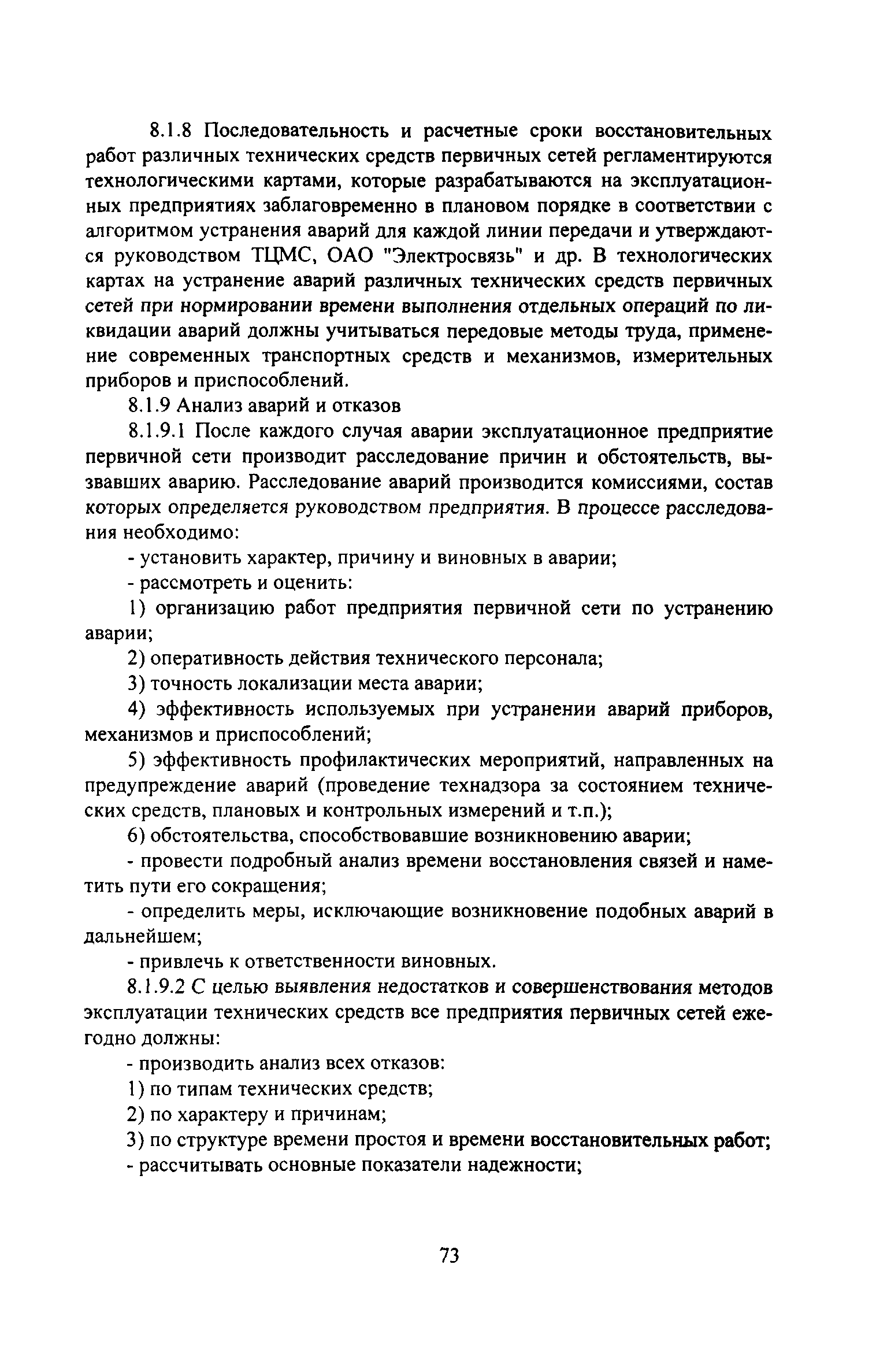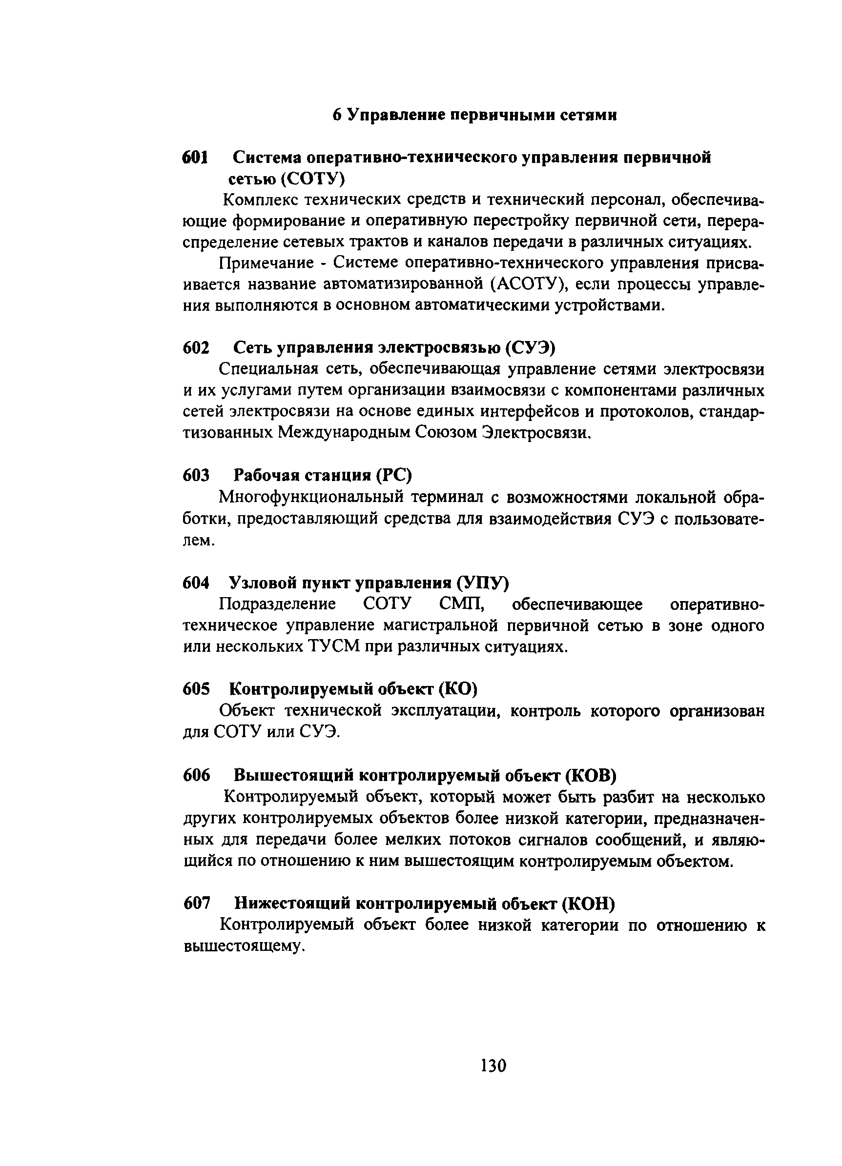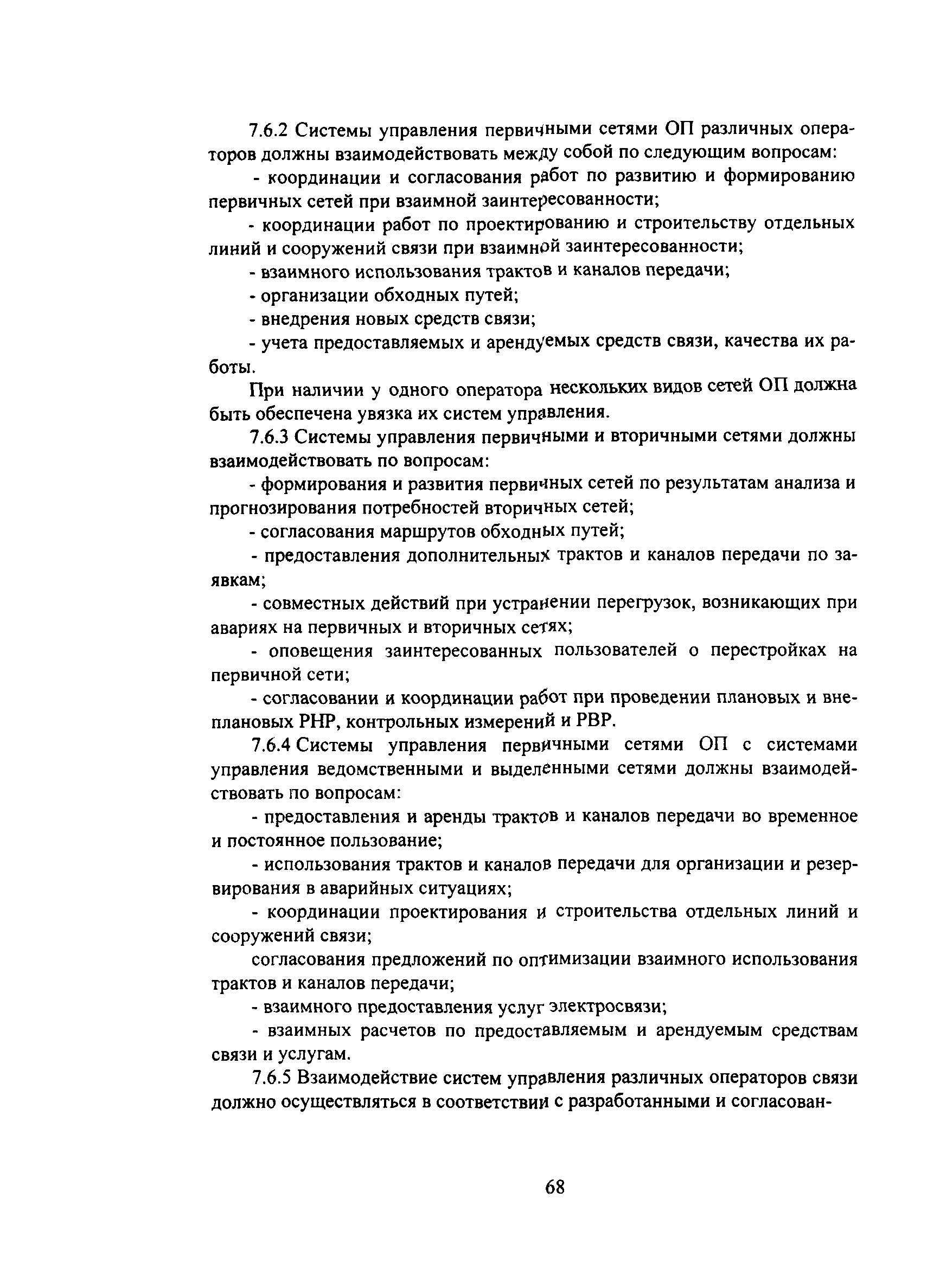 Книга 1. Основные принципы построения и организации технической эксплуатации| Статус: | действует | | Название рус.: | Книга 1. Основные принципы построения и организации технической эксплуатации | | Дата добавления в базу: | 01.09.2013 | | Дата актуализации: | 01.01.2021 | | Дата введения: | 01.01.1999 | | Область применения: | Правила регламентируют организацию и порядок технической эксплуатации первичных сетей ВСС России в целях обеспечения бесперебойной и высококачественной работы, нормального сетевого взаимодействия первичных сетей разных операторов: федерального и регионального уровней, ведомственных сетей и др. | | Оглавление: | Введение 1 Область применения 2 Обозначения и сокращения 3 Построение взаимоувязанной сети связи российской федерации 4 Построение магистральной и внутризоновых первичных сетей общего пользования 5 Состав и структура систем передачи первичных сетей 6 Организация сетевых трактов и каналов передачи на первичных сетях. 26 7 Системы технической эксплуатации и управления первичных сетей общего пользования 8 Восстановление связи на первичных сетях при аварийных и чрезвычайных ситуациях 9 Ремонт сооружений, аппаратуры и станционного оборудования 10 Метрологическое обеспечение первичных сетей 11 Строительство и реконструкция первичных сетей 12 Здания и технические помещения объектов первичных сетей 13 Подготовка и повышение квалификации специалистов и рабочих связи 14 Производственная документация 15 Организация служебной связи 16 Состав и структура системы электропитания объектов первичных сетей 17 Техника безопасности, охрана труда и санитария на предприятиях связи первичной сети Приложение А. Основные действующие нормативно-технические документы в части основных принципов построения и организации технической эксплуатации первичных сетей Приложение Б. Основные термины и определения | | Разработан: | ЦНИИС ОАО Ростелеком