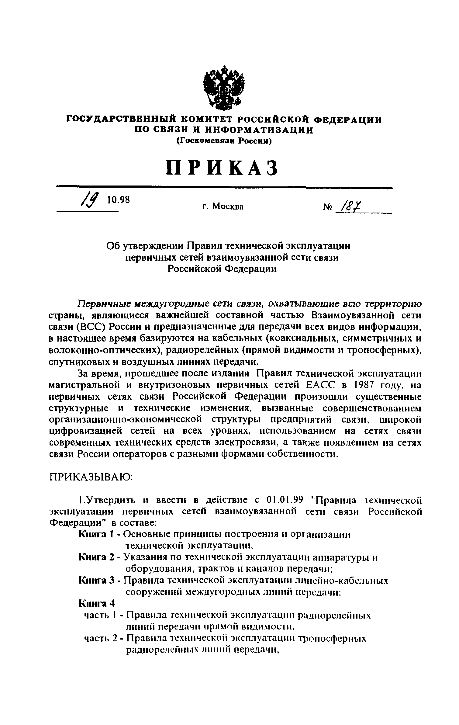 | | Утверждён: | 19.10.1998 Госкомсвязи России (187)