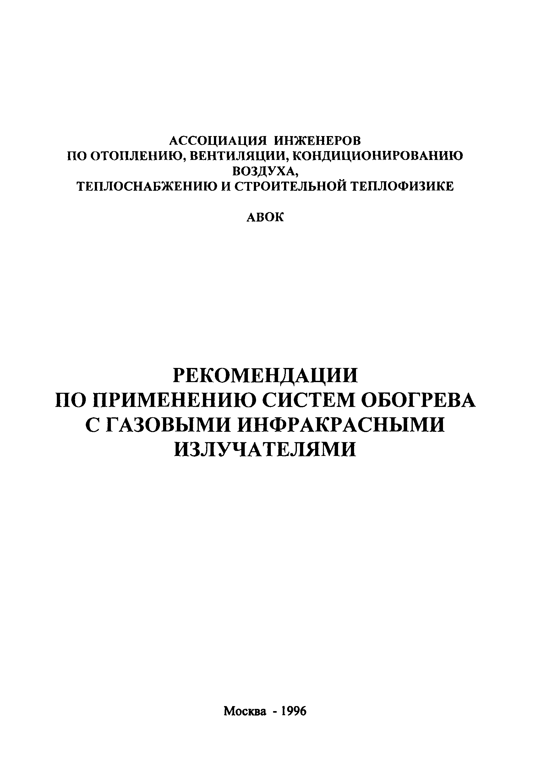 | Область применения: | Рекомендации регламентируют применение газовых инфракрасных излучателей для целнй обогрева. |