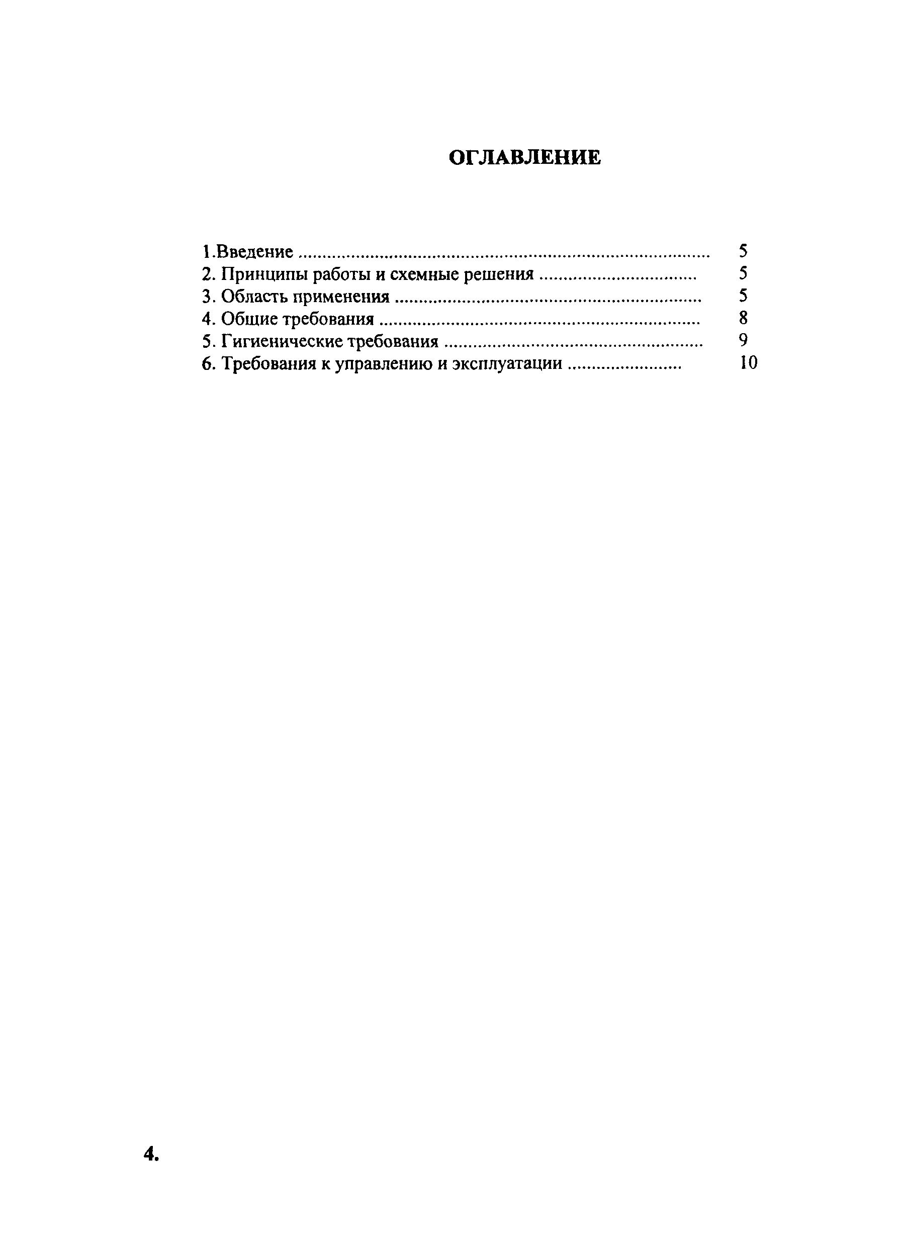 | Оглавление: | 1 Введение 2 Приницпы работы и схемные решения 3 Область применения 4 Общие требования 5 Гигиенические требования 6 Требования к управлению и эксплуатации |
