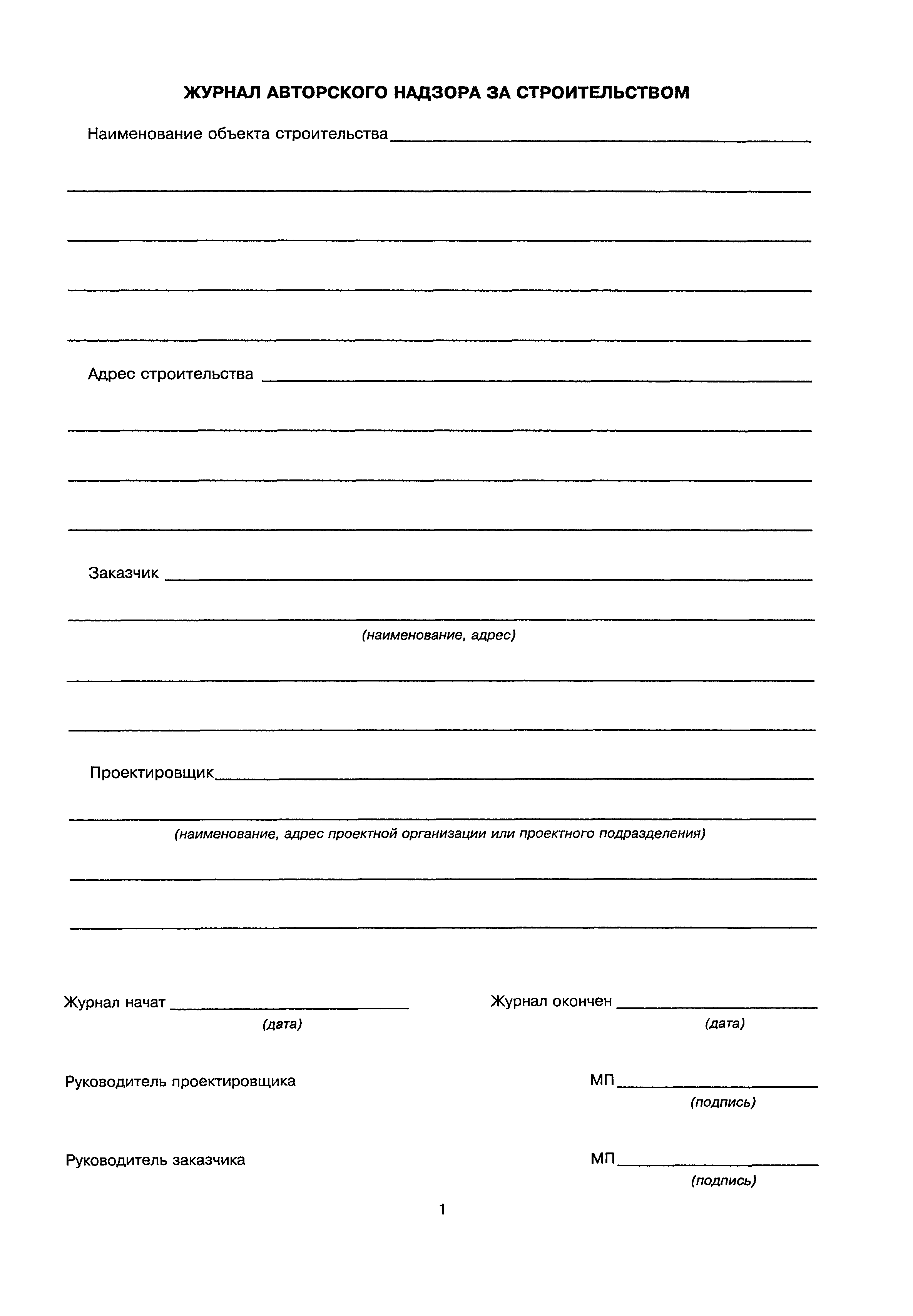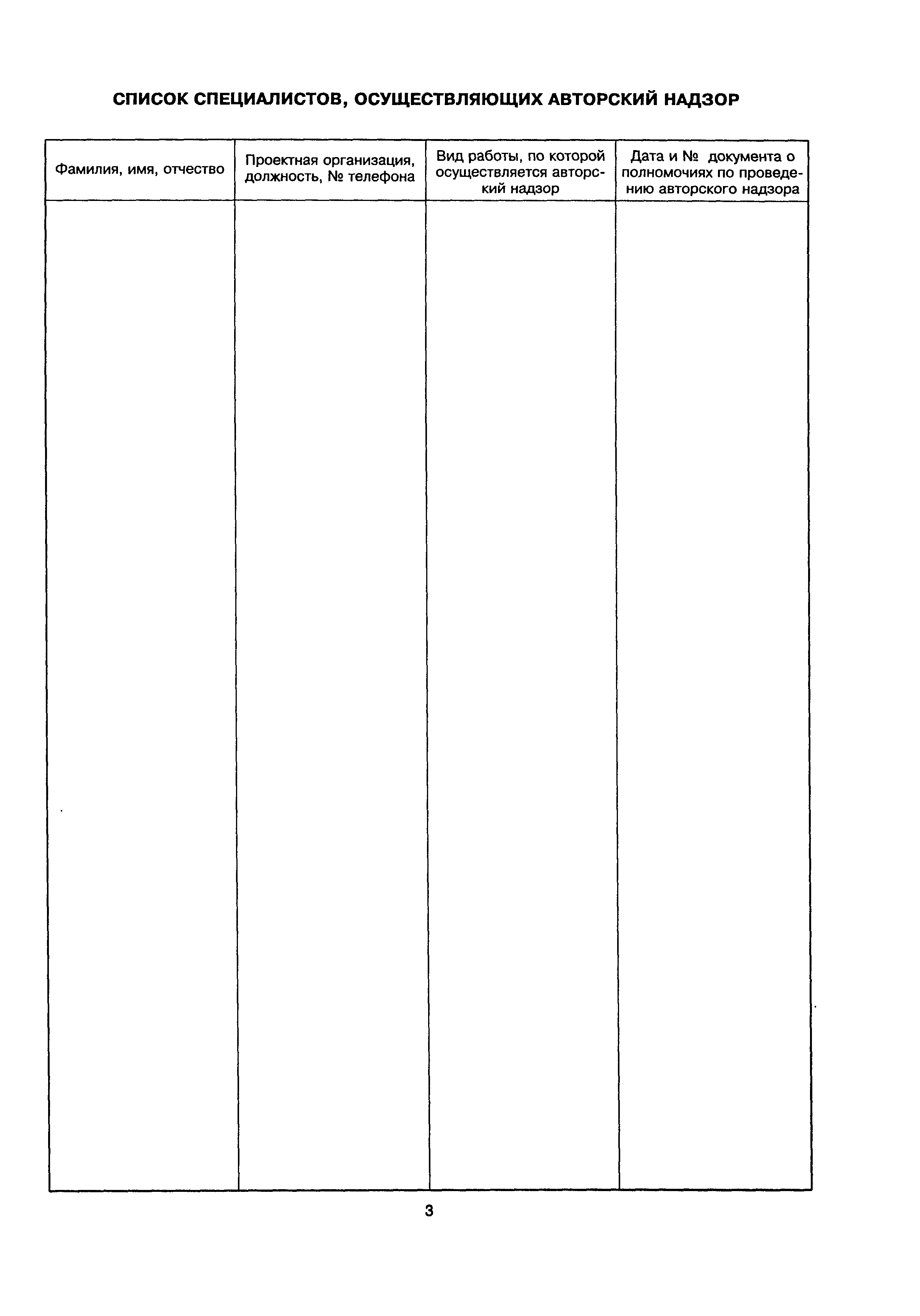 | Оглавление: | Журнал авторского надзора за строительством Перечень подрядных организаций, осуществляющих строительные и монтажные работы Список специалистов, осуществляющих авторский надзор Регистрационный лист посещение объекта специалистами, осуществляющими авторский надзор за строительством Учетный лист |