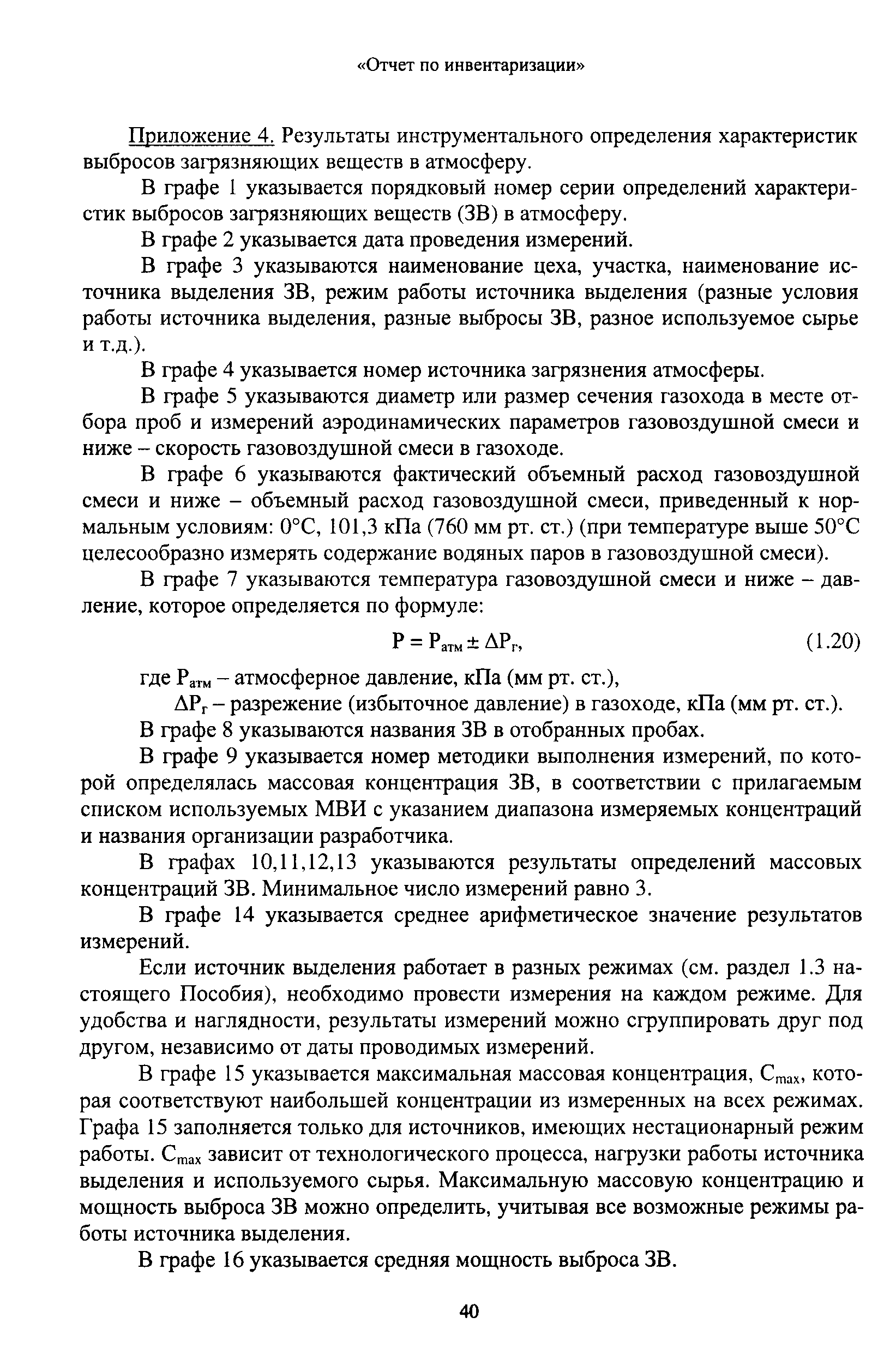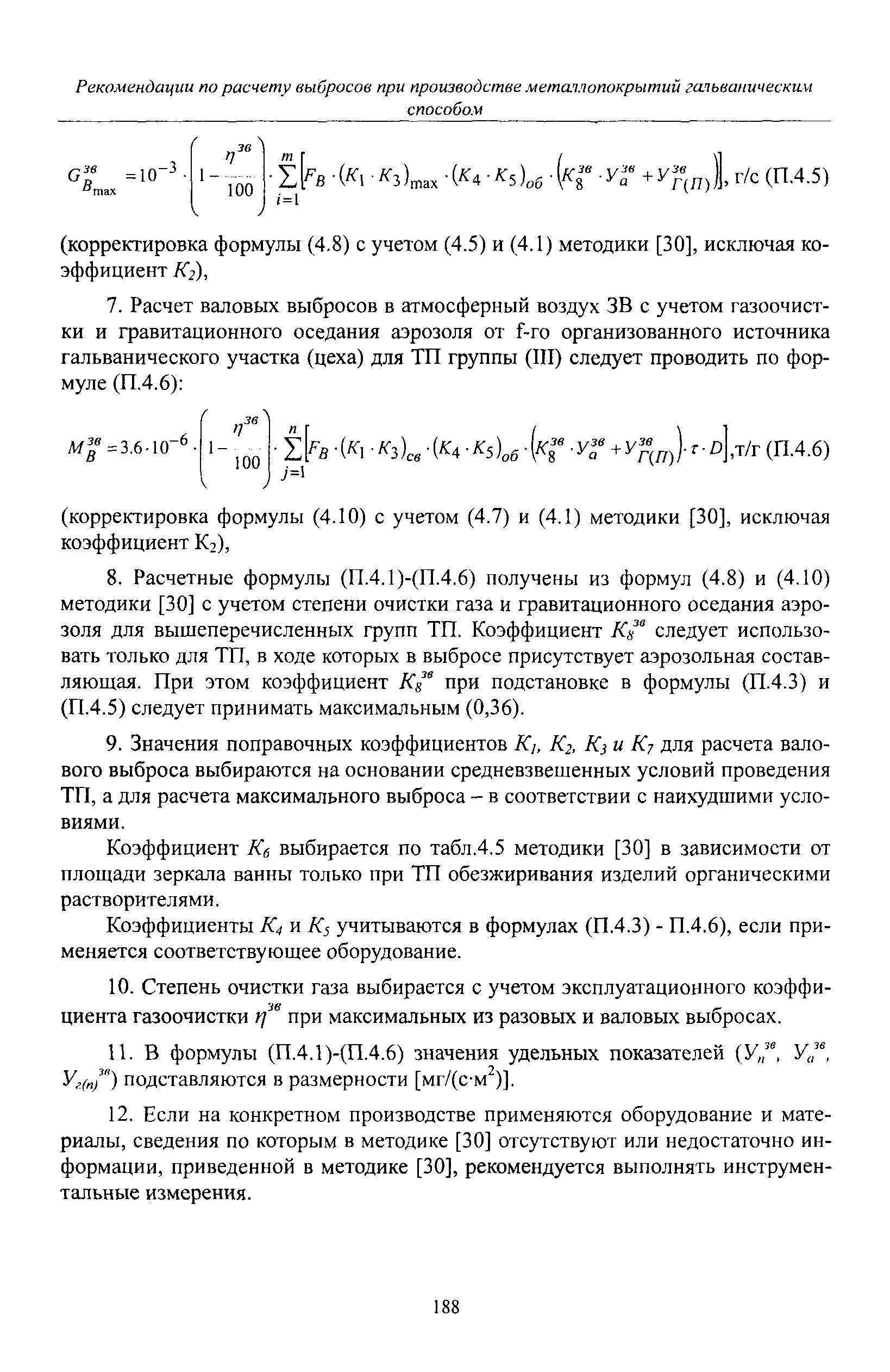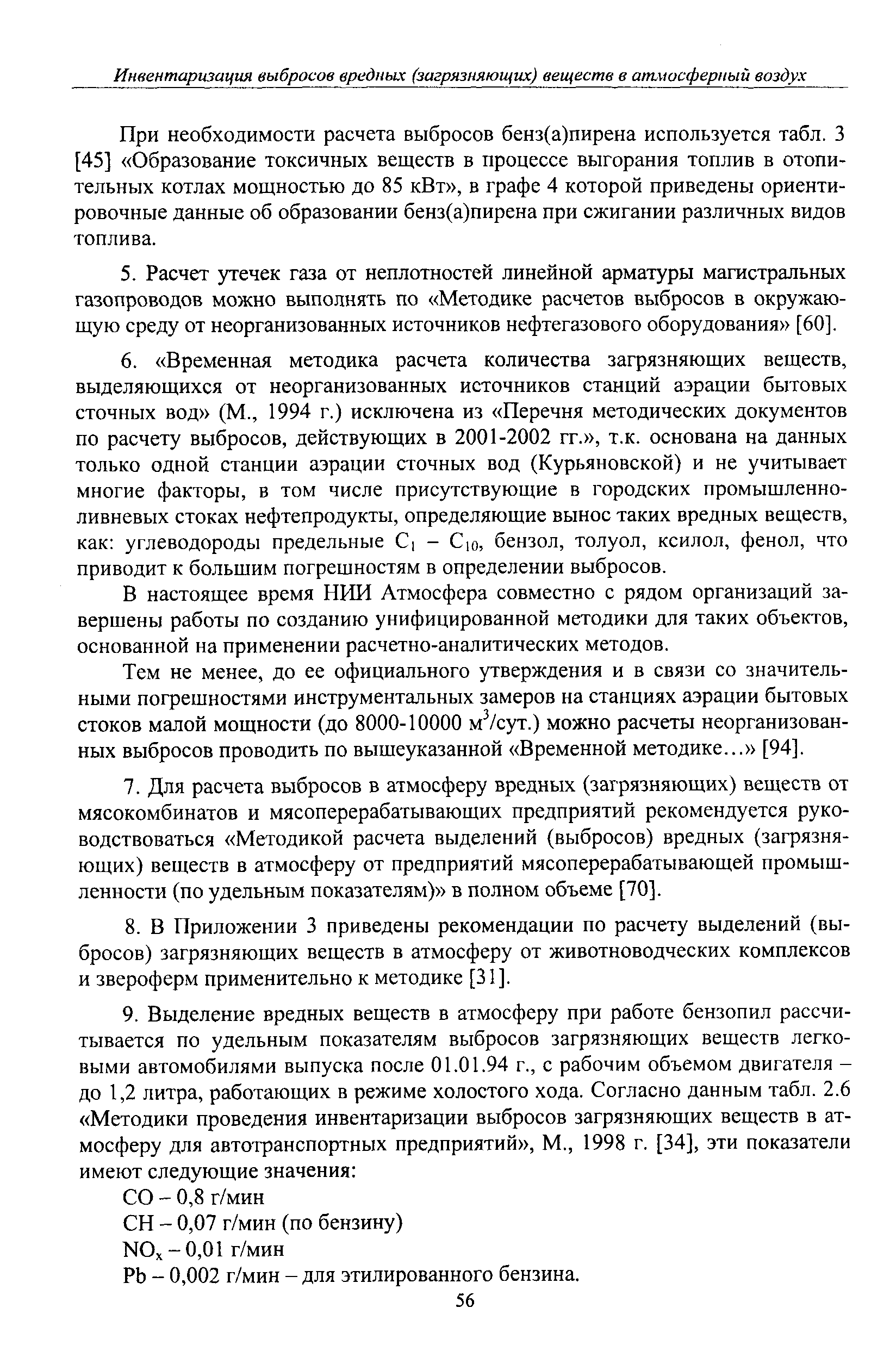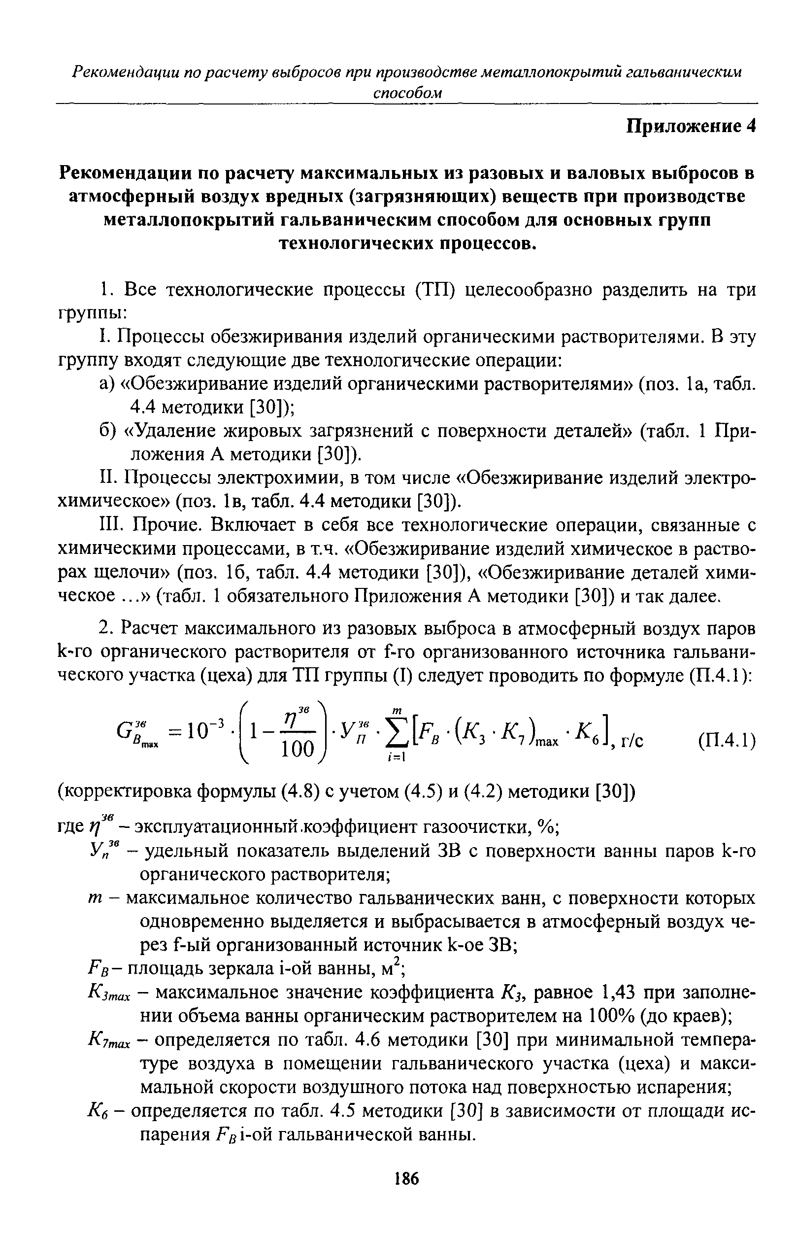 Методическое пособие по расчету, нормированию и контролю выбросов загрязняющих веществ в атмосферный воздух (Дополненное и переработанное)| Статус: | заменен | | Название рус.: | Методическое пособие по расчету, нормированию и контролю выбросов загрязняющих веществ в атмосферный воздух (Дополненное и переработанное) | | Дата добавления в базу: | 01.09.2013 | | Дата актуализации: | 01.09.2013 | | Дата введения: | 25.01.2002 | | Область применения: | Пособие предназначено для работников подразделений по охране окружающей природной среды предприятий, специалистов научно-исследовательских, проектных и других организаций, занимающихся вопросами охраны атмосферного воздуха, а также комитетов природных ресурсов МПР России и служб охраны окружающей среды администраций городов и регионов России. | | Оглавление: | Введение 1 Инвентаризация выбросов вредных (загрязняющих) веществ в атмосферный воздух 2 Нормирование выбросов в атмосферу 3 Контроль за соблюдением установленных нормативов выбросов 4 Мероприятия по регулированию выбросов в периоды неблагоприятных метеорологических условий (НМУ) 5 Сводные расчеты загрязнения атмосферы выбросами промышленности и автотранспорта и их применение при нормировании выбросов предприятий 6 Технические нормативы выбросов (ТНВ) вредных (загрязняющих) веществ в атмосферный воздух6. Технические нормативы выбросов (ТНВ)вредных (загрязняющих) веществ в атмосферный воздух6. Технические нормативы выбросов (ТНВ)вредных (загрязняющих) веществ в атмосферный воздух 7 Об использовании промышленных отходов в качестве добавки к основному топливу котельных Список использованных источников Приложение 1 Структура «Отчета по инвентаризации выбросов вредных (загрязняющих) веществ в атмосферный воздух предприятия» Приложение 2 Установление источников и перечня вредных веществ, подлежащих нормированию Приложение 3 Рекомендации по расчету выделений (выбросов) загрязняющих веществ в атмосферу от животноводческих комплексов и звероферм Приложение 4 Рекомендации по расчету максимальных и валовых выбросов в атмосферу вредных (загрязняющих) веществ при производстве металлопокрытий гальваническим способом для основных групп технологических процессов |