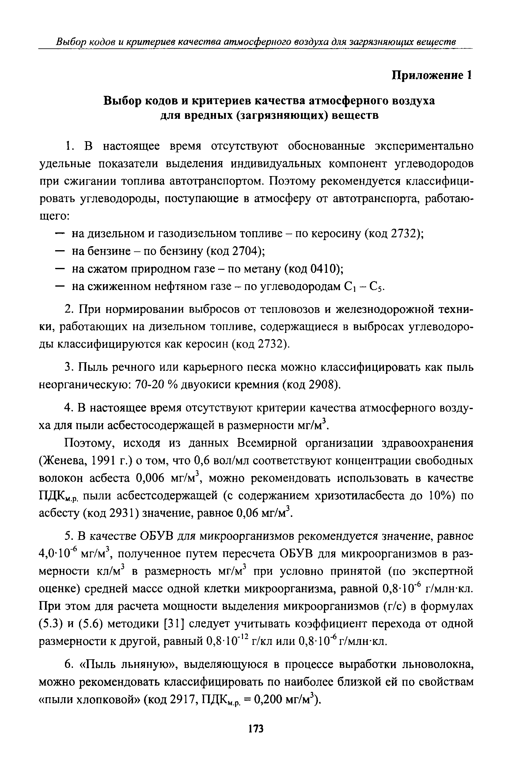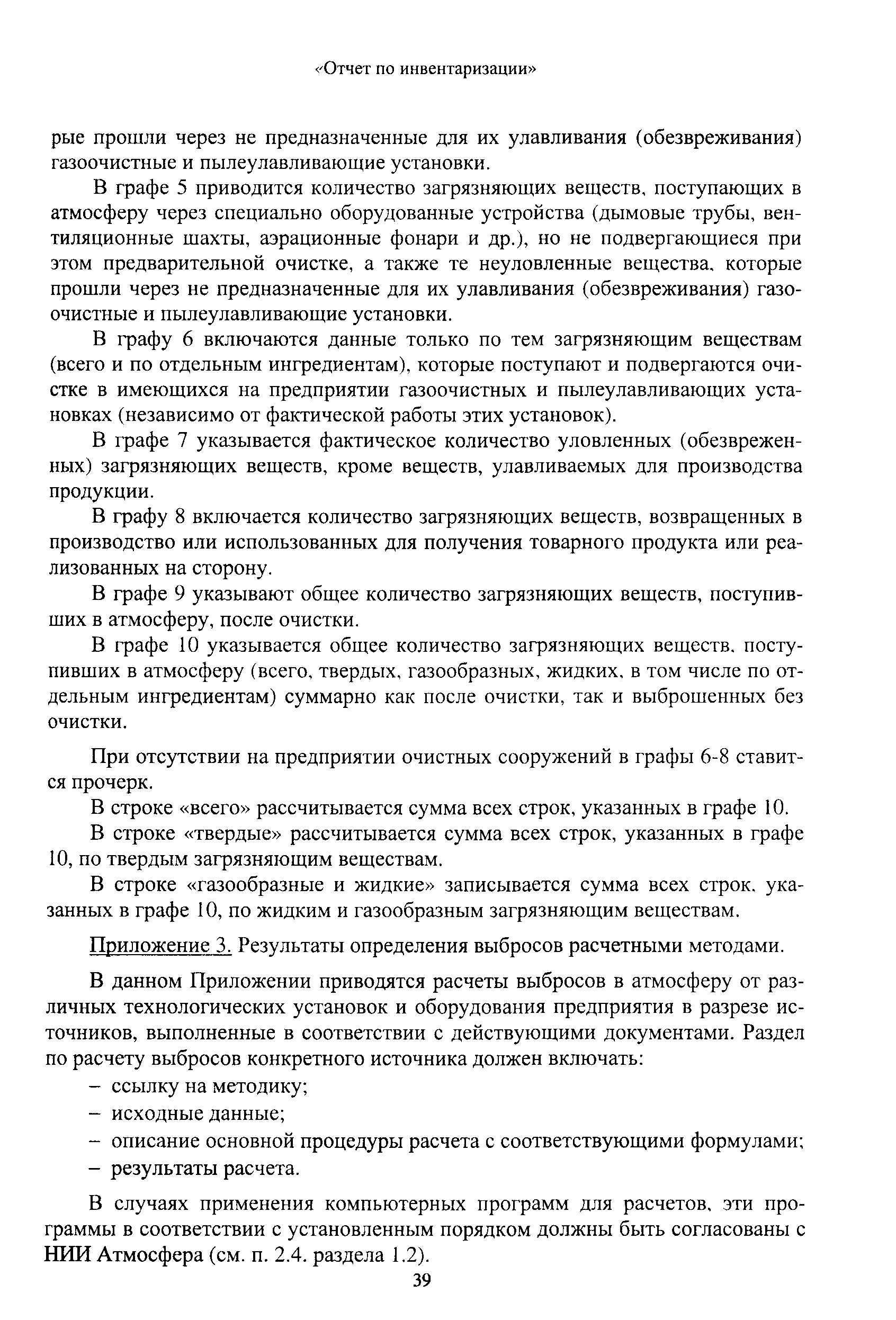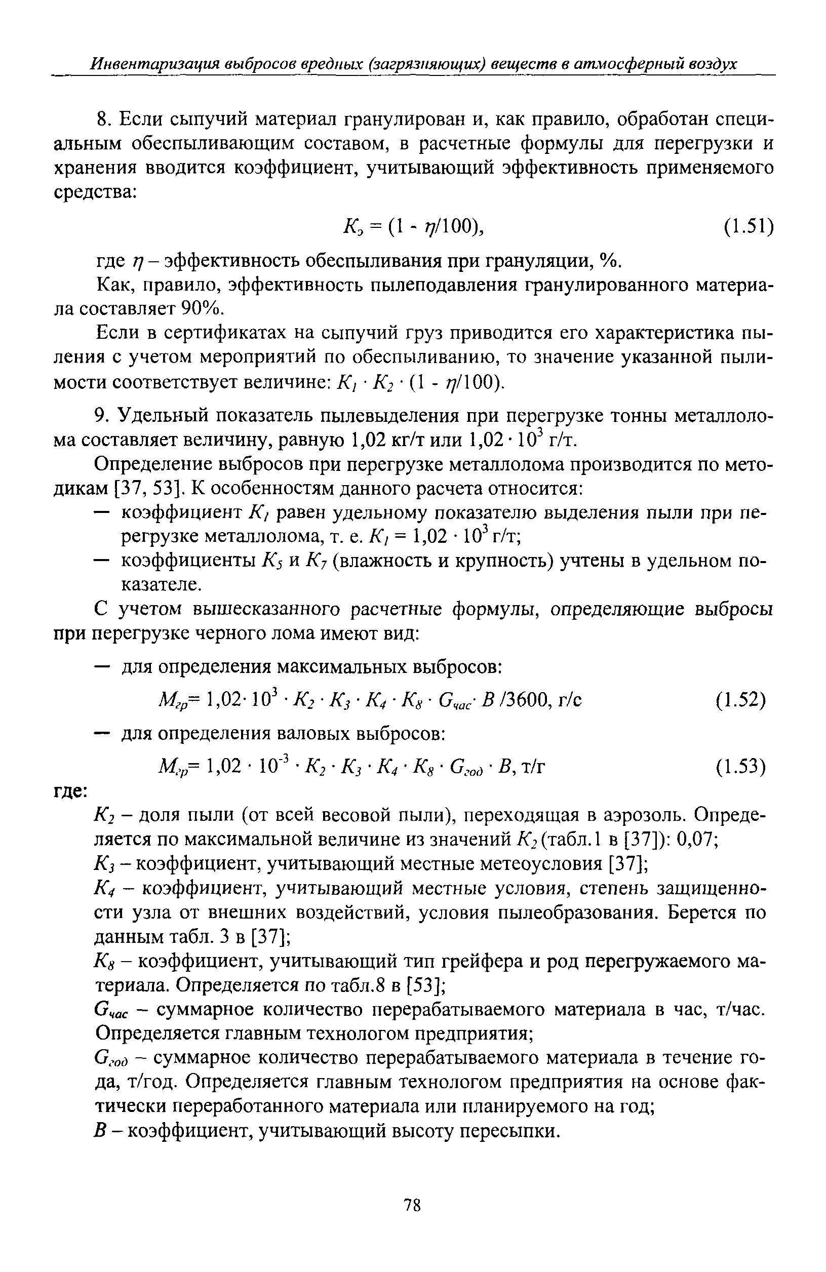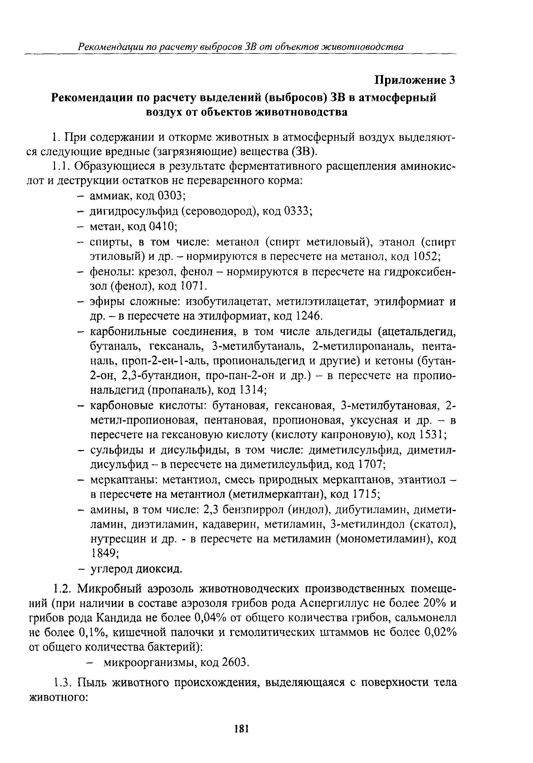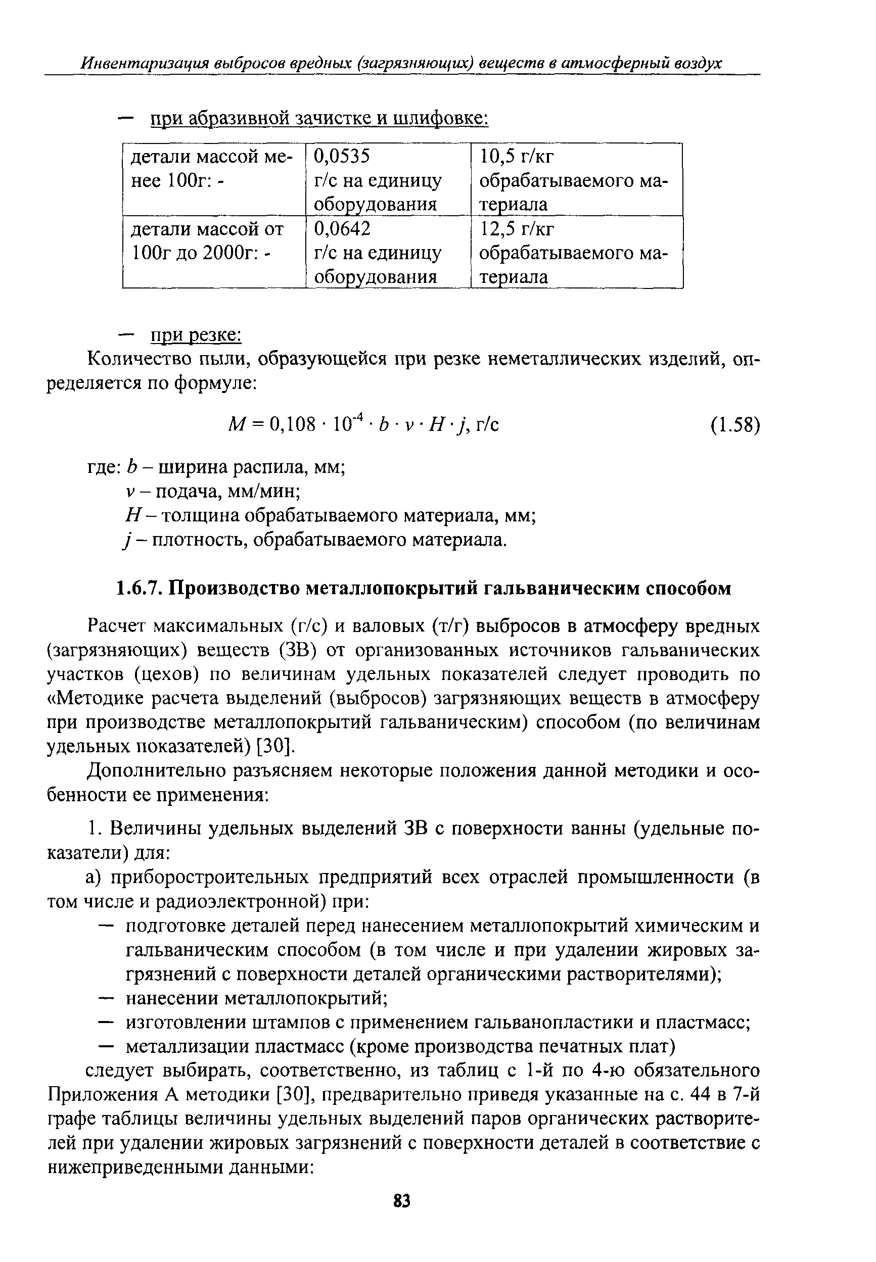 Методическое пособие по расчету, нормированию и контролю выбросов загрязняющих веществ в атмосферный воздух (Дополненное и переработанное)| Статус: | заменен | | Название рус.: | Методическое пособие по расчету, нормированию и контролю выбросов загрязняющих веществ в атмосферный воздух (Дополненное и переработанное) | | Дата добавления в базу: | 01.09.2013 | | Дата актуализации: | 01.09.2013 | | Дата введения: | 25.01.2002 | | Область применения: | Пособие предназначено для работников подразделений по охране окружающей природной среды предприятий, специалистов научно-исследовательских, проектных и других организаций, занимающихся вопросами охраны атмосферного воздуха, а также комитетов природных ресурсов МПР России и служб охраны окружающей среды администраций городов и регионов России. | | Оглавление: | Введение 1 Инвентаризация выбросов вредных (загрязняющих) веществ в атмосферный воздух 2 Нормирование выбросов в атмосферу 3 Контроль за соблюдением установленных нормативов выбросов 4 Мероприятия по регулированию выбросов в периоды неблагоприятных метеорологических условий (НМУ) 5 Сводные расчеты загрязнения атмосферы выбросами промышленности и автотранспорта и их применение при нормировании выбросов предприятий 6 Технические нормативы выбросов (ТНВ) вредных (загрязняющих) веществ в атмосферный воздух6. Технические нормативы выбросов (ТНВ)вредных (загрязняющих) веществ в атмосферный воздух6. Технические нормативы выбросов (ТНВ)вредных (загрязняющих) веществ в атмосферный воздух 7 Об использовании промышленных отходов в качестве добавки к основному топливу котельных Список использованных источников Приложение 1 Структура «Отчета по инвентаризации выбросов вредных (загрязняющих) веществ в атмосферный воздух предприятия» Приложение 2 Установление источников и перечня вредных веществ, подлежащих нормированию Приложение 3 Рекомендации по расчету выделений (выбросов) загрязняющих веществ в атмосферу от животноводческих комплексов и звероферм Приложение 4 Рекомендации по расчету максимальных и валовых выбросов в атмосферу вредных (загрязняющих) веществ при производстве металлопокрытий гальваническим способом для основных групп технологических процессов |