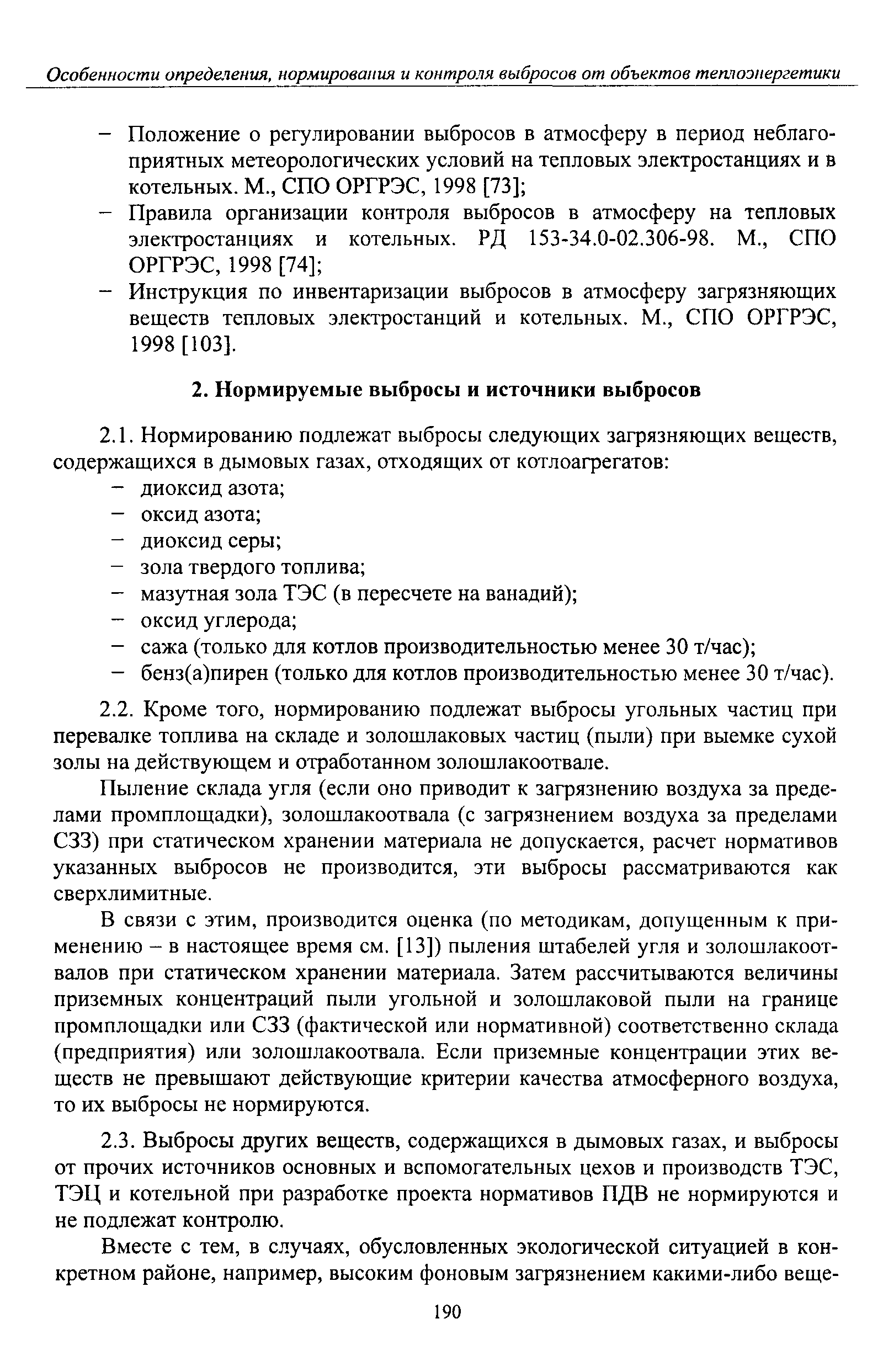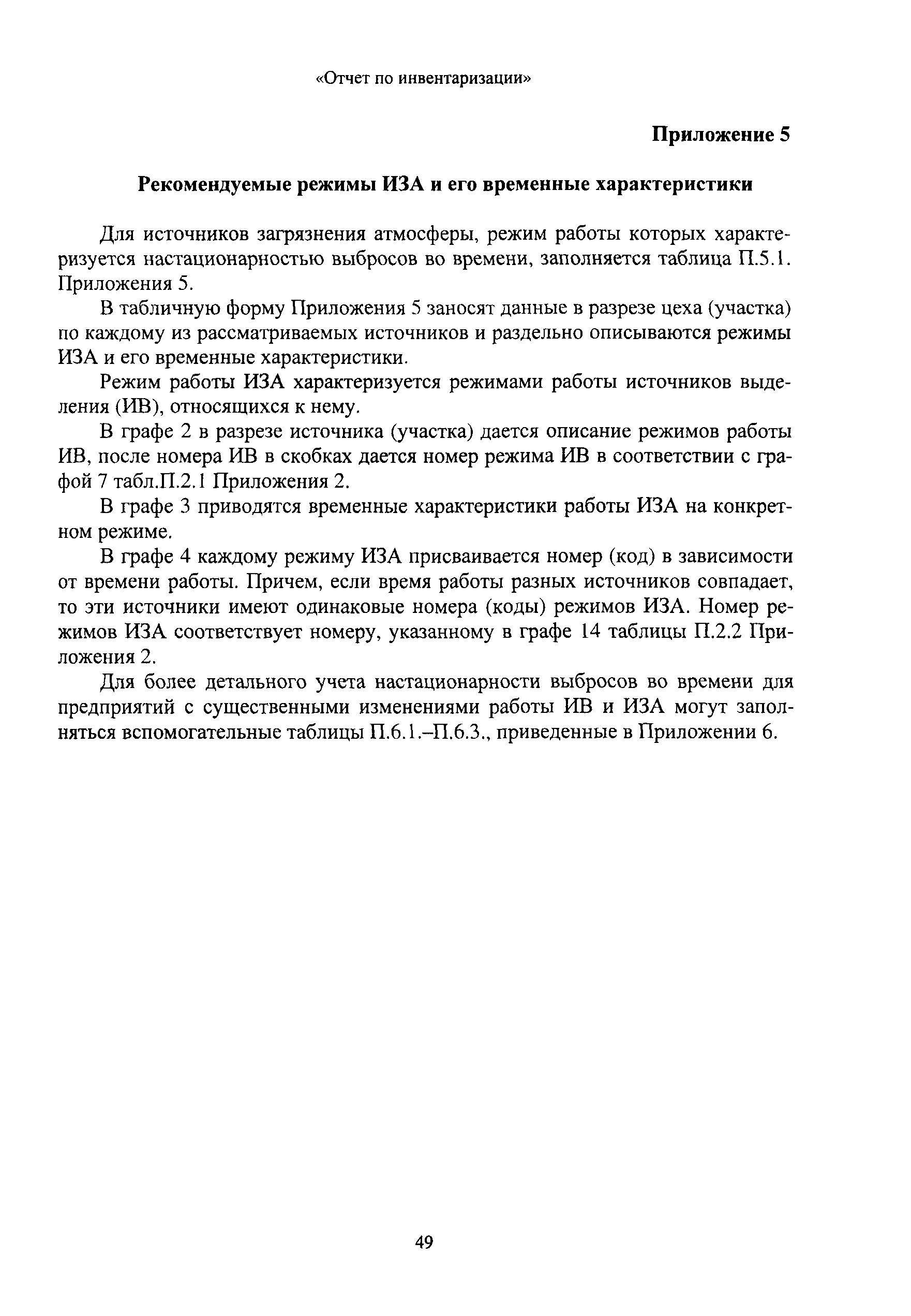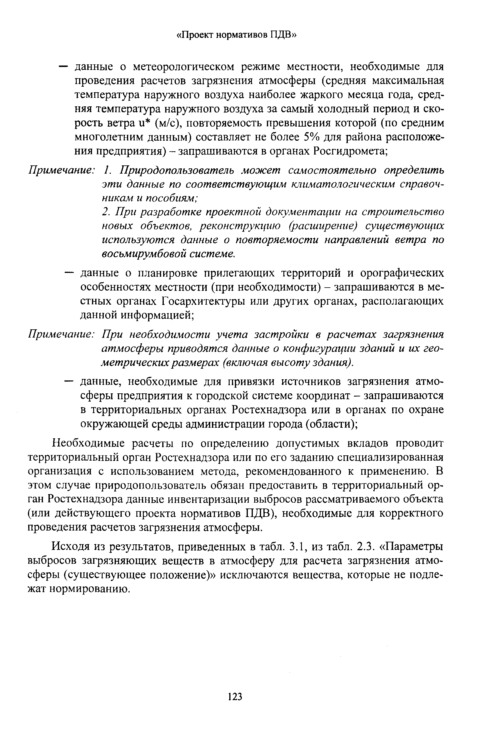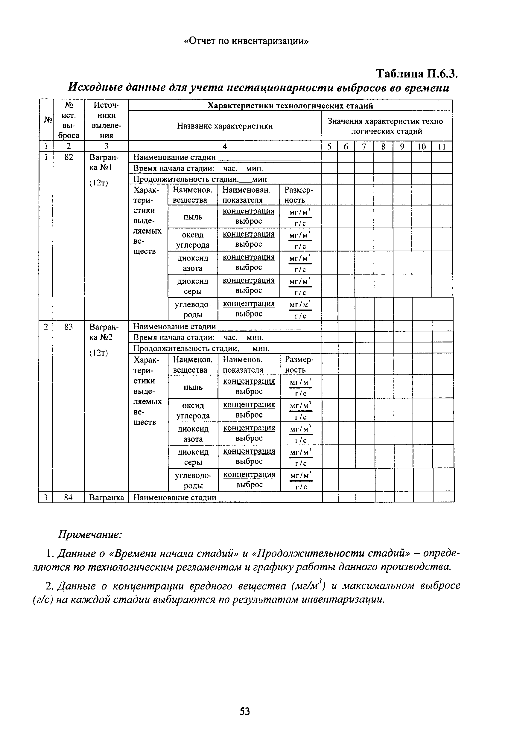 Методическое пособие по расчету, нормированию и контролю выбросов загрязняющих веществ в атмосферный воздух (Дополненное и переработанное)| Статус: | заменен | | Название рус.: | Методическое пособие по расчету, нормированию и контролю выбросов загрязняющих веществ в атмосферный воздух (Дополненное и переработанное) | | Дата добавления в базу: | 01.09.2013 | | Дата актуализации: | 01.09.2013 | | Дата введения: | 25.01.2002 | | Область применения: | Пособие предназначено для работников подразделений по охране окружающей природной среды предприятий, специалистов научно-исследовательских, проектных и других организаций, занимающихся вопросами охраны атмосферного воздуха, а также комитетов природных ресурсов МПР России и служб охраны окружающей среды администраций городов и регионов России. | | Оглавление: | Введение 1 Инвентаризация выбросов вредных (загрязняющих) веществ в атмосферный воздух 2 Нормирование выбросов в атмосферу 3 Контроль за соблюдением установленных нормативов выбросов 4 Мероприятия по регулированию выбросов в периоды неблагоприятных метеорологических условий (НМУ) 5 Сводные расчеты загрязнения атмосферы выбросами промышленности и автотранспорта и их применение при нормировании выбросов предприятий 6 Технические нормативы выбросов (ТНВ) вредных (загрязняющих) веществ в атмосферный воздух6. Технические нормативы выбросов (ТНВ)вредных (загрязняющих) веществ в атмосферный воздух6. Технические нормативы выбросов (ТНВ)вредных (загрязняющих) веществ в атмосферный воздух 7 Об использовании промышленных отходов в качестве добавки к основному топливу котельных Список использованных источников Приложение 1 Структура «Отчета по инвентаризации выбросов вредных (загрязняющих) веществ в атмосферный воздух предприятия» Приложение 2 Установление источников и перечня вредных веществ, подлежащих нормированию Приложение 3 Рекомендации по расчету выделений (выбросов) загрязняющих веществ в атмосферу от животноводческих комплексов и звероферм Приложение 4 Рекомендации по расчету максимальных и валовых выбросов в атмосферу вредных (загрязняющих) веществ при производстве металлопокрытий гальваническим способом для основных групп технологических процессов |