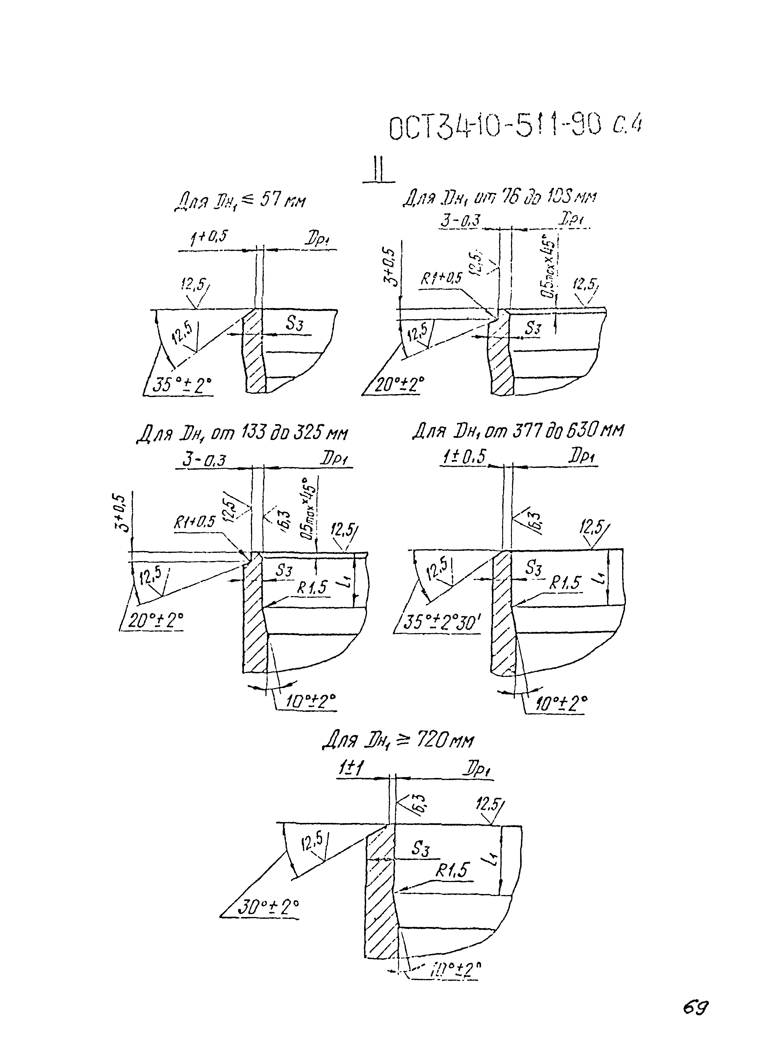 Скачать ОСТ 34-10-511-90 Детали и сборочные единицы трубопроводов АС Рраб<2,2 МПа (22 кгс/см2), Т<=300 °C. Тройники сварные переходные. Конструкция и размерыДата актуализации: 01.01.2021 ОСТ 34-10-511-90