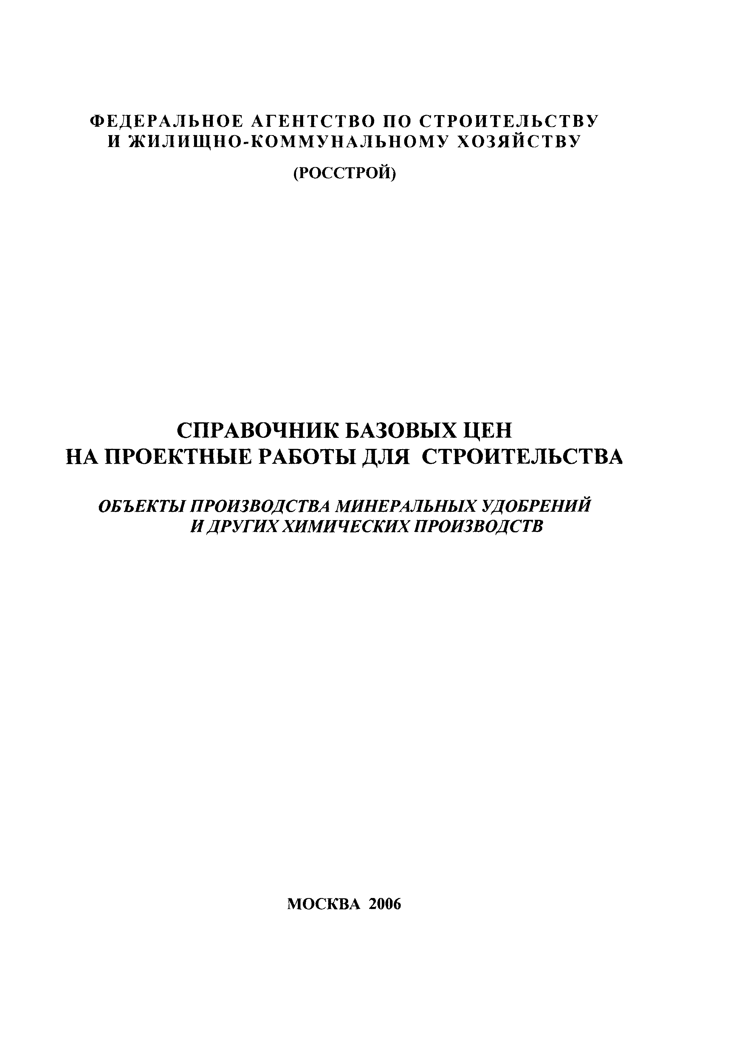 | Название рус.: | Объекты производства минеральных удобрений и других химических производств. Справочник базовых цен на проектные работы для строительства |