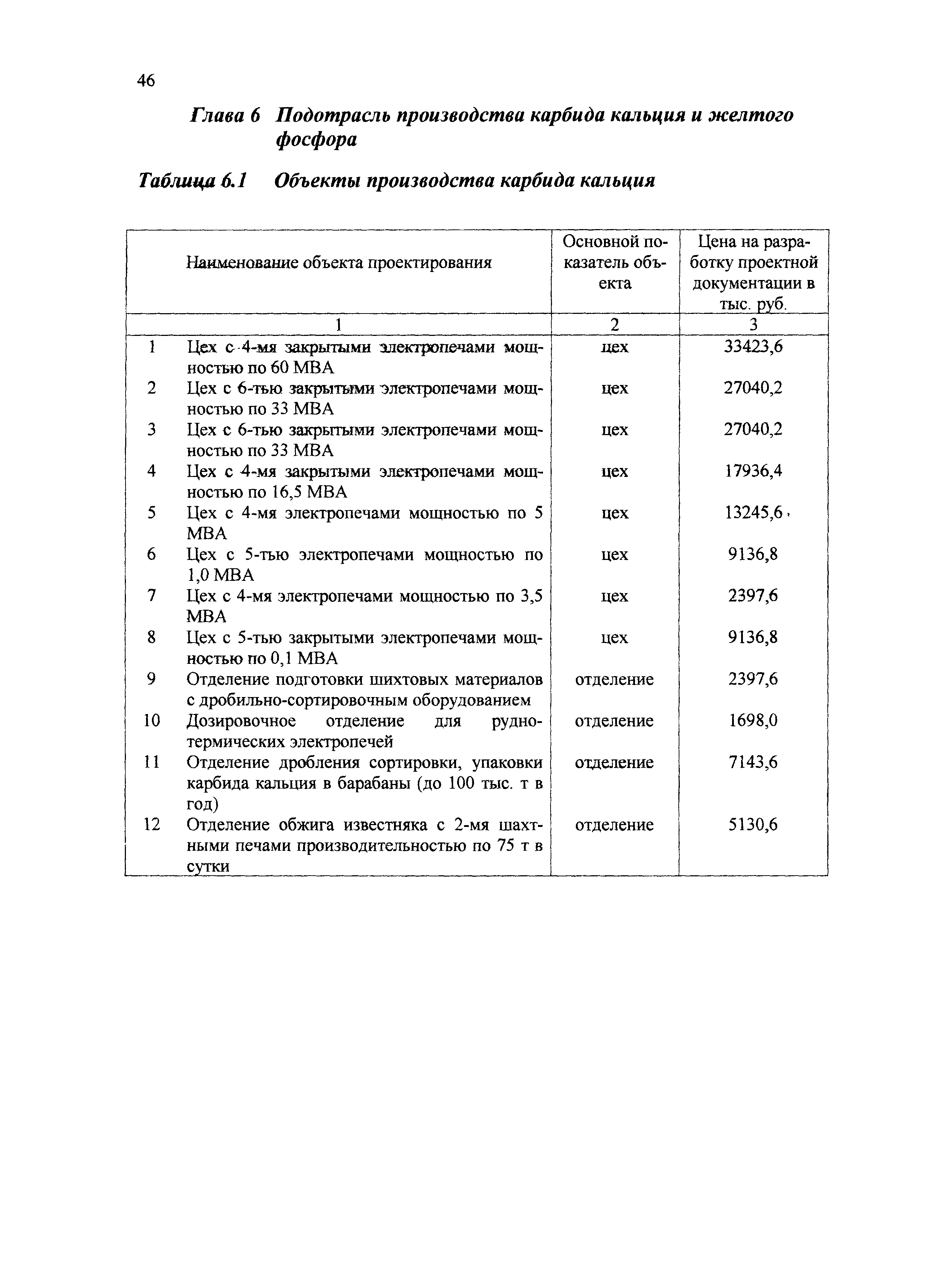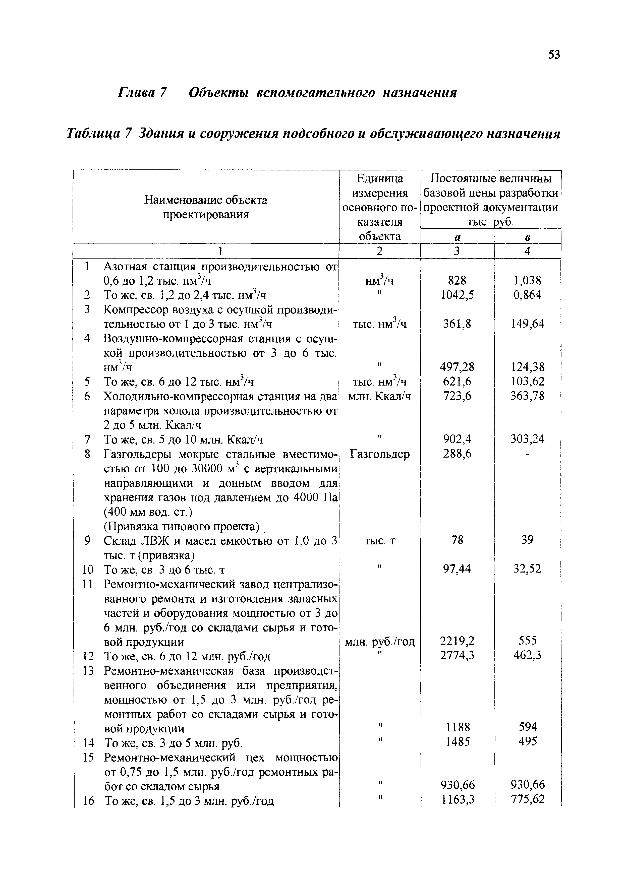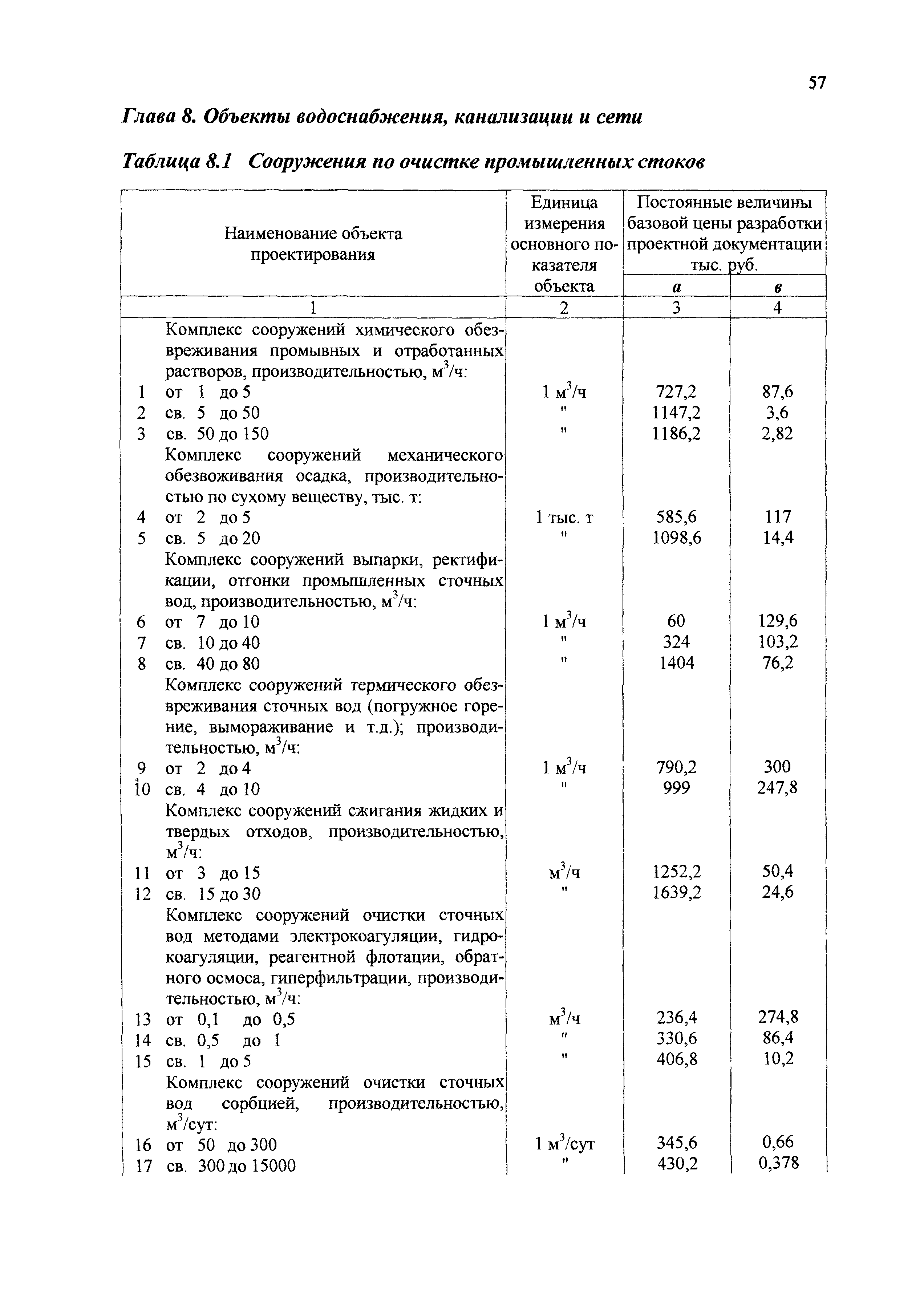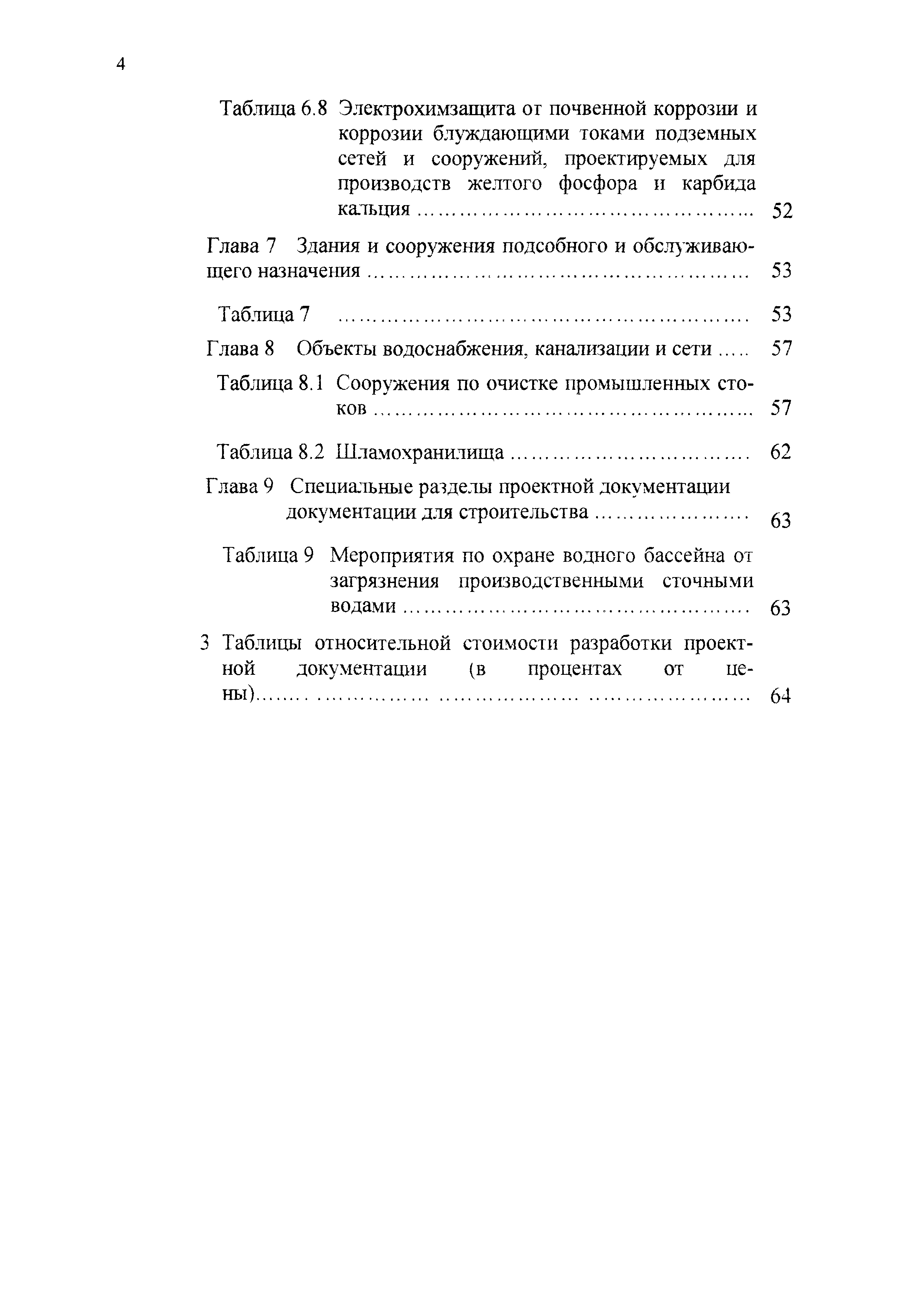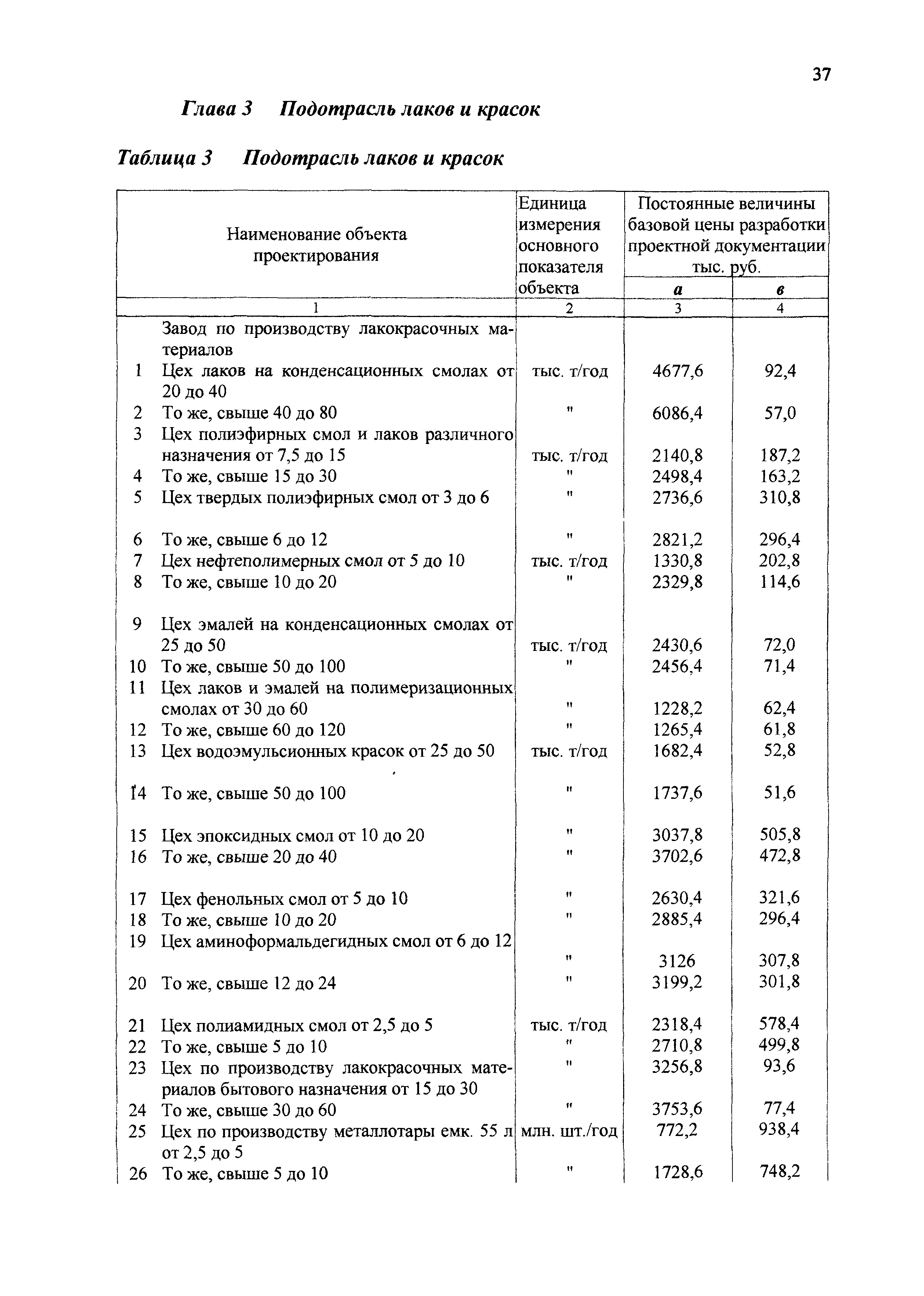| Оглавление: | 1 Основные положения 2 Базовые цены на разработку проектной документации Глава 1 Производства основной химической промышленности - минеральных удобрений Глава 2 Подотрасль химических реактивов и особочистых веществ Глава 3 Подотрасль красок и лаков Глава 4 Производства химических средств защиты растений Глава 5 Подотрасль товаров бытовой химии Глава 6 Подотрасль производства карбида кальция и желтого фосфора Глава 7 Здания и сооружения подсобного и обслуживающего назначения Глава 8 Объекты водоснабжения, канализации и сети Глава 9 Специальные разделы проектной документации для строительства 3 Таблицы относительной стоимости разработки проектной документации (в процентах от цены) |