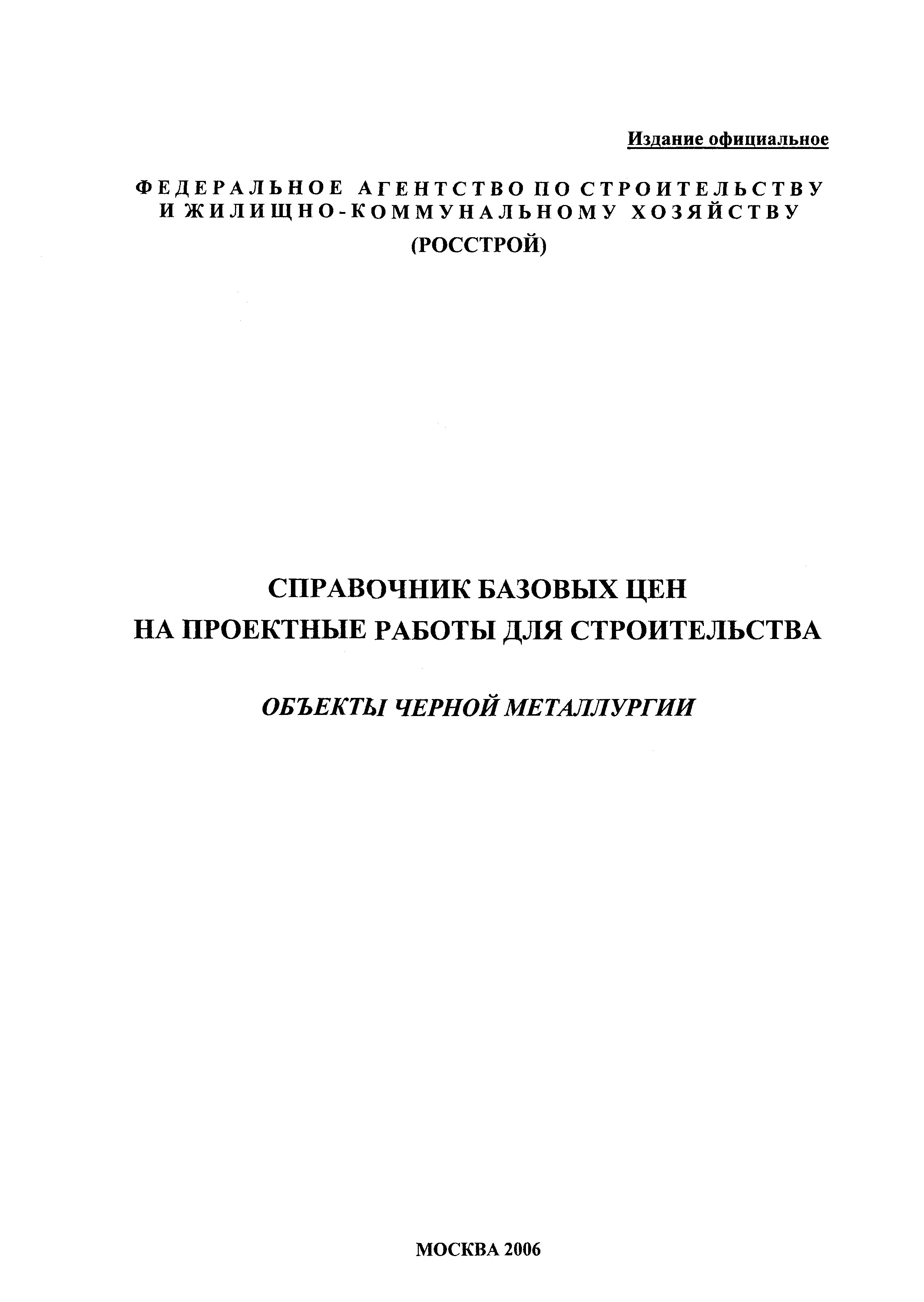 | Название рус.: | Объекты черной металлургии. Справочник базовых цен на проектные работы для строительства |