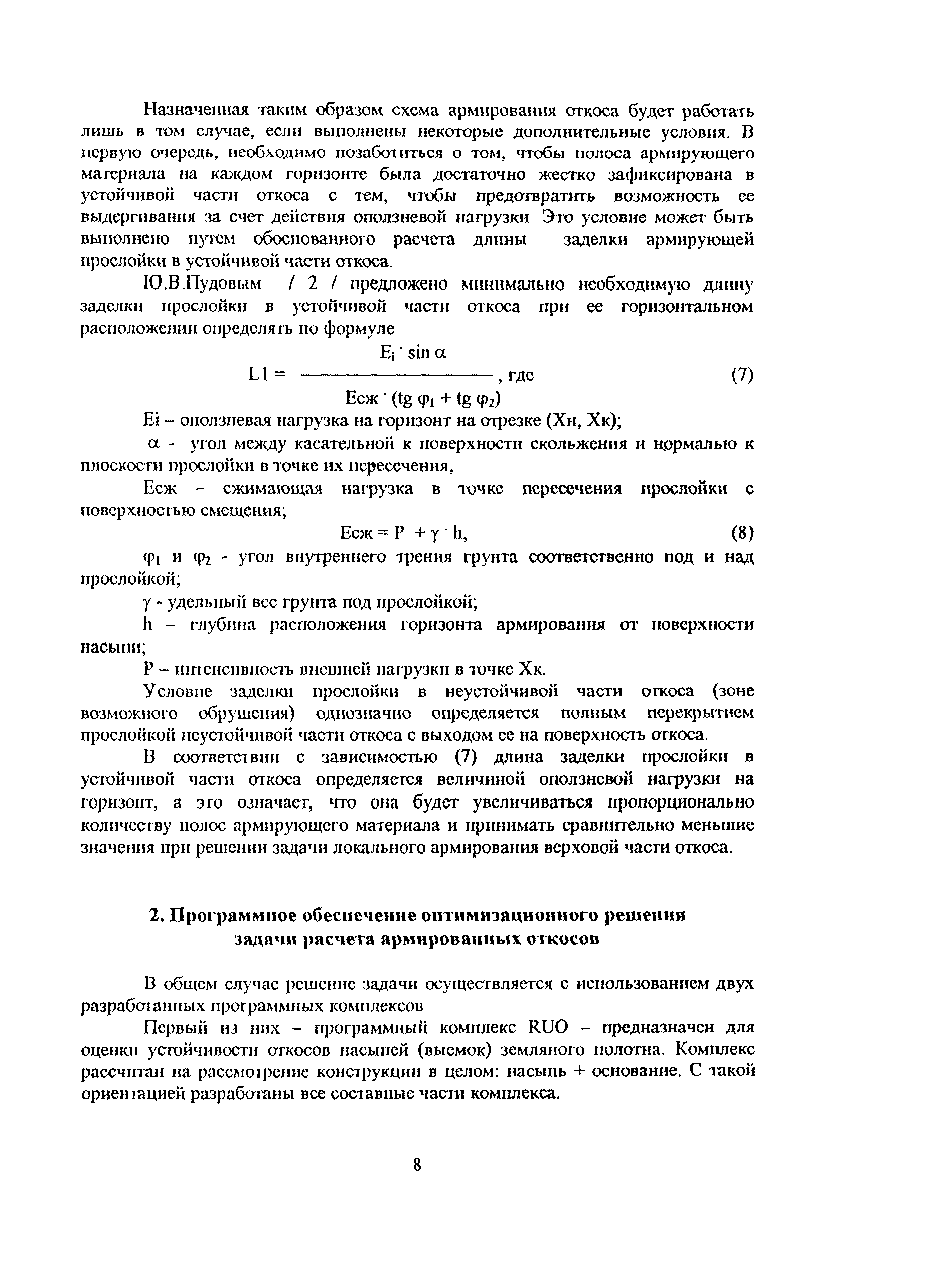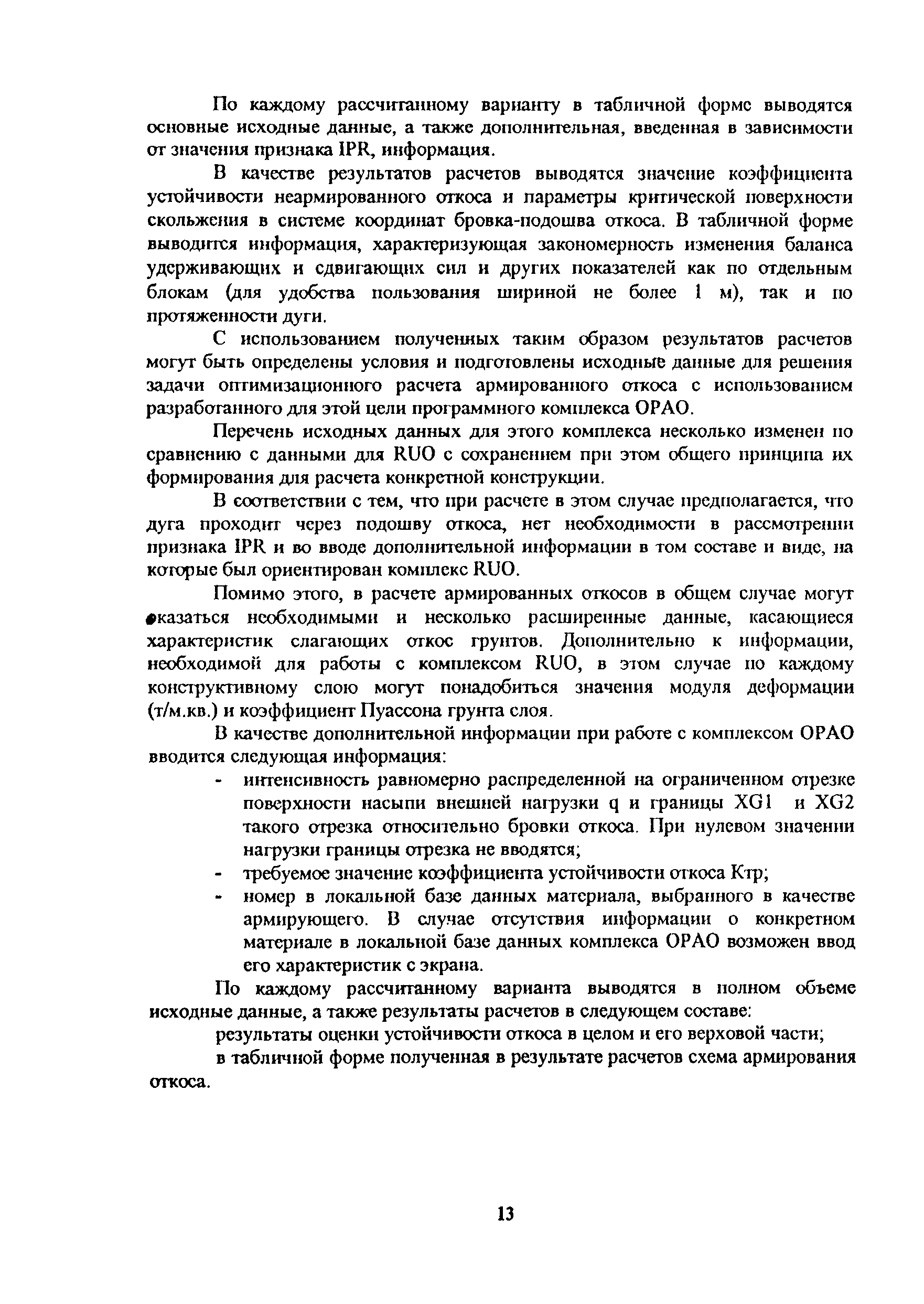 Методика расчета устойчивости грунтовых насыпей, армированных георешетками| Статус: | действует | | Название рус.: | Методика расчета устойчивости грунтовых насыпей, армированных георешетками | | Дата добавления в базу: | 01.09.2013 | | Дата актуализации: | 01.01.2021 | | Дата введения: | 01.01.2000 | | Оглавление: | 1 Методические основы оптимизационного расчета армированных откосов 2 Программное обеспечение оптимизационного решения задачи расчета армированных откосов 3 Примеры использования разработок Использованная литература | | Разработан: | СоюздорНИИ