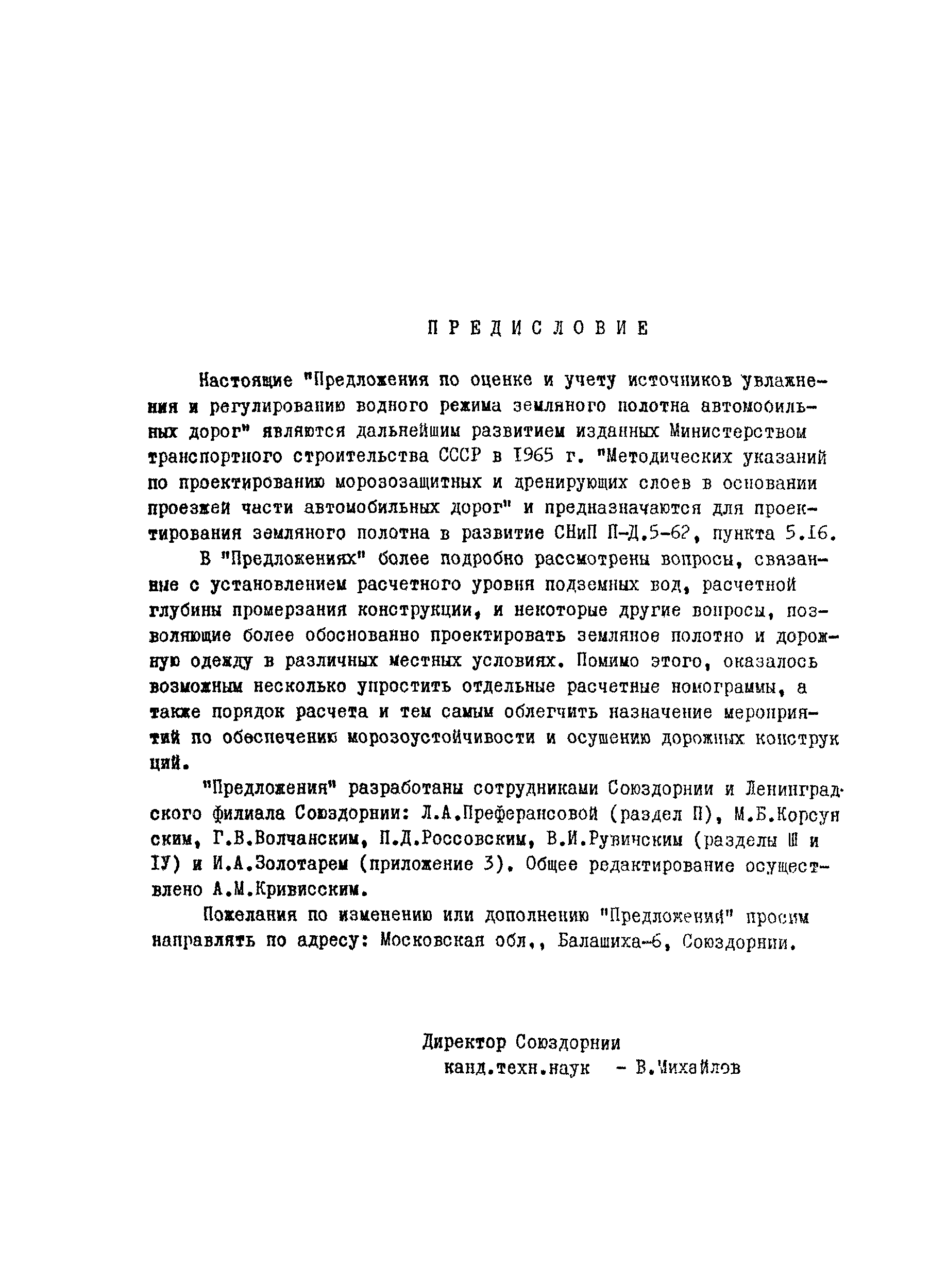 | Область применения: | В Предложениях рассмотрены вопросы, связанные с установлением расчетного уровня подземных вод, расчетной глубины промерзания конструкции, и другте вопросы, позволяющие более обоснованно проектировать земляное полотно и дорожную одежду в различных местных условиях. |