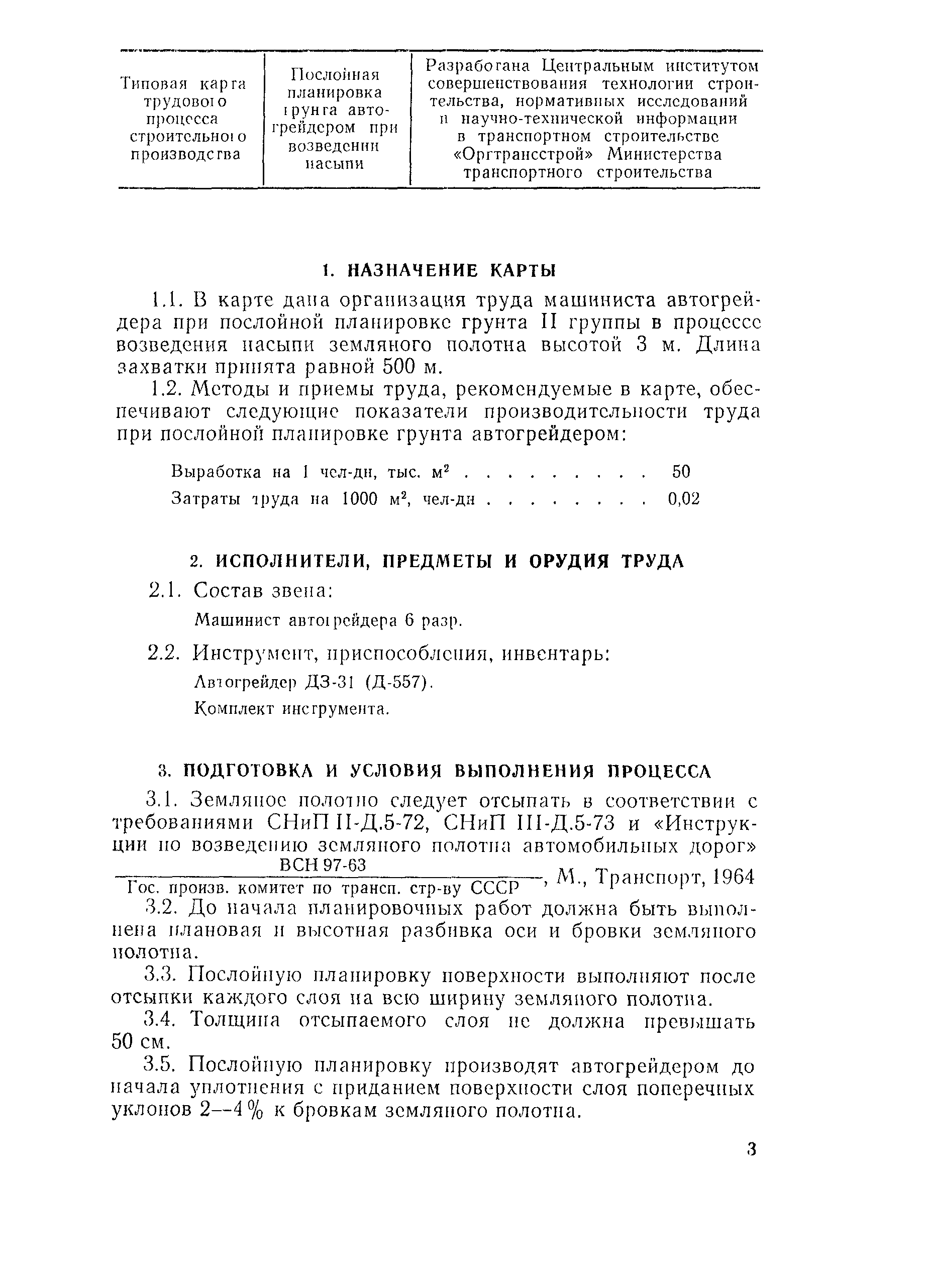 | Название рус.: | Типовая карта трудового процесса. Послойная планировка грунта автогрейдером при возведении насыпи |