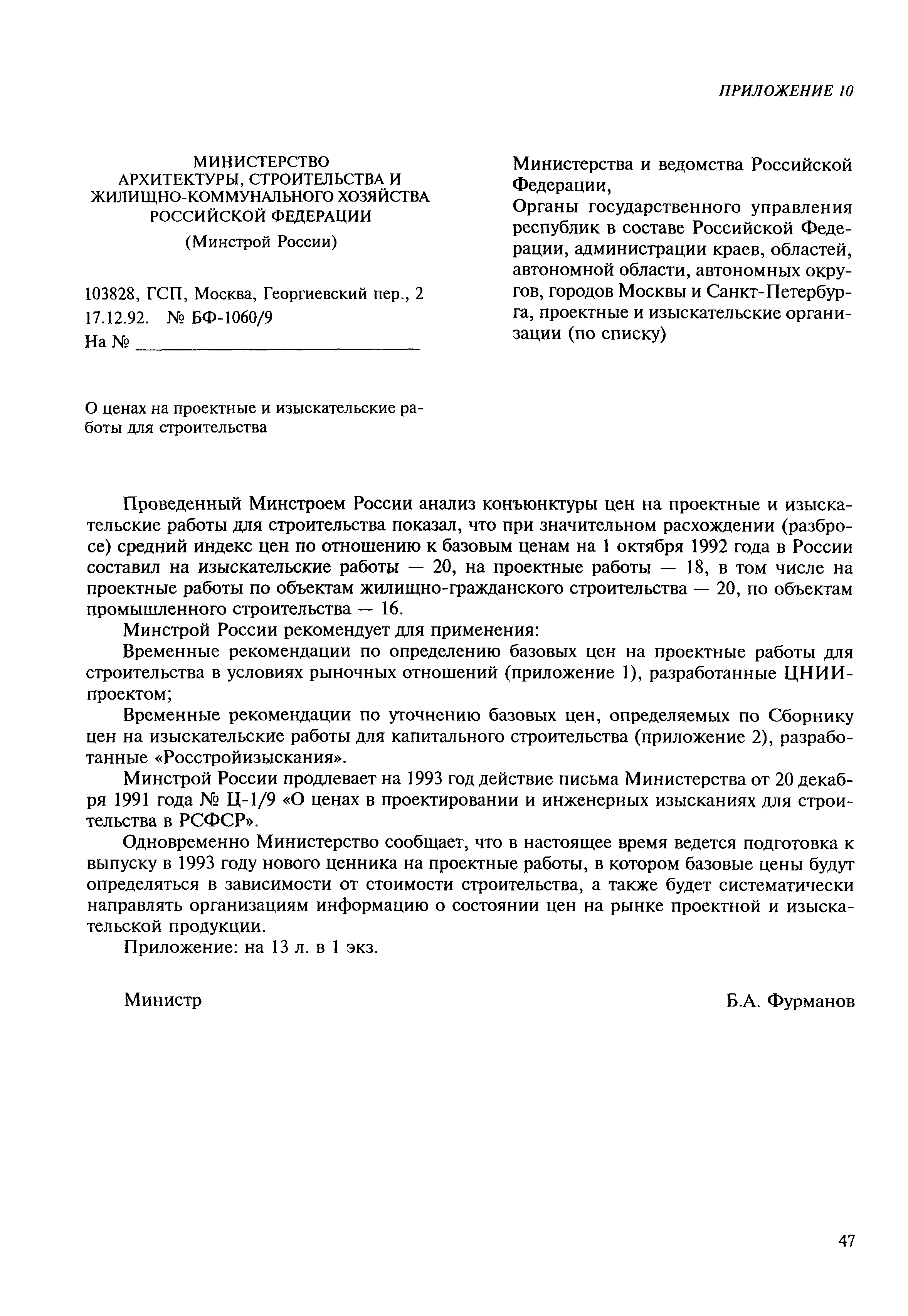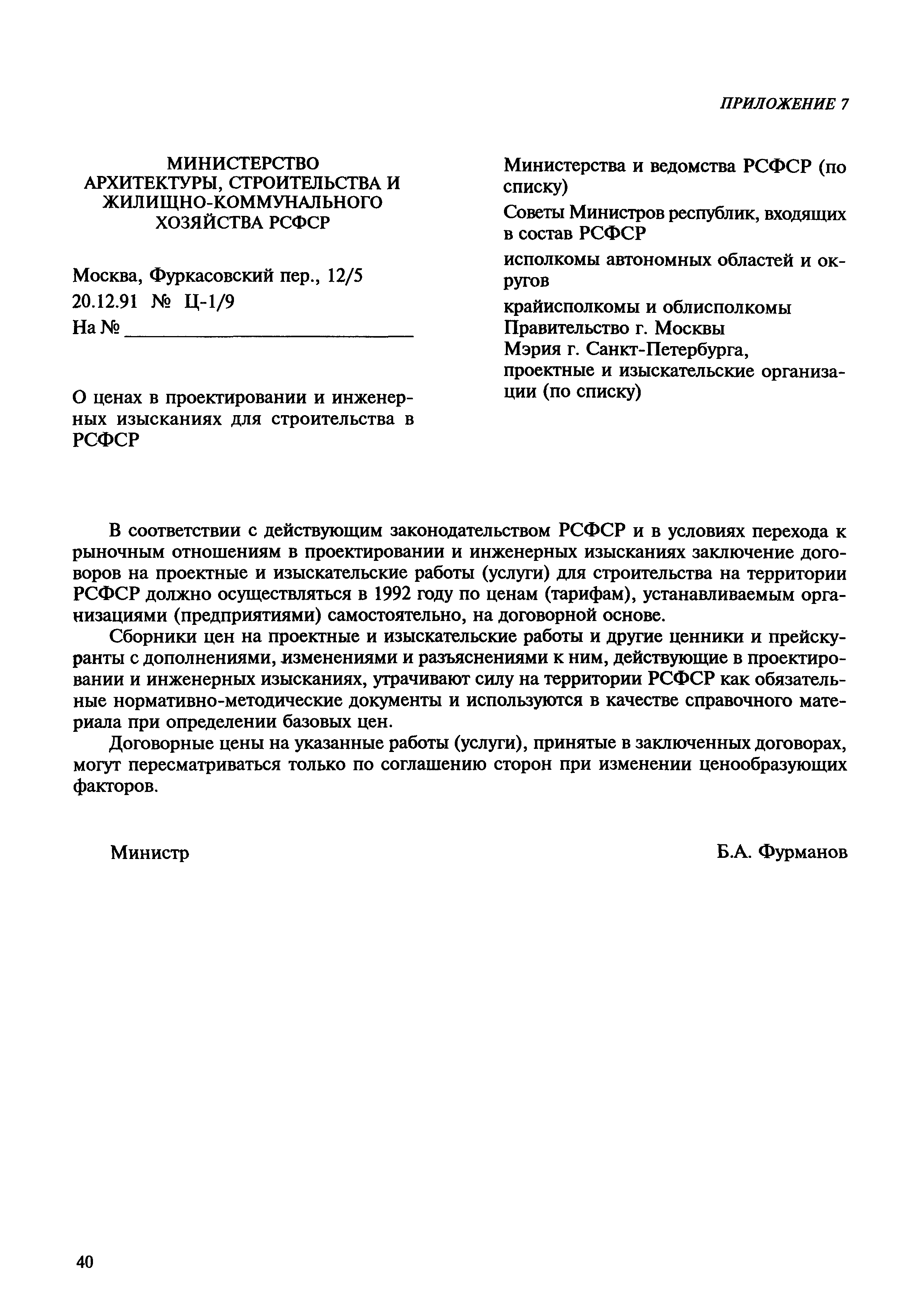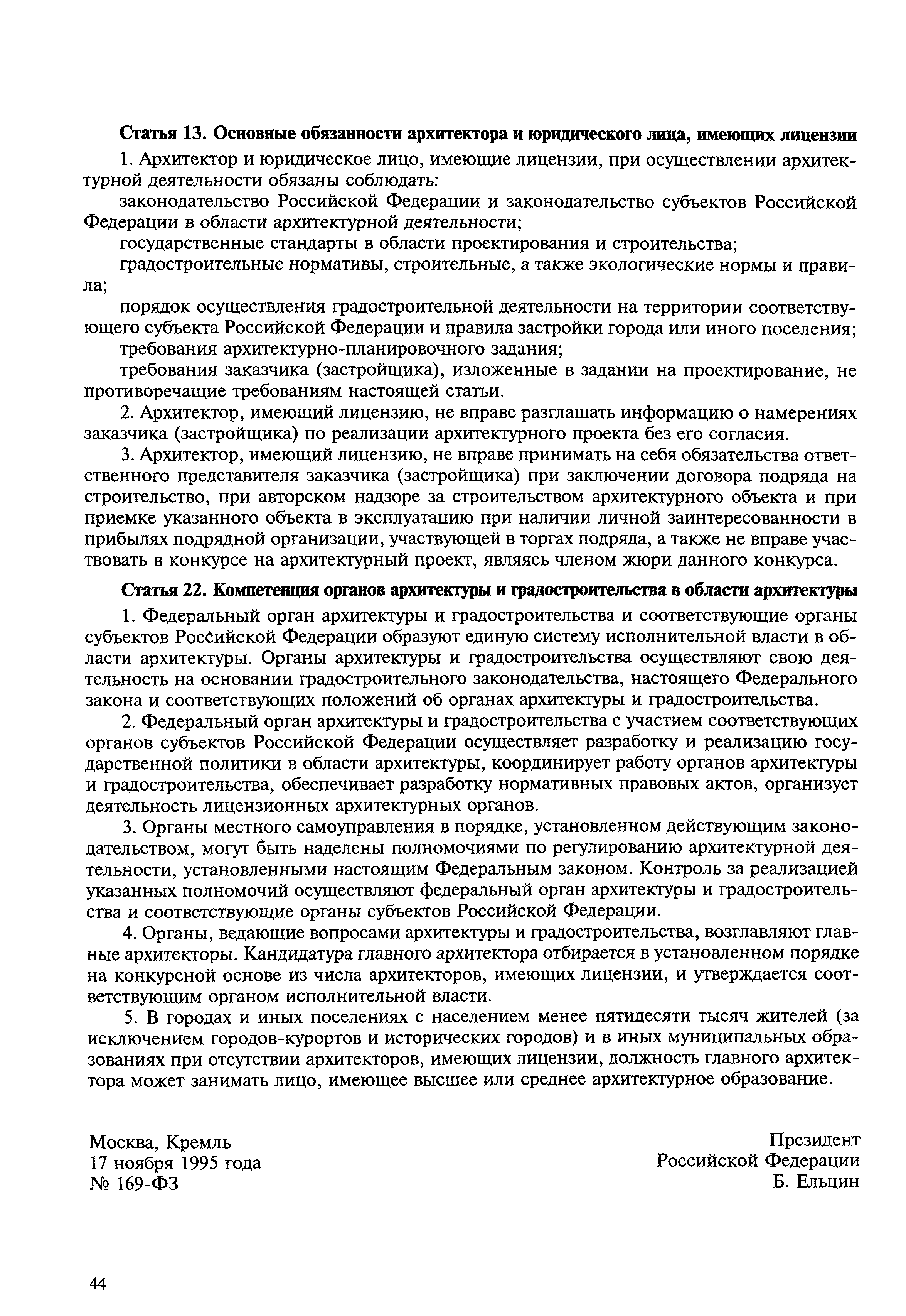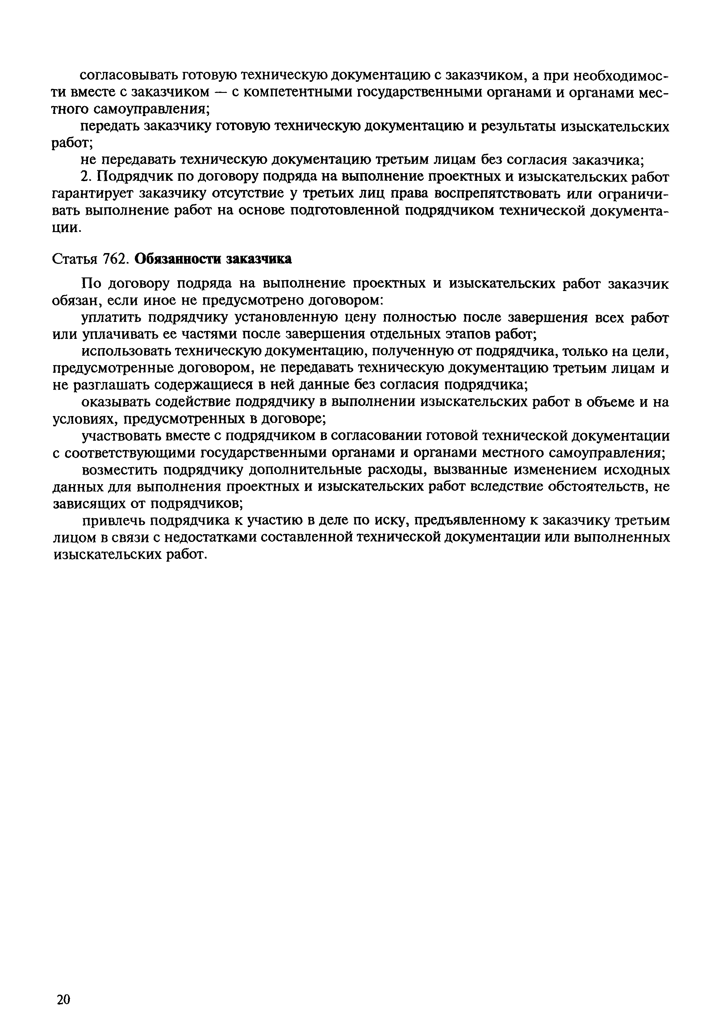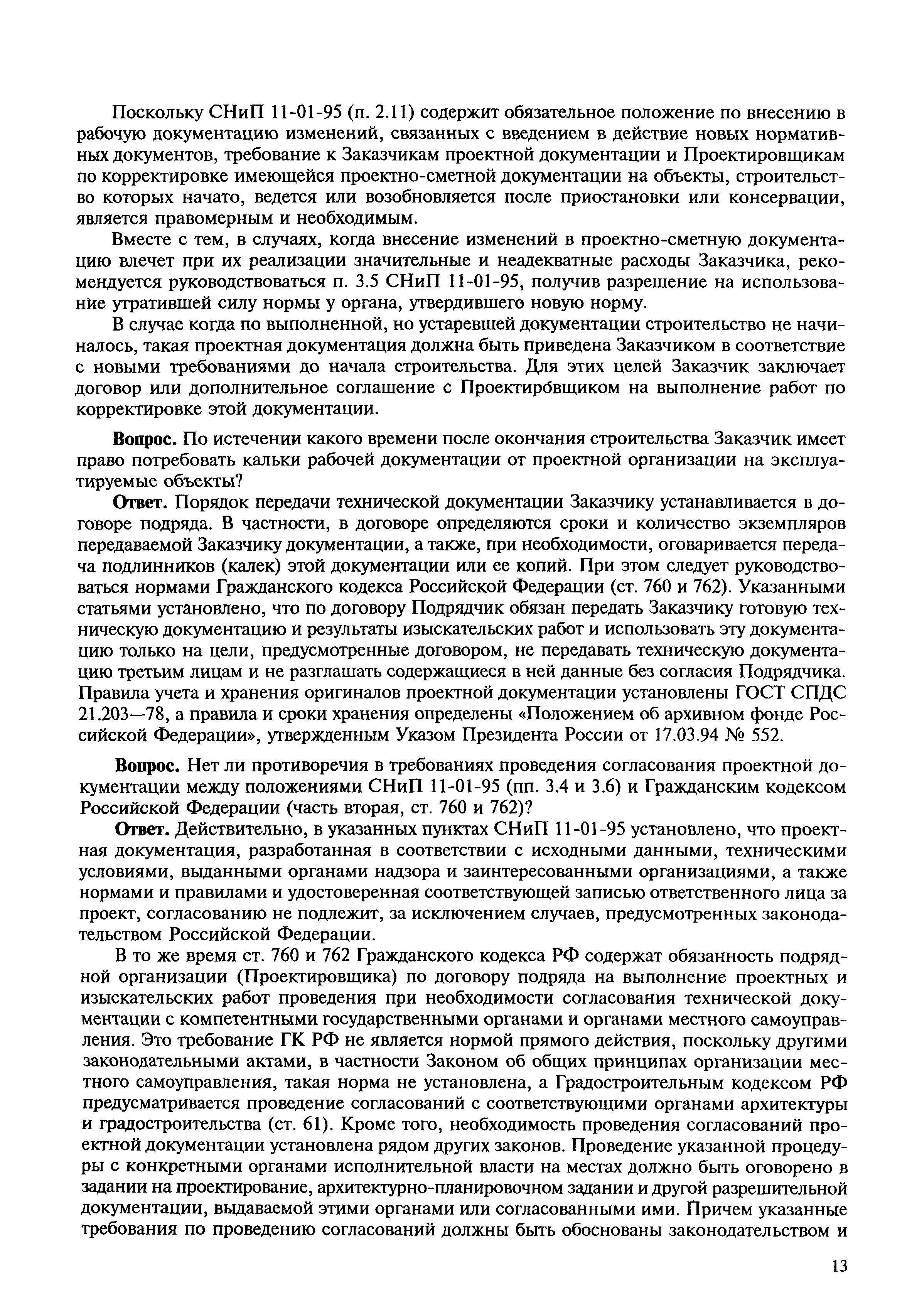 | Оглавление: | Введение Разъяснения по осуществлению проектной деятельности, составлению договоров подряда на выполнение проектно-изыскательских работ и отдельным положениям нормативных документов по организации проектирования Приложение 1 Гражданский кодекс РФ. Часть вторая (извлечение) Приложение 2 Постановление Госплана СССР и Госстроя СССР от 24.04.1985 г. № 95/60 "Указания о порядке разработки и утверждения технико-экономических обоснований строительства по крупным и сложным предприятиям и сооружениям (а при необходимости и по другим объектам) Приложение 3 Письмо Госстроя РСФСР от 28.06.90 г. № 15-118/8 "Овременном порядке разработки, определения стоимости и утверждения эскизного архитектурного проекта" Приложение 4 Постановление Верховного Совета РФ от 27.12.91 г. № 3020-1 "О разграничении государственной собственности в РФ на федеральную собственность, государственную собственность республик в составе РФ, краев, областей, автономной области, автономных округов, городов Москвы и Санкт-Петербурга и муниципальную собственность" Приложение 5 Письмо Минстроя России от 22.05.92 г. № 12-6/254 "О порядке определения экономического эффекта от внедрения мероприятий подрядчика, удешевляющих строительство" Приложение 6 Письмо Минстроя России от 21.02.95 г. № 8-16/29 "Об оценке и стимулировании мероприятий, удешевляющих строительство" Приложение 7 Письмо Минархстроя России от 20.12.91 г. № Ц-1/9 "О ценах в проектировании и инженерных изысканиях для строительства в РСФСР" Приложение 8 Закон РФ "Об архитектурной деятельности в РФ" (извлечение) от 17.11.95 г. № 169-ФЗ Приложение 9 Закон РФ "О краевом, областном Совете народных депутатов и краевой, областной администрации" (извлечение) от 05.03.92 г. № 2449-1 Приложение 10 Письмо Минстроя России от 17.12.92 г. № БФ-1060/9 "О ценах на проектные и изыскательские работы для строительства" Приложение 11 Письмо Госстроя СССР от 25.12.90 г. № 21-Д "О поправочных коэффициентах к ценам на изыскательские работы для строительства" Приложение 12 Закон РФ "Об общих принципах организации местного самоуправления в РФ" (извлечение) от 28.08.95 г. № 154-ФЗ Приложение 13 Постановление Совета Министров - Правительства РФ от 20.06.1993 г. № 585 "О государственной экспертизе градостроительной и проектно-сметной документации и утверждении проектов строительства Приложение 14 Письмо Госплана СССР, Госстроя СССР, Стройбанка СССР и ЦСУ СССР от 8 мая 1984 г. № Н6-36-Д/23-Д/144/6-14 "Об определении понятий нового строительства, расширения, реконструкции и технического перевооружения действующих предприятий" Приложение 15 Закон РСФСР "Об охране окружающей природной среды" (извлечение) от 19.12.91 г. № 2060-1 Приложение 16 Письмо Минстроя России от 15.11.96 г. № ВБ-26/12-369 "О законодательстве РФ, в соответствии с которым ведется определение стоимости строительства" Приложение 17 Письмо Госстроя СССР от 04.09.91 г. № АЧ-674-5/3 "Об определении затрат на осуществление авторского надзора" |