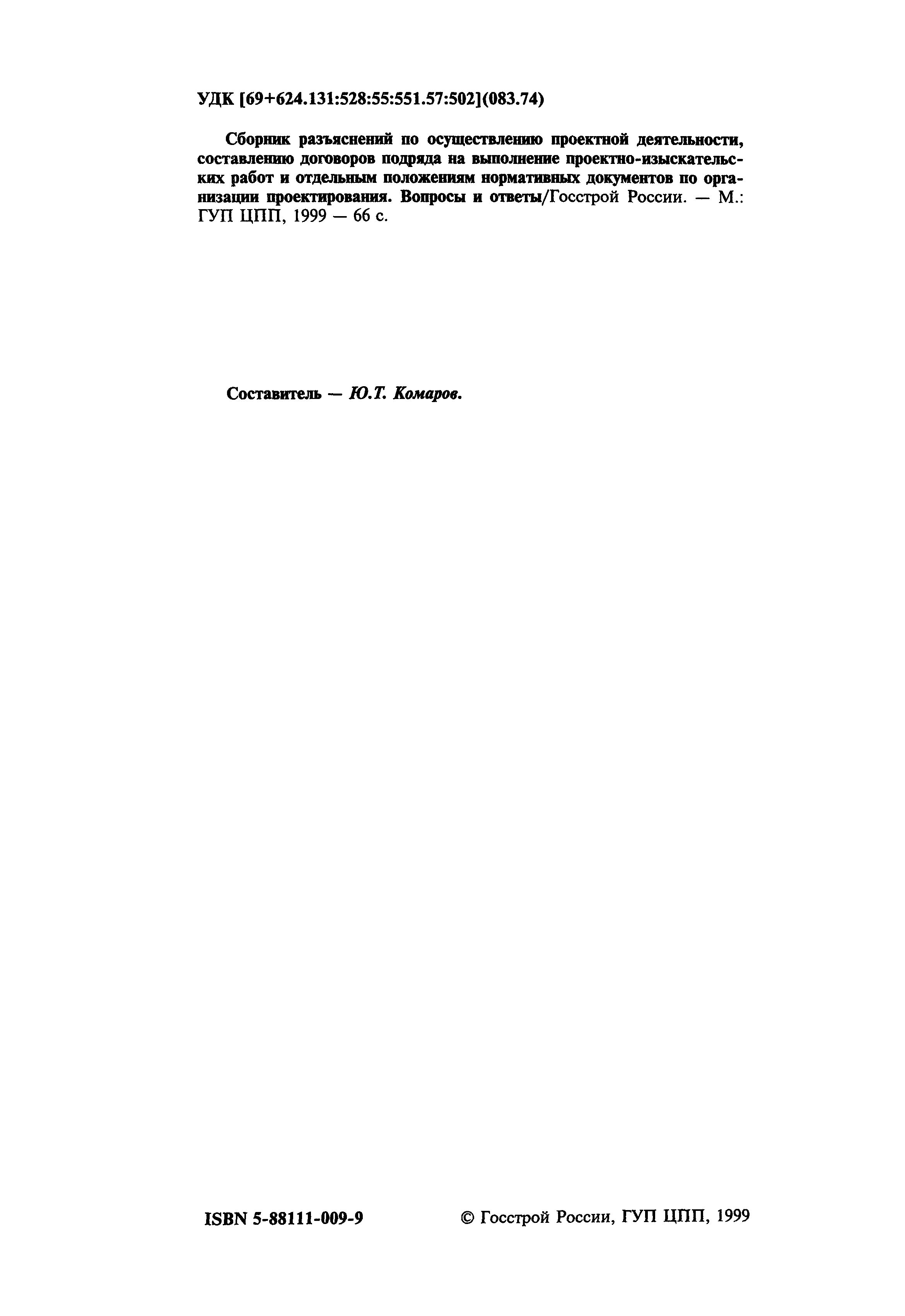 | Название рус.: | Сборник разъяснений по осуществлению проектной деятельности, составлению договоров подряда на выполнение проектно-изыскательских работ и отдельным положениям нормативных документов по организации проектирования. Вопросы и ответы |