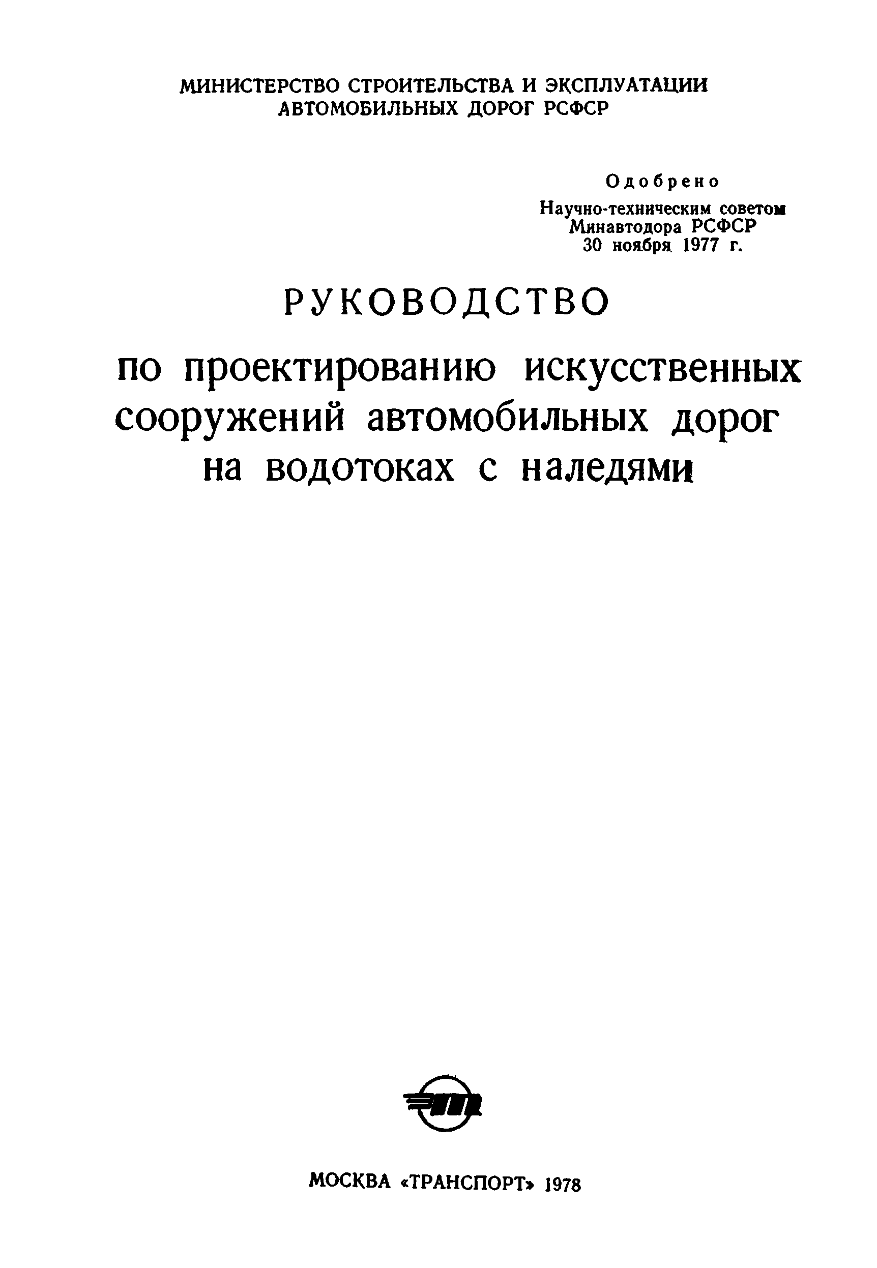 | Утверждён: | 30.11.1977 Минавтодор РСФСР (Russian Federation Minavtodor )