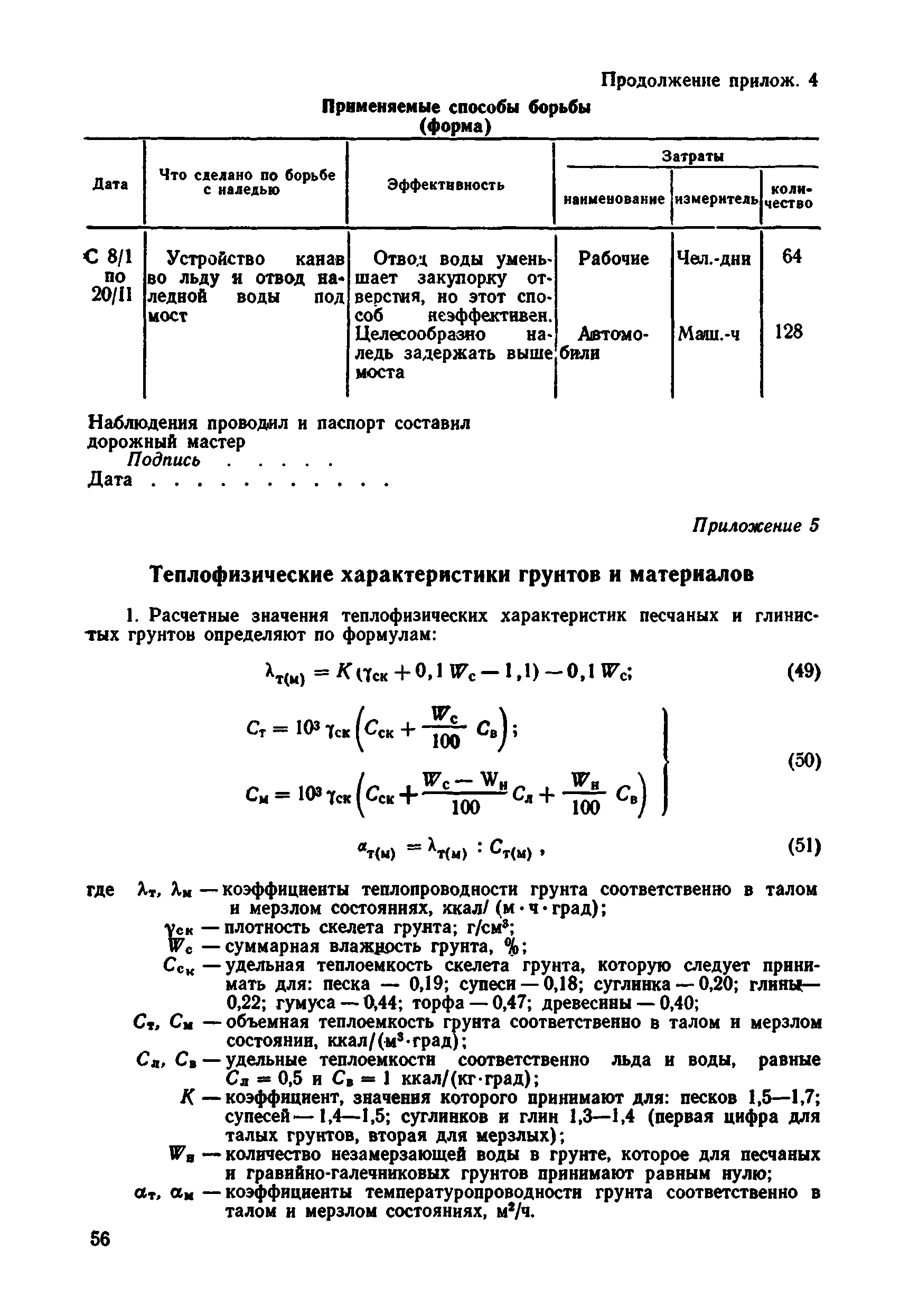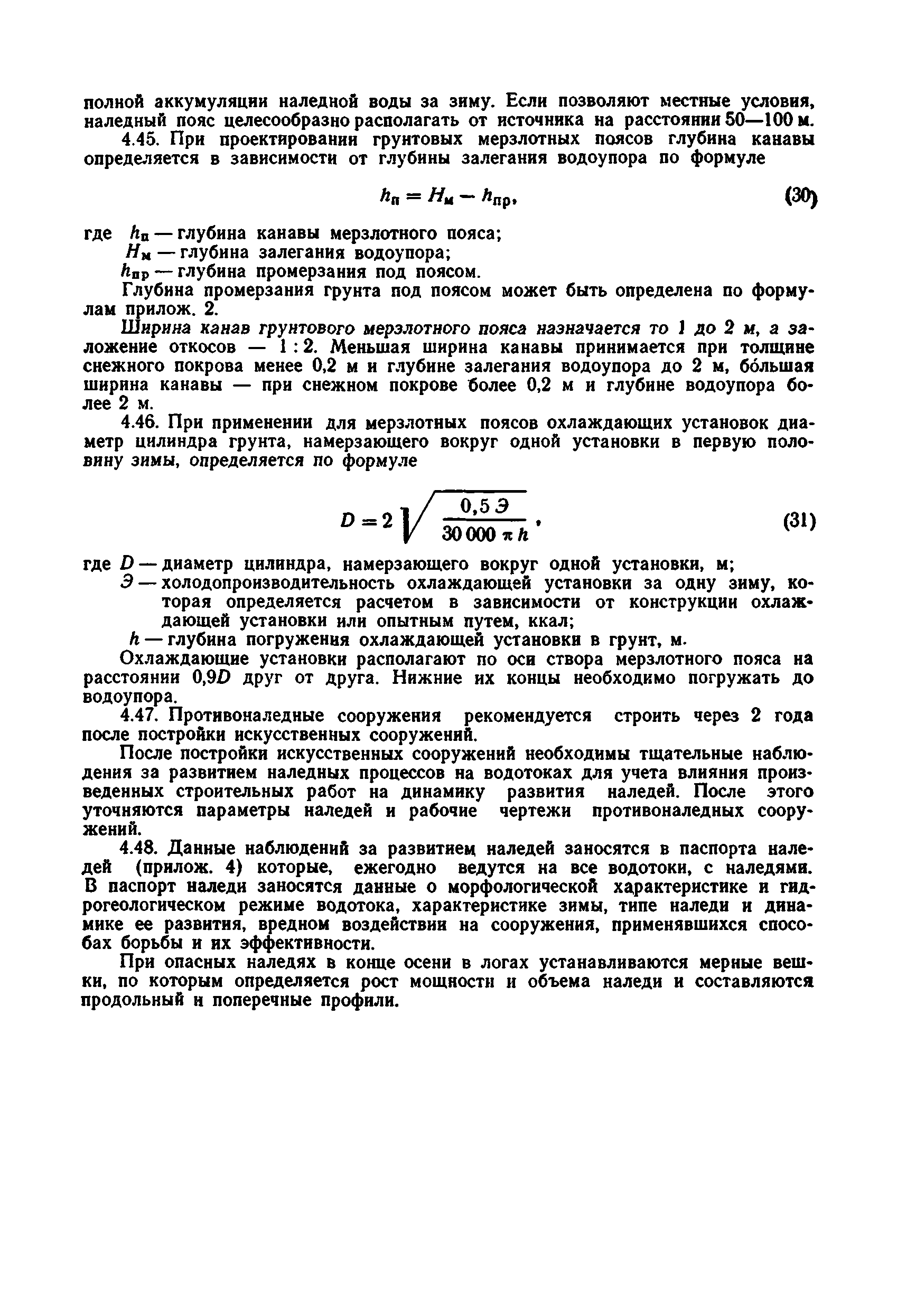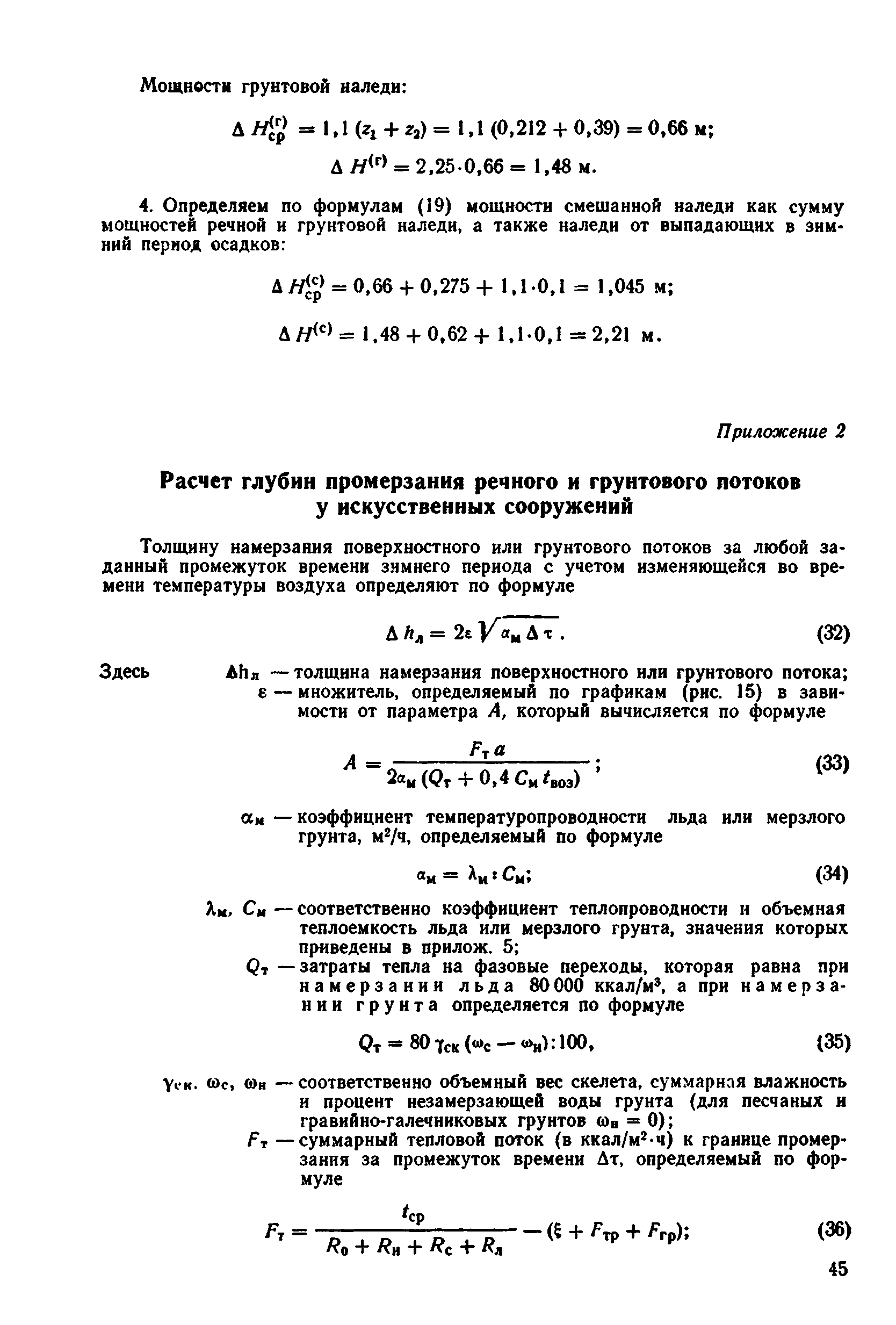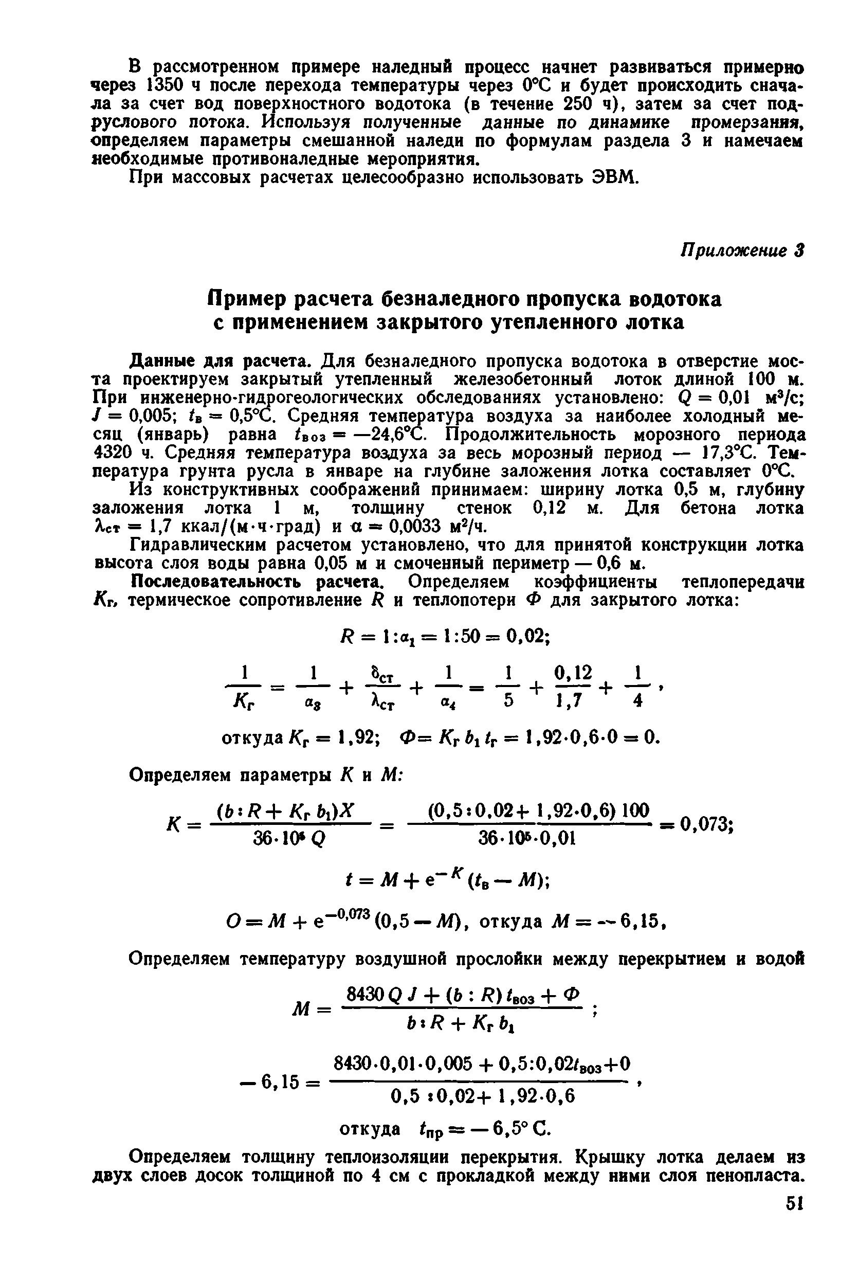 | Оглавление: | 1 Общие положения 2 Особенности изысканий и инженерно-геологических обследований переходов через водотоки с наледями 3 Опеределение расчетных параметров наледей 4 Проектирование искусственных сооружений на водотоках с наледями Приложение 1 Примеры определения расчетных параметров наледей Приложение 2 Расчет глубин промерзания рачного и грунтового потоков у искусственных сооружений Приложение 3 Пример расчета безналедного пропуска водотока с применением закрытого утепления лотка Приложение 4 Паспорт наледи № __ (форма) Приложение 5 Теплофизические характеристики грунтов и материалов |