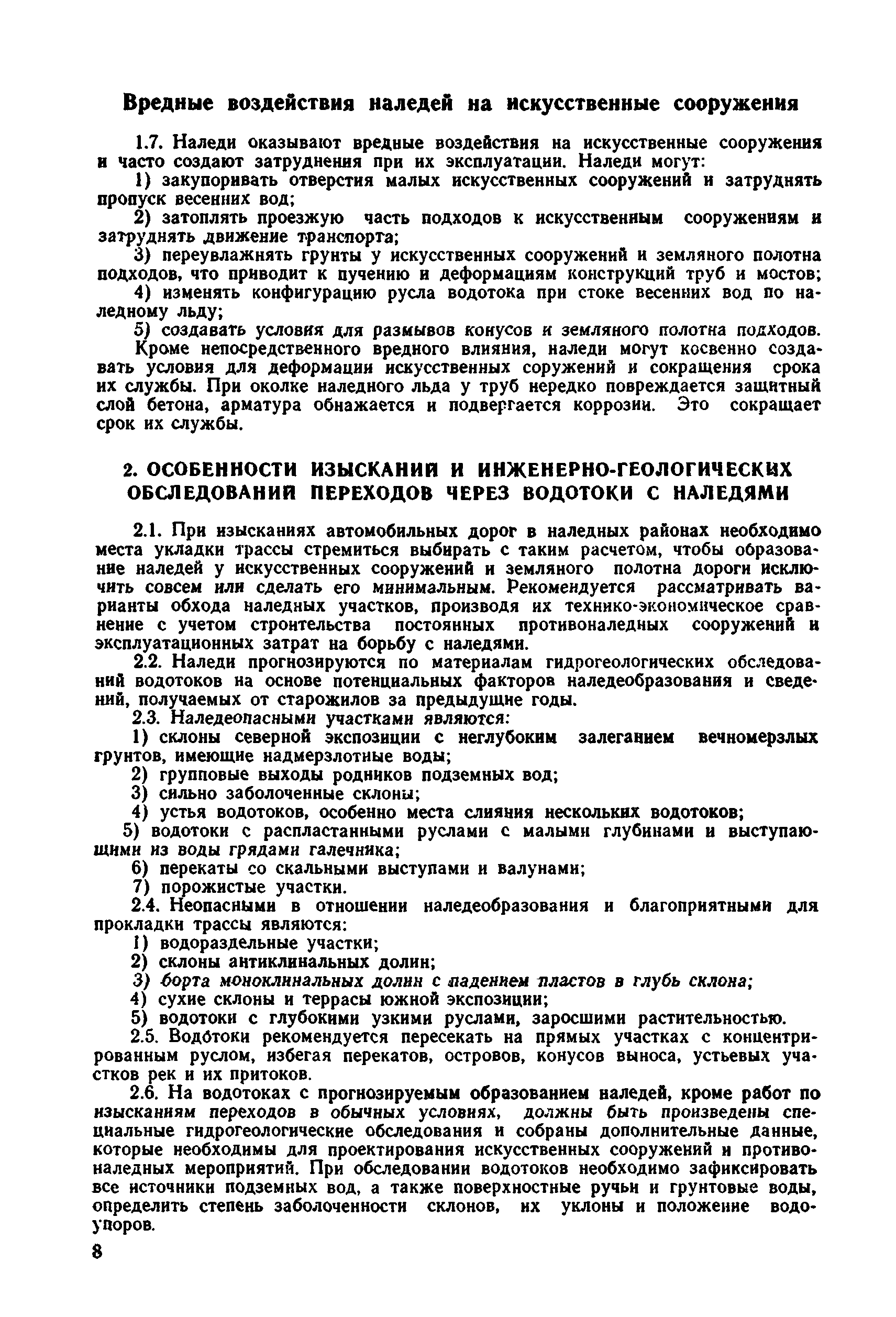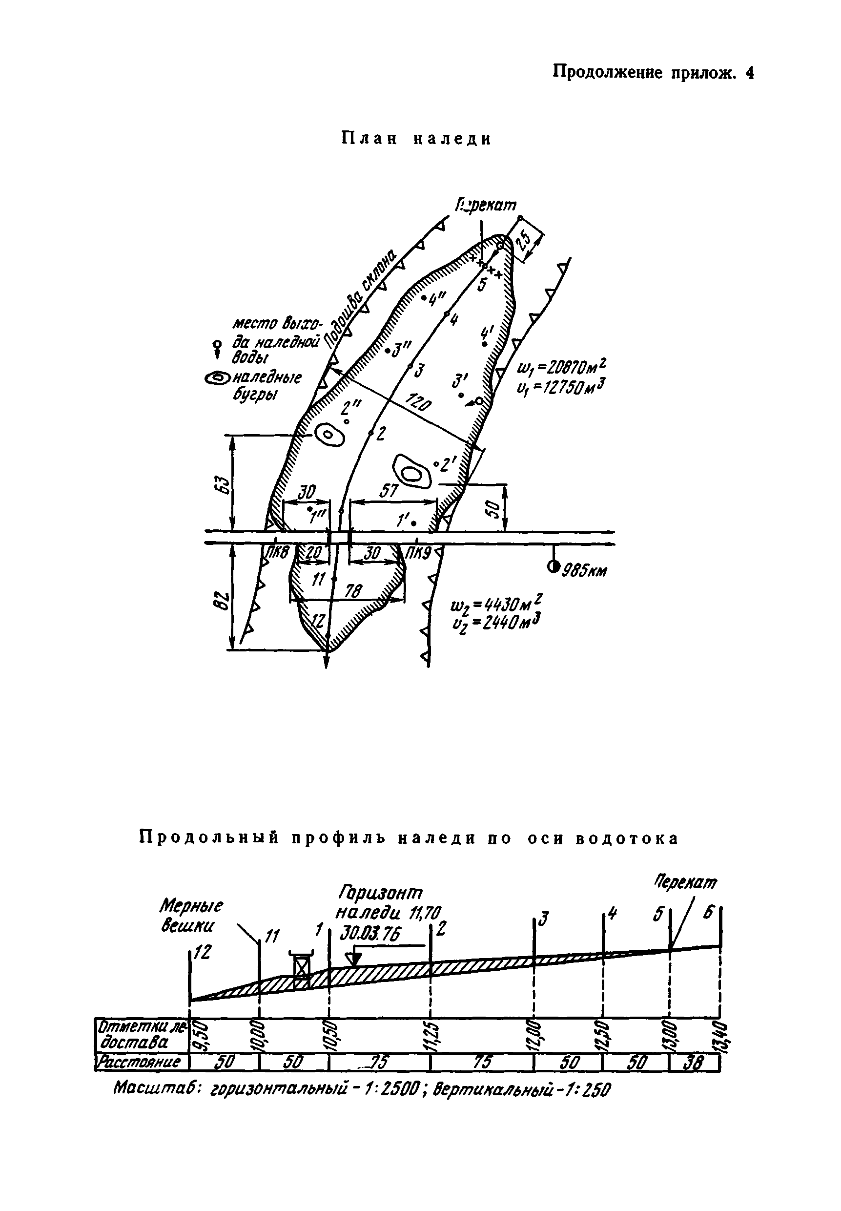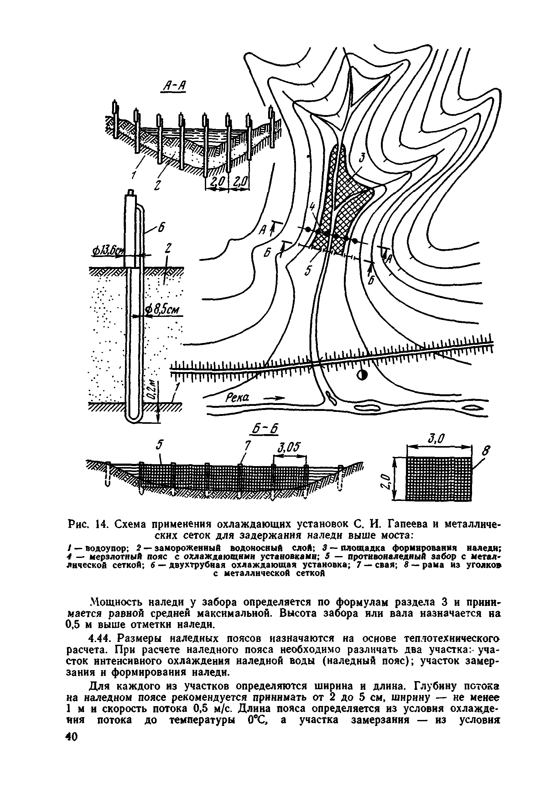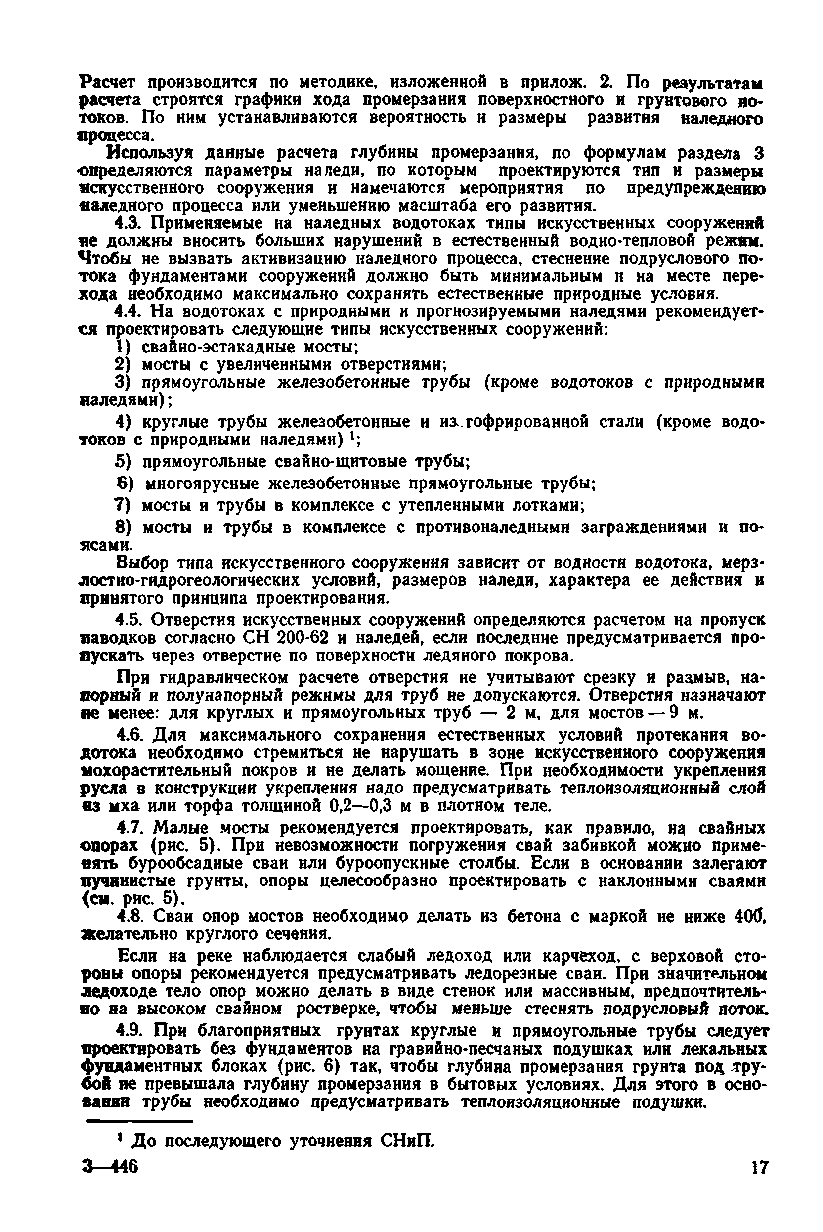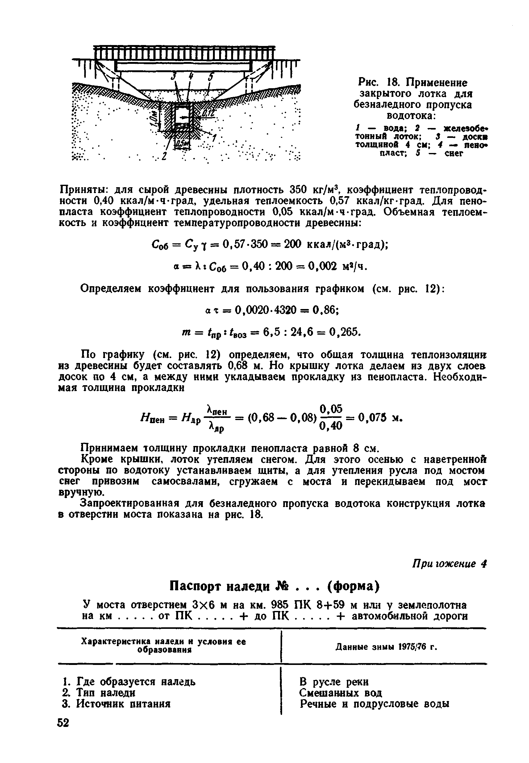 | Оглавление: | 1 Общие положения 2 Особенности изысканий и инженерно-геологических обследований переходов через водотоки с наледями 3 Опеределение расчетных параметров наледей 4 Проектирование искусственных сооружений на водотоках с наледями Приложение 1 Примеры определения расчетных параметров наледей Приложение 2 Расчет глубин промерзания рачного и грунтового потоков у искусственных сооружений Приложение 3 Пример расчета безналедного пропуска водотока с применением закрытого утепления лотка Приложение 4 Паспорт наледи № __ (форма) Приложение 5 Теплофизические характеристики грунтов и материалов |