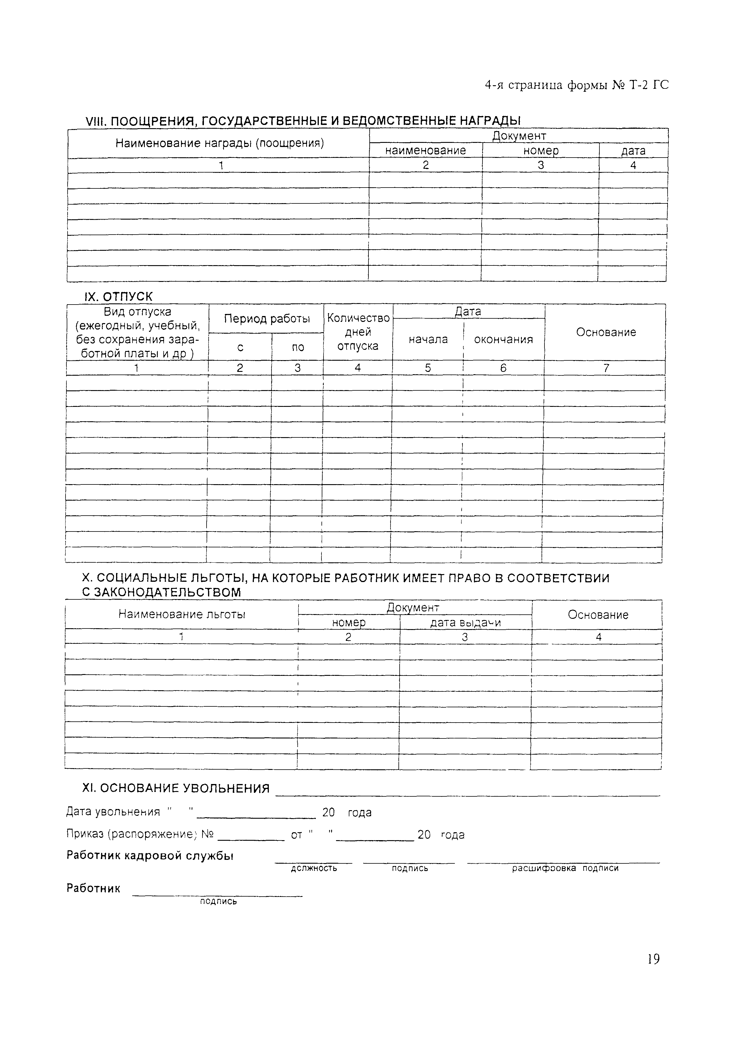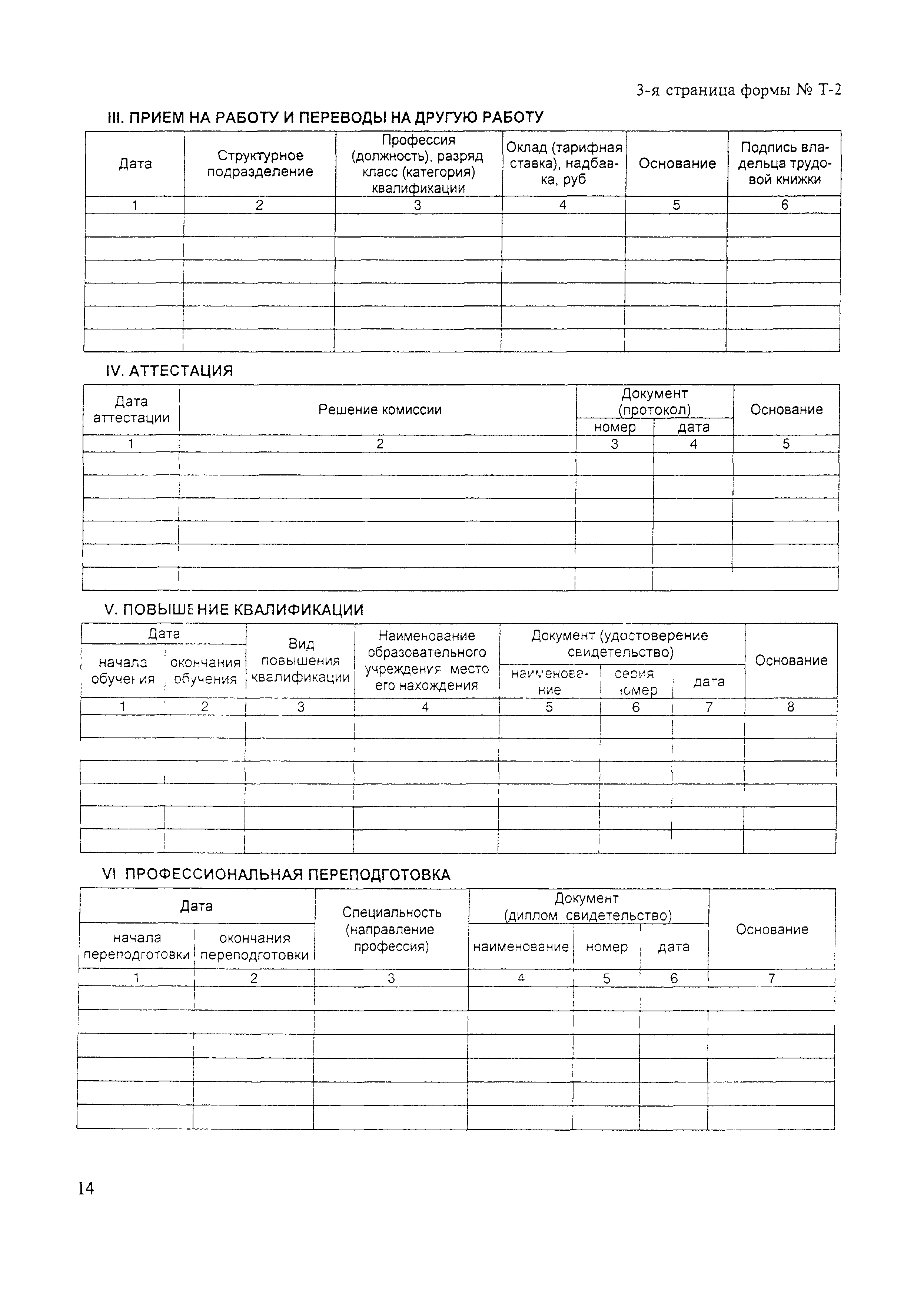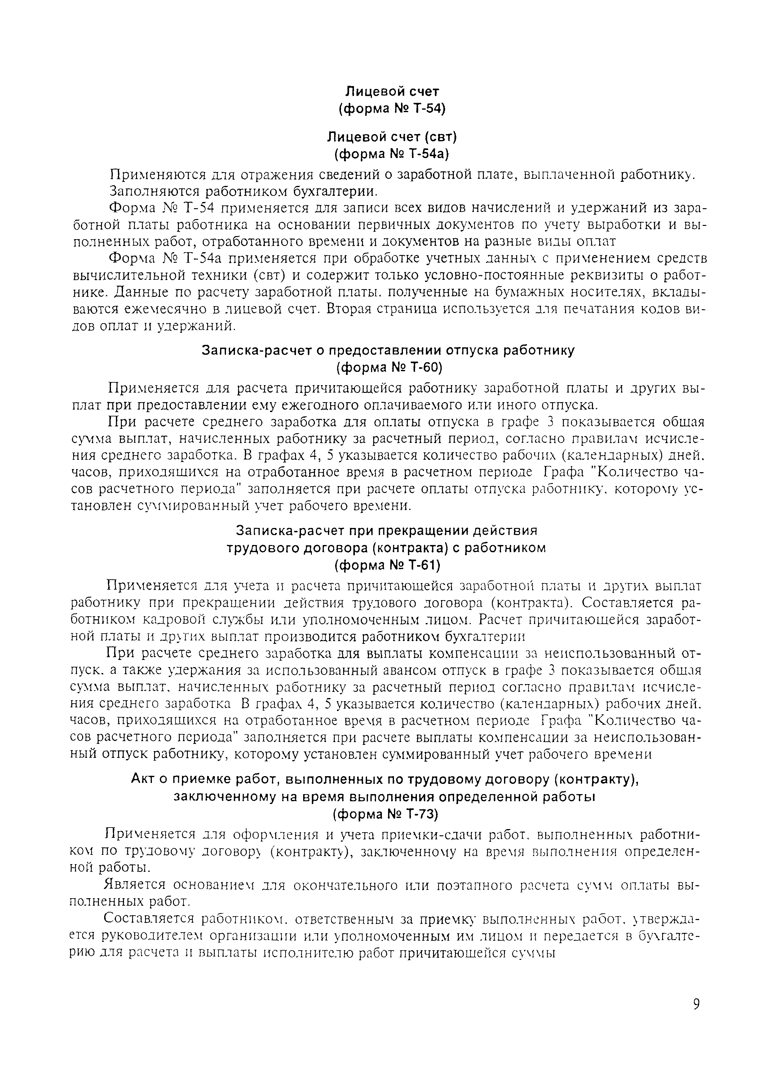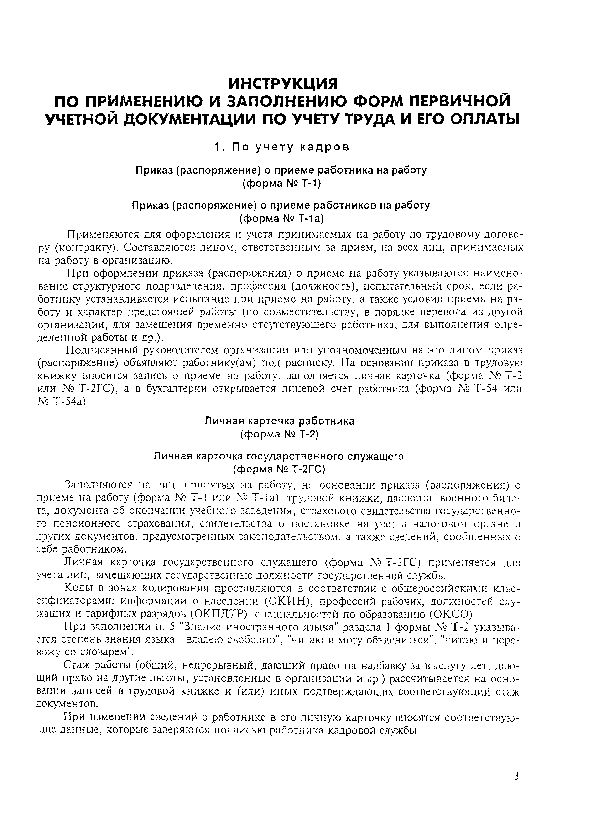 | Оглавление: | 1 По учету кадров Т-1 Т-1а Т-2 Т-2ГС Т-3 Т-4 Т-5 Т-5а Т-6 Т-6а Т-7 Т-8 Т-8а Т-9 Т-9а Т-10 Т-10а Т-11 Т-11а 2 По учету использования рабочего времени и расчетов с персоналом по оплате труда Т-12 Т-13 Т-49 Т-51 Т-53 Т-53а Т-54 Т-54а Т-60 Т-61 Т-73 |