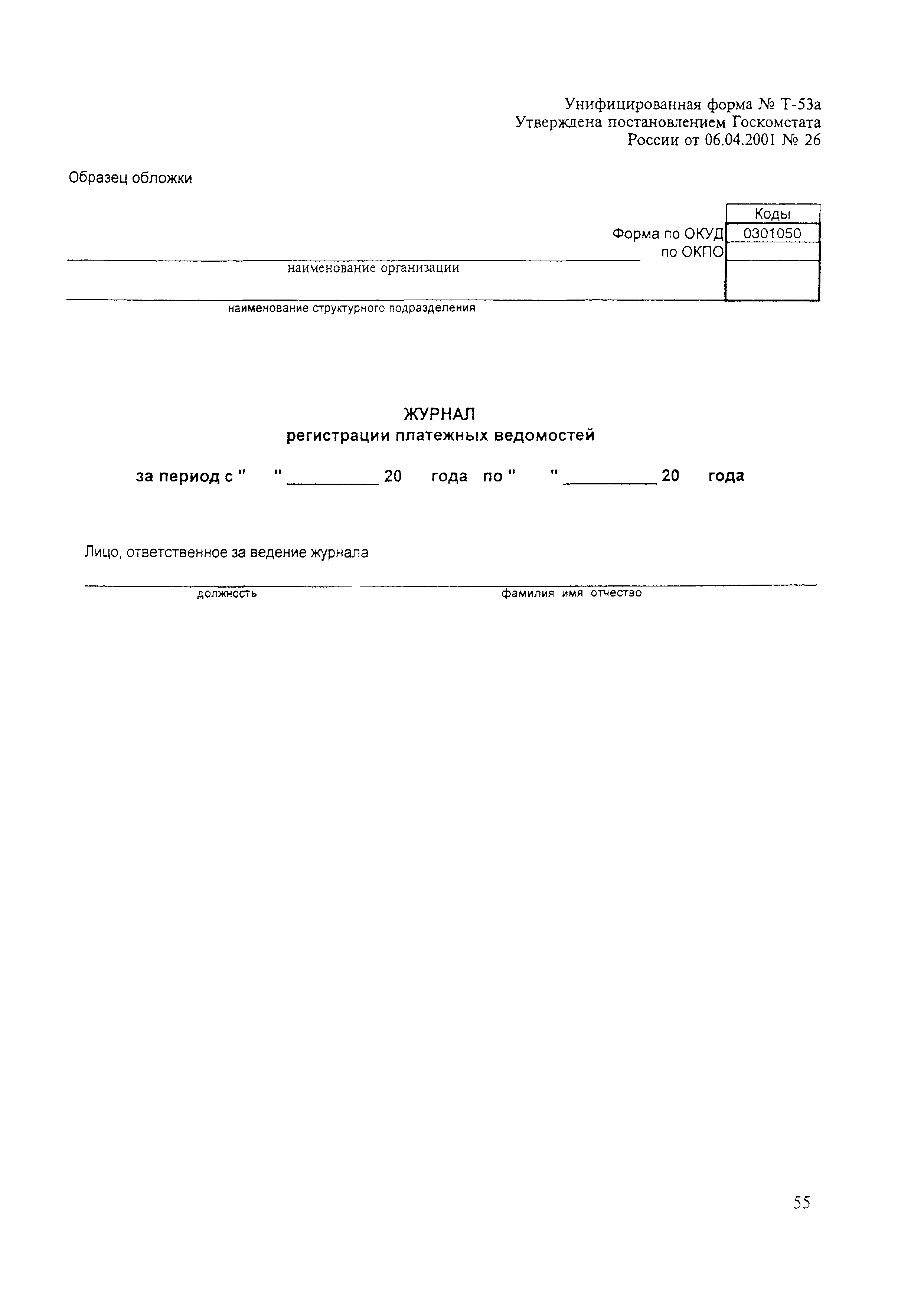 | Название рус.: | Журнал унифицированных форм первичной учетной документации по учету труда и его оплаты |