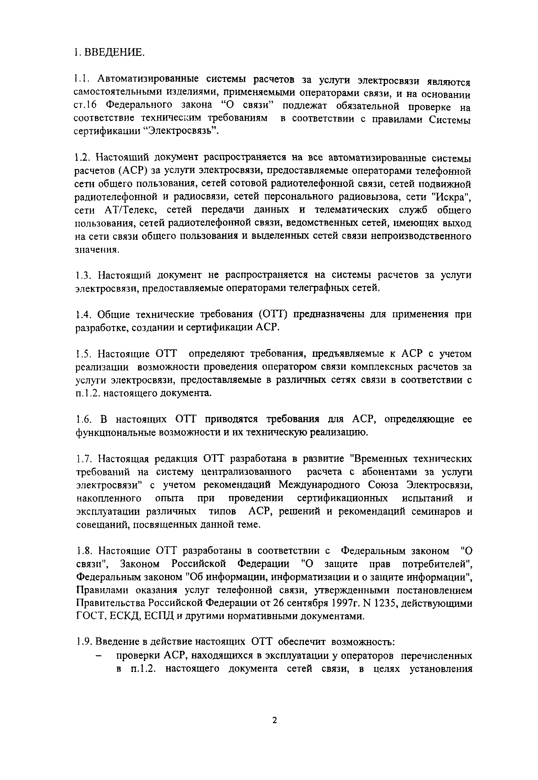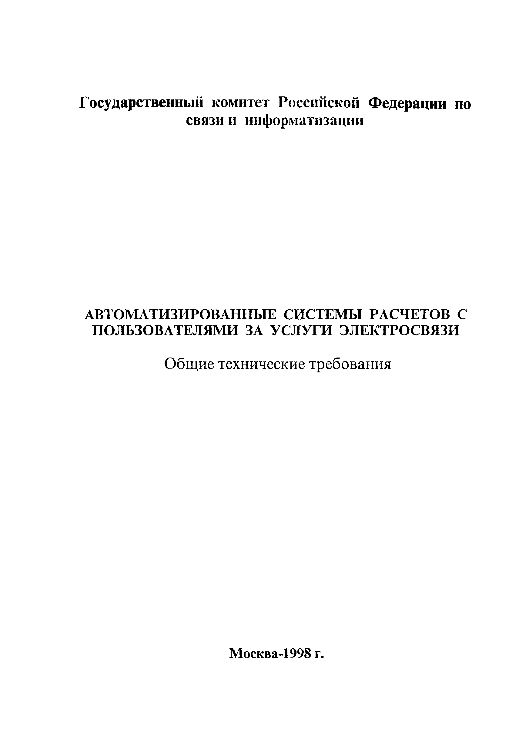 | Область применения: | Настоящий документ распространяется на все автоматизированные системы расчетов (АСР) за услуги электросвязи, предоставляемые операторами телефоннйо сети общего пользования, сетей сотовой радиотелефонной связи, сетей подвижной радиотелефонной и радиосвязи, сетей персонального радиовызова, сети "Искра", сети АТ/Телекс, сетей передачи данных и телематических служб общего пользования, сетей радиотелефонной связи, ведомственных сетей, имеющих выход на сети общего пользования и выделенных сетей связи непроизводственного значения. |