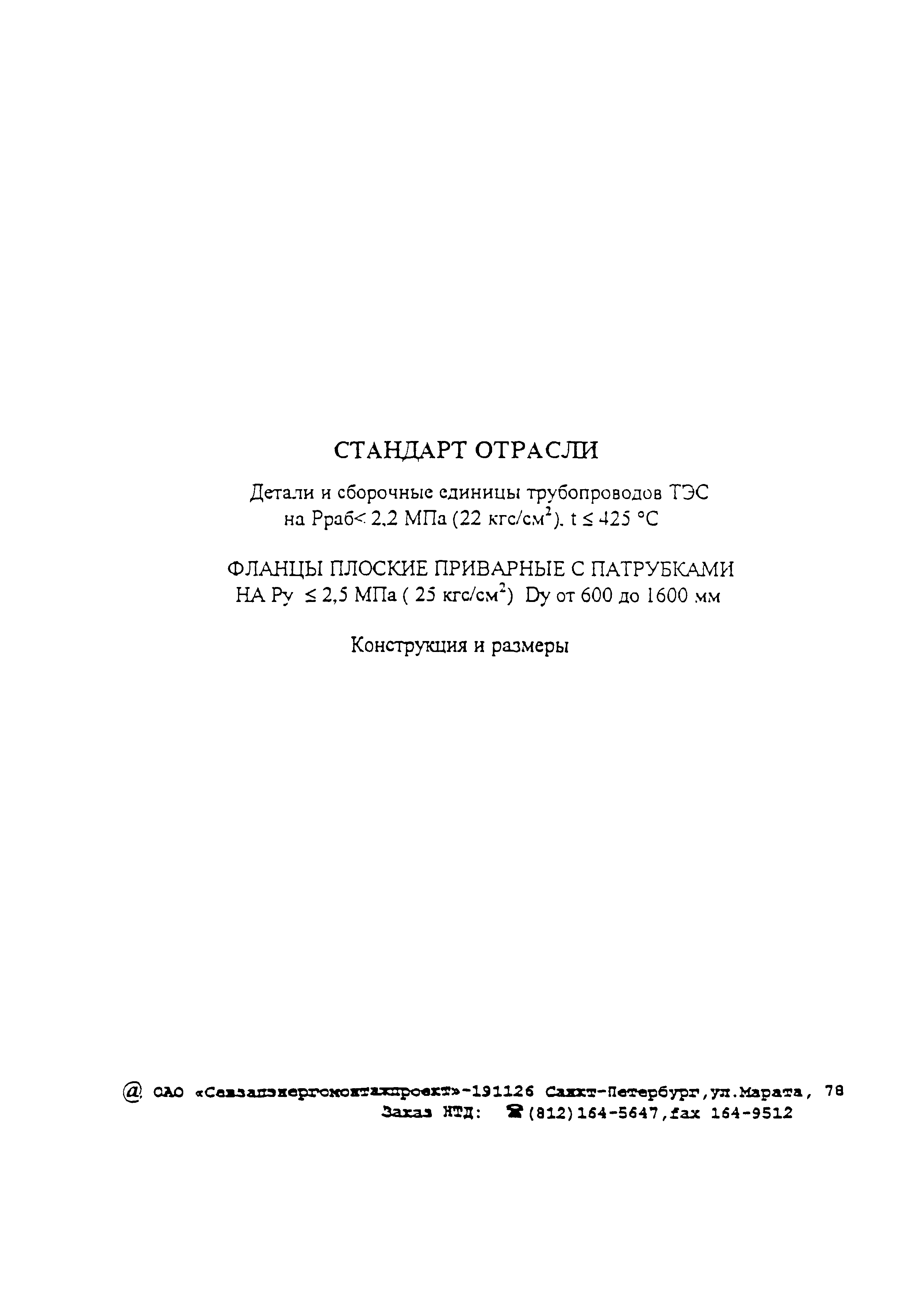 Детали и сборочные единицы трубопроводов ТЭС на Рраб<2,2 МПа (22 кгс/см2), t<=425 °C. Фланцы плоские приварные с патрубками на Ру<=2,5 Мпа (25 кгс/см2) Dу от 600 до 1600 мм. Конструкция и размеры| Обозначение: | ОСТ 34-10-755-97 | | Обозначение англ: | OST 34-10-755-97 | | Статус: | не определен законодательством | | Название рус.: | Детали и сборочные единицы трубопроводов ТЭС на Рраб<2,2 МПа (22 кгс/см2), t<=425 °C. Фланцы плоские приварные с патрубками на Ру<=2,5 Мпа (25 кгс/см2) Dу от 600 до 1600 мм. Конструкция и размеры | | Дата добавления в базу: | 01.09.2013 | | Дата актуализации: | 01.01.2021 | | Дата введения: | 01.03.1998 | | Дата окончания срока действия: | 30.06.2003 | | Область применения: | Стандарт распространяется на плоские приварные фланцы с патрубками из углеродистой и низколегированной сталей на Ру&amp;amp;lt;=2,5 МПа (25 кгс/см2), при рабочей температуре t&amp;amp;lt;=350°C для трубопроводов тепловых электростанций. | | Оглавление: | 1 Область применения 2 Нормативные ссылки 3 Конструкция и размеры Приложение А Библиография | | Разработан: | АООТ Севзапэнергомонтажпроект