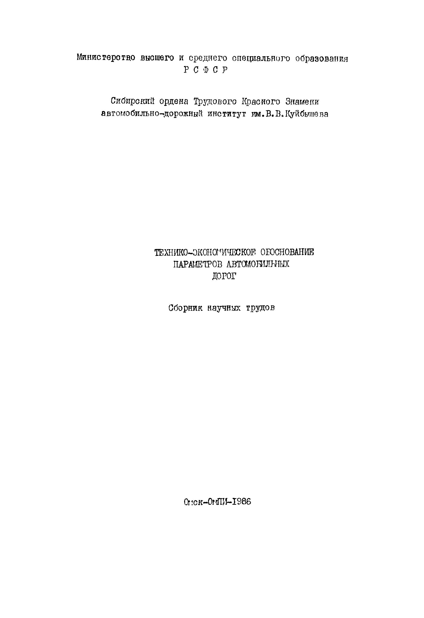 | Утверждён: | 29.08.1986 Сибирский автомобильно-дорожный институт им В.В. Куйбышева