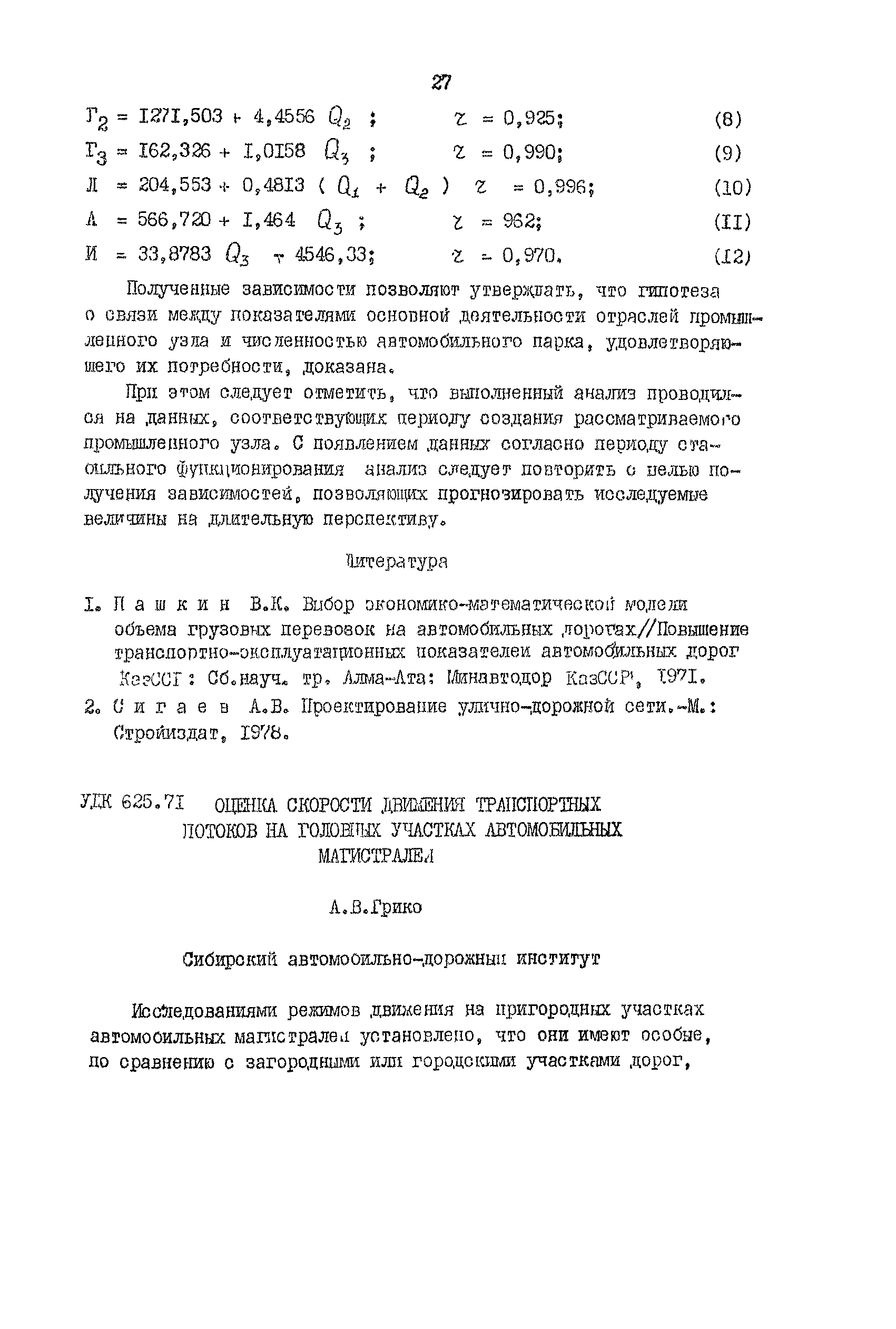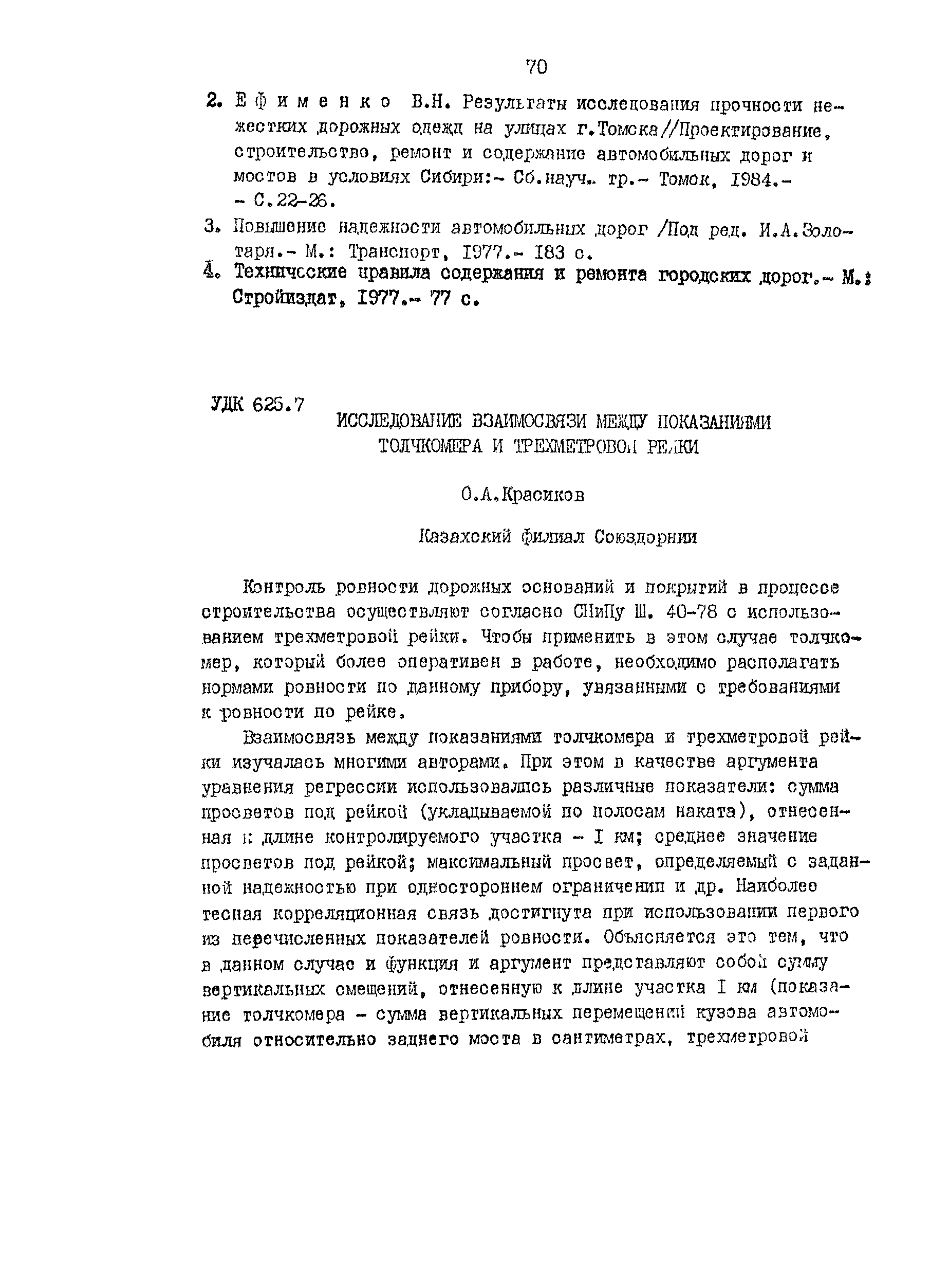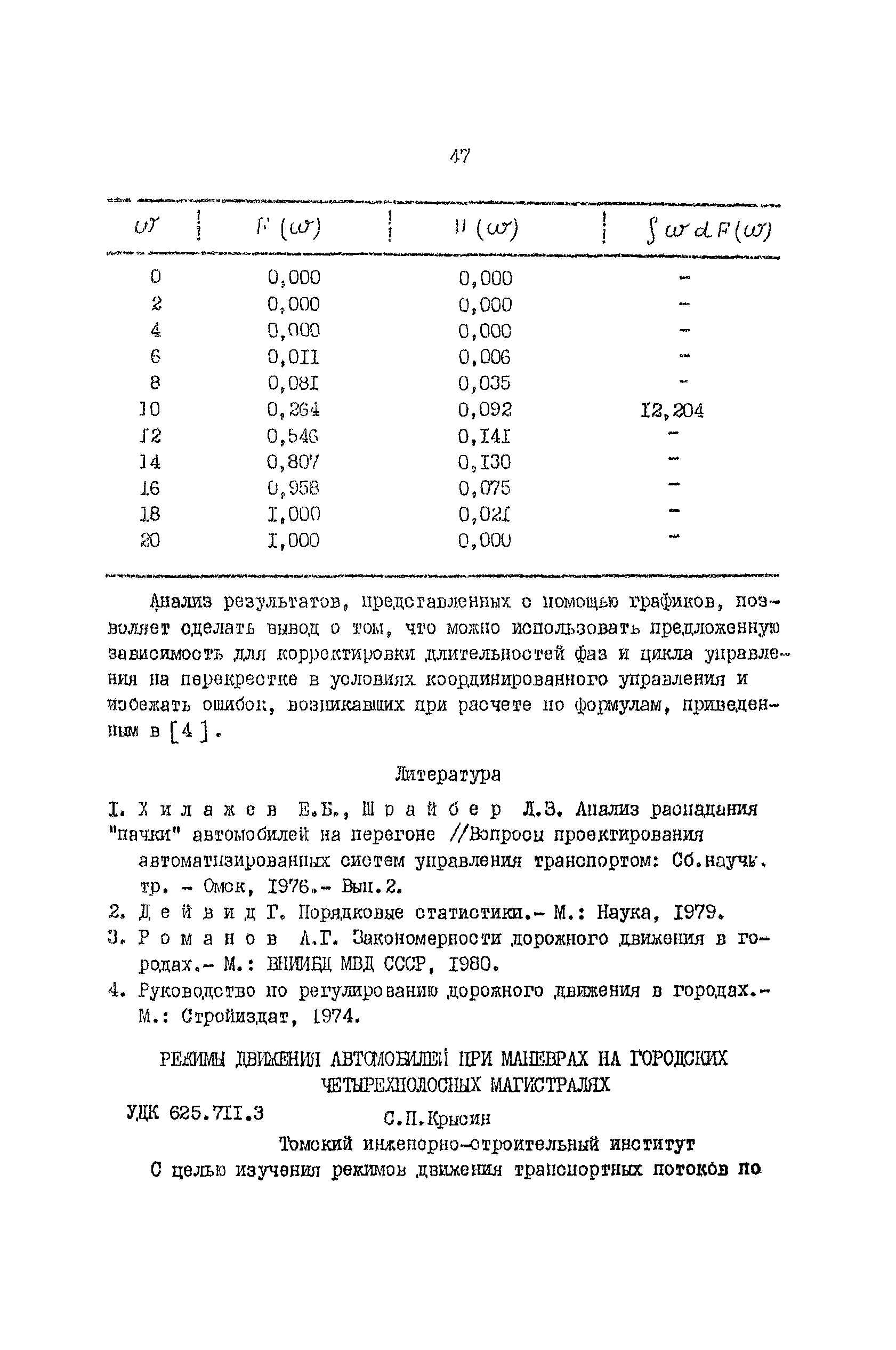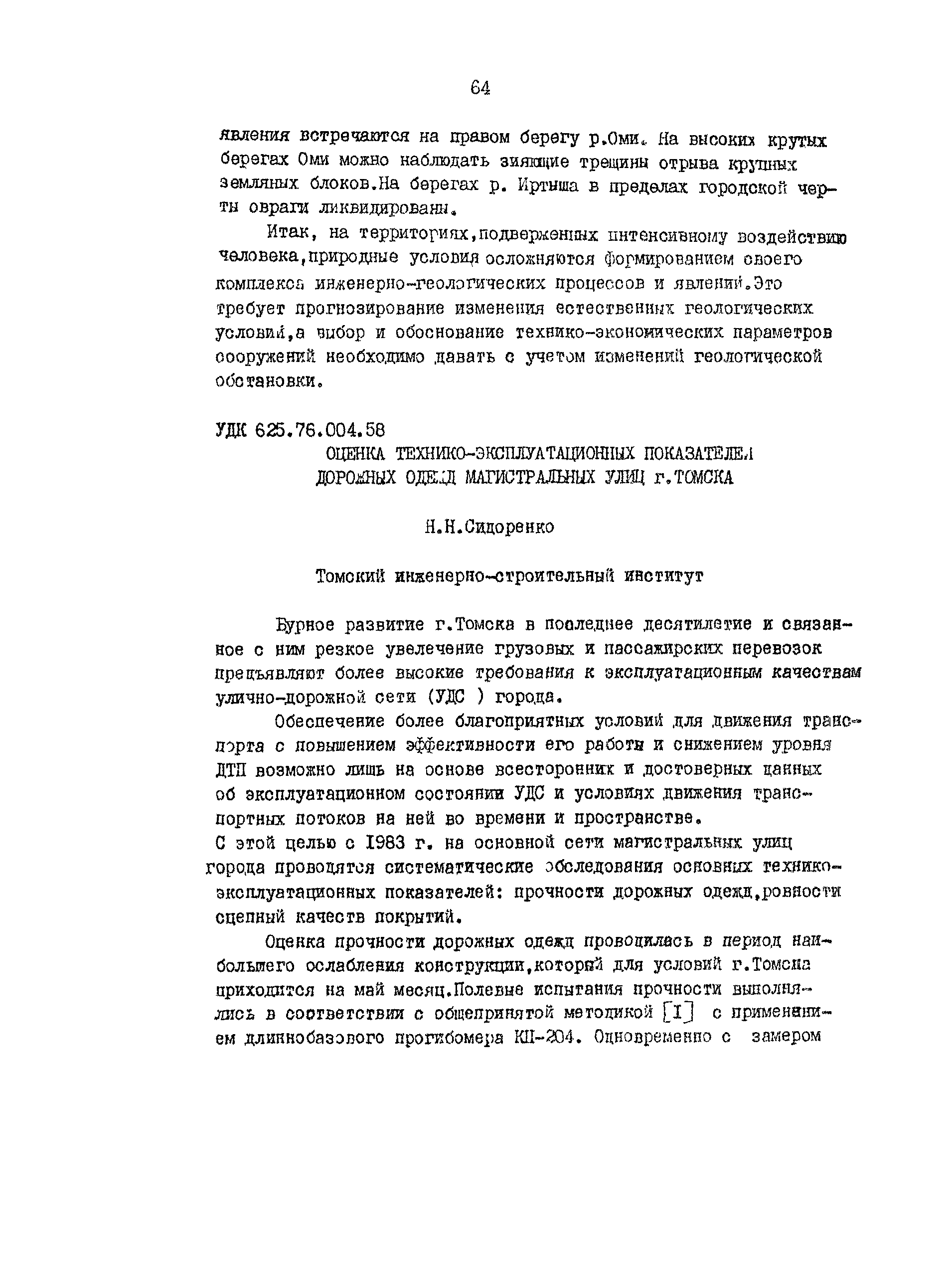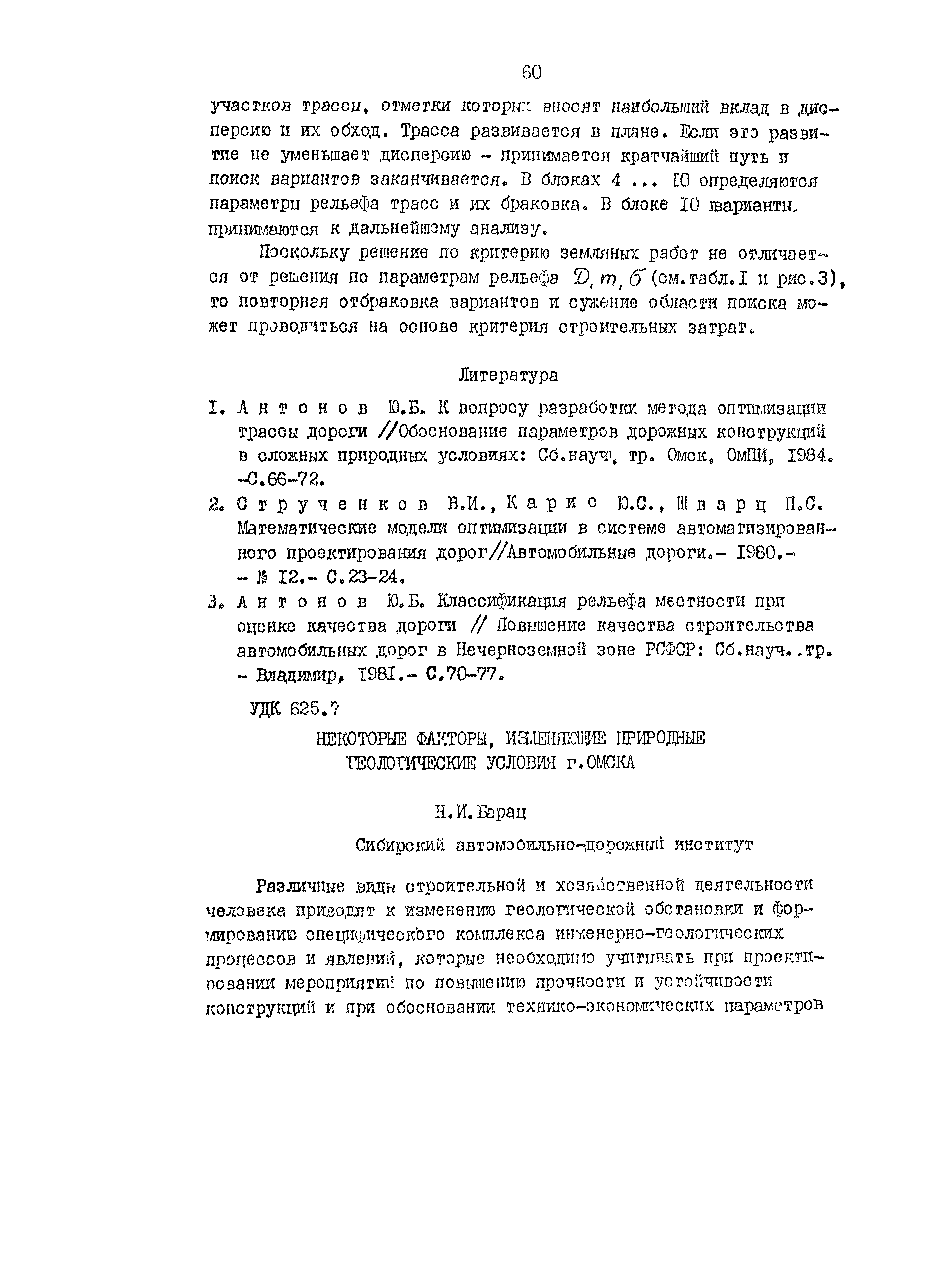 | Оглавление: | Анализ влияния коэффициента экономической эффективности на достоверность технико-экономических обоснований Эффективность повышения технического уровня сети автомобильных дорог в сельскохозяйственных районах Режимы движения автомобилей в зимнее время Исследование формирования грузопотоков на сетях автомобильных дорог промышленных узлов Оценка скорости движения транспортных потоков на головных участках автомобильных магистралей Анализ изменений скорости движения в зависимости от типа покрытий Использование автомобилями ширины проезжей части горных дорог К вопросу о восприятии водителями предупреждающих дорожных знаков Оценка влияния сложности рельефа местности на безопасность движения Анализ распадения группы автомобилей на перегоне Режимы движения автомобилей при маневрах на городских четырехполосных магистралях Исследование изменения объемов земляных работ в зависимости от коэффициента развития трассы Обоснование методики и критериев трассирования дорог на цифровой модели местности Некоторые факторы, изменяющие природные геологические условия г. Омска Оценка технико-эксплуатационных показателей дорожных одежд магистральных улиц г. Томска Исследование взаимосвязи между показаниями толчкомера и трехметровой рейки Оценка потерь сельского хозяйства в зависимости от уровня развития дорожной сети |