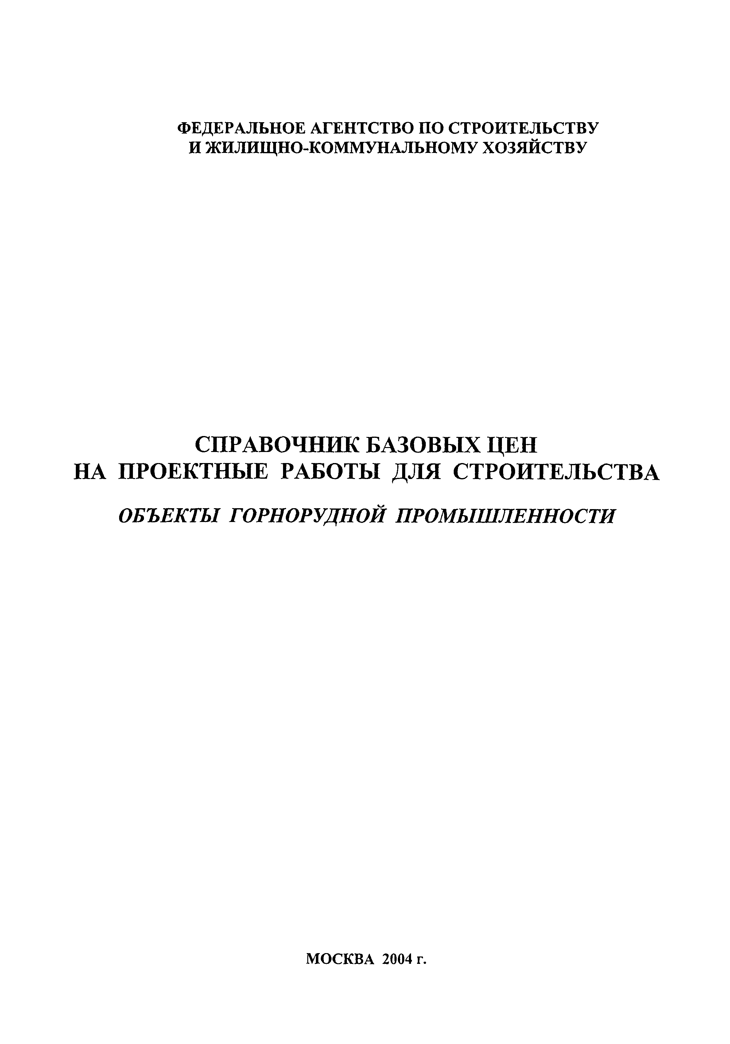 | Название рус.: | Объекты горнорудной промышленности. Справочник базовых цен на проектные работы для строительства |