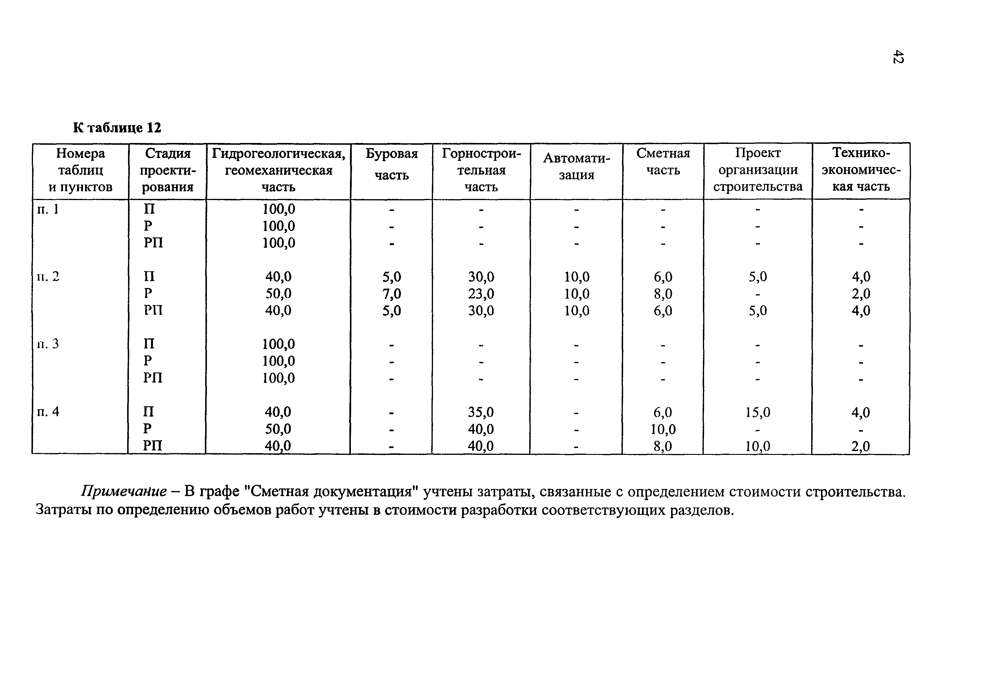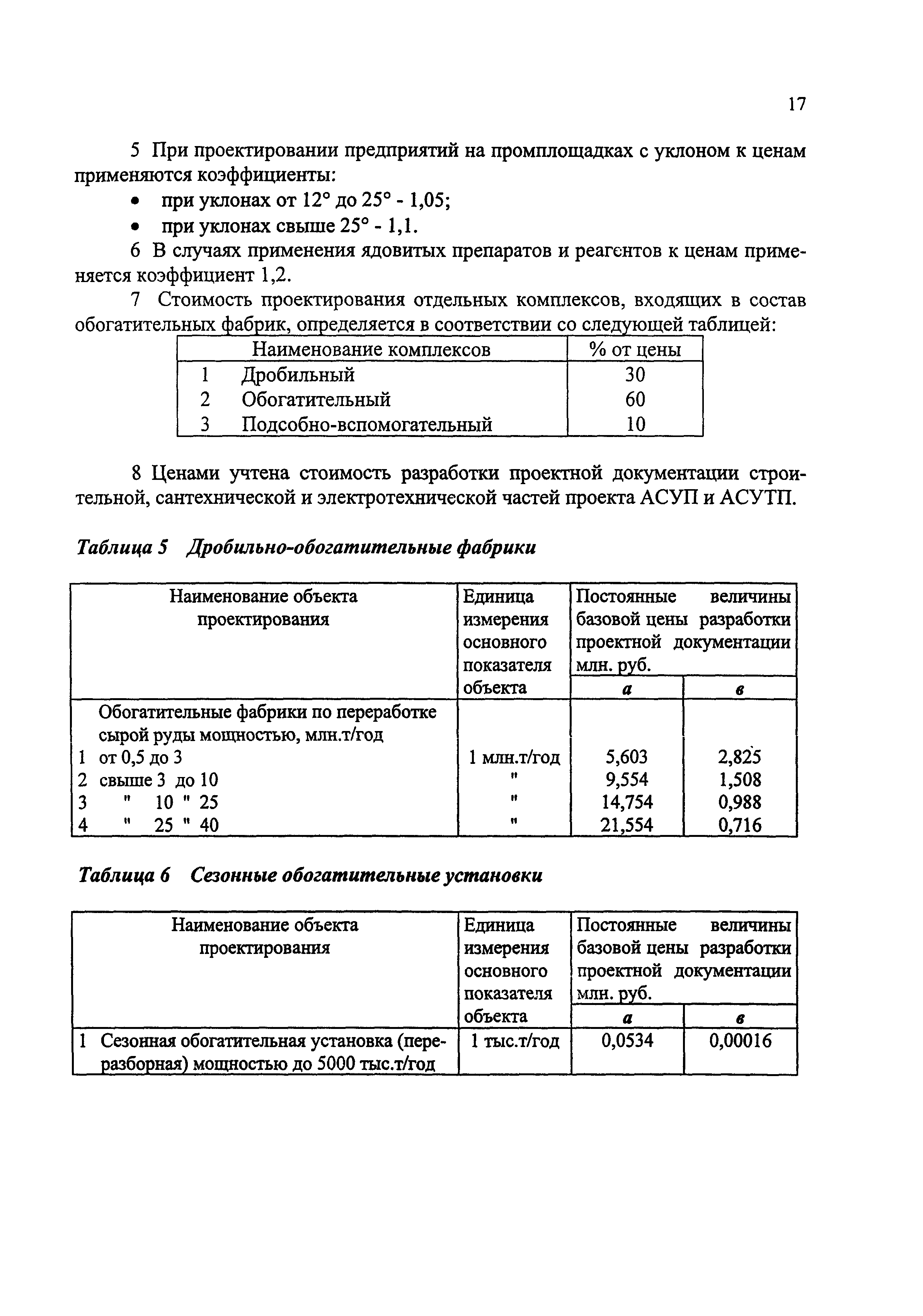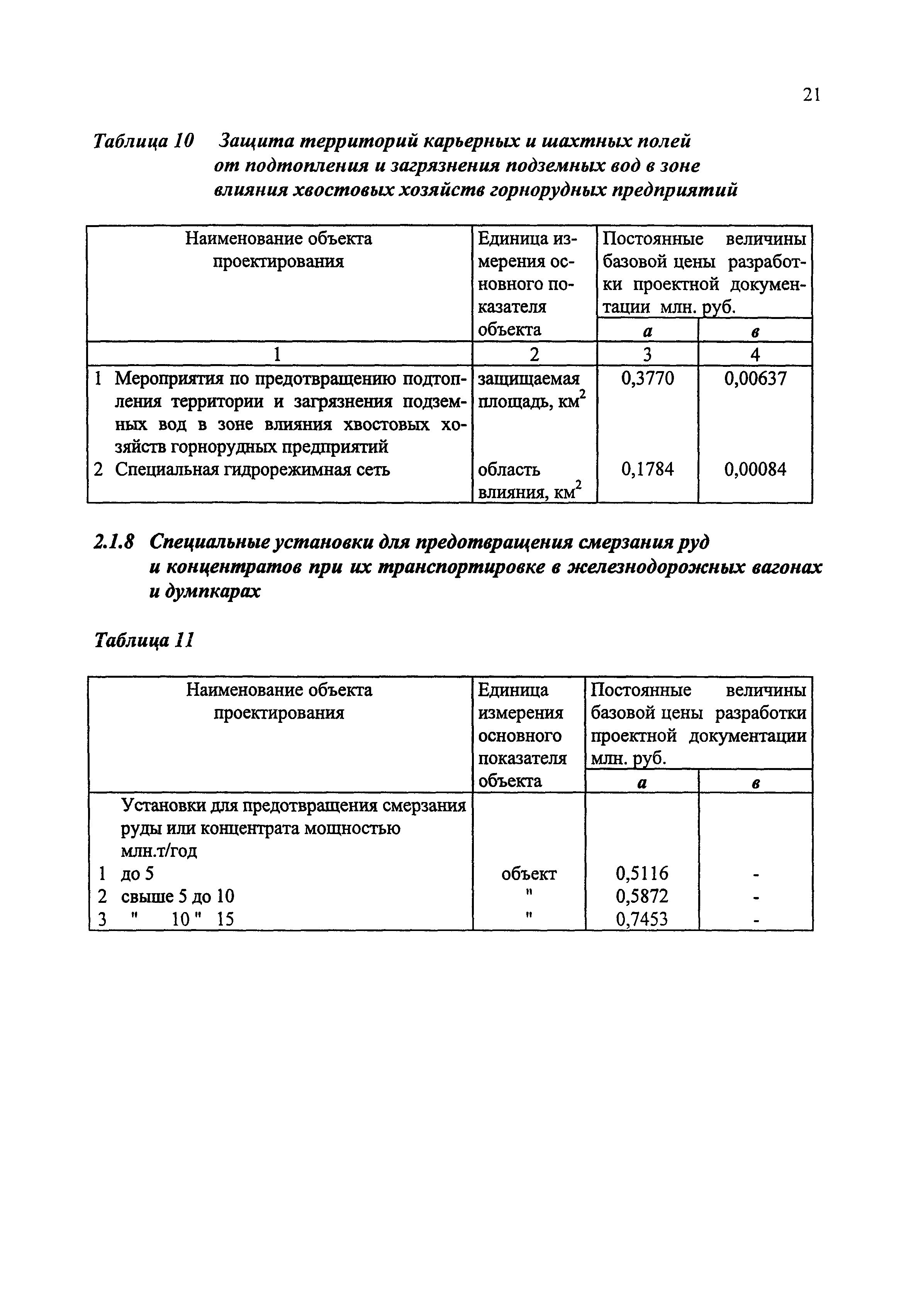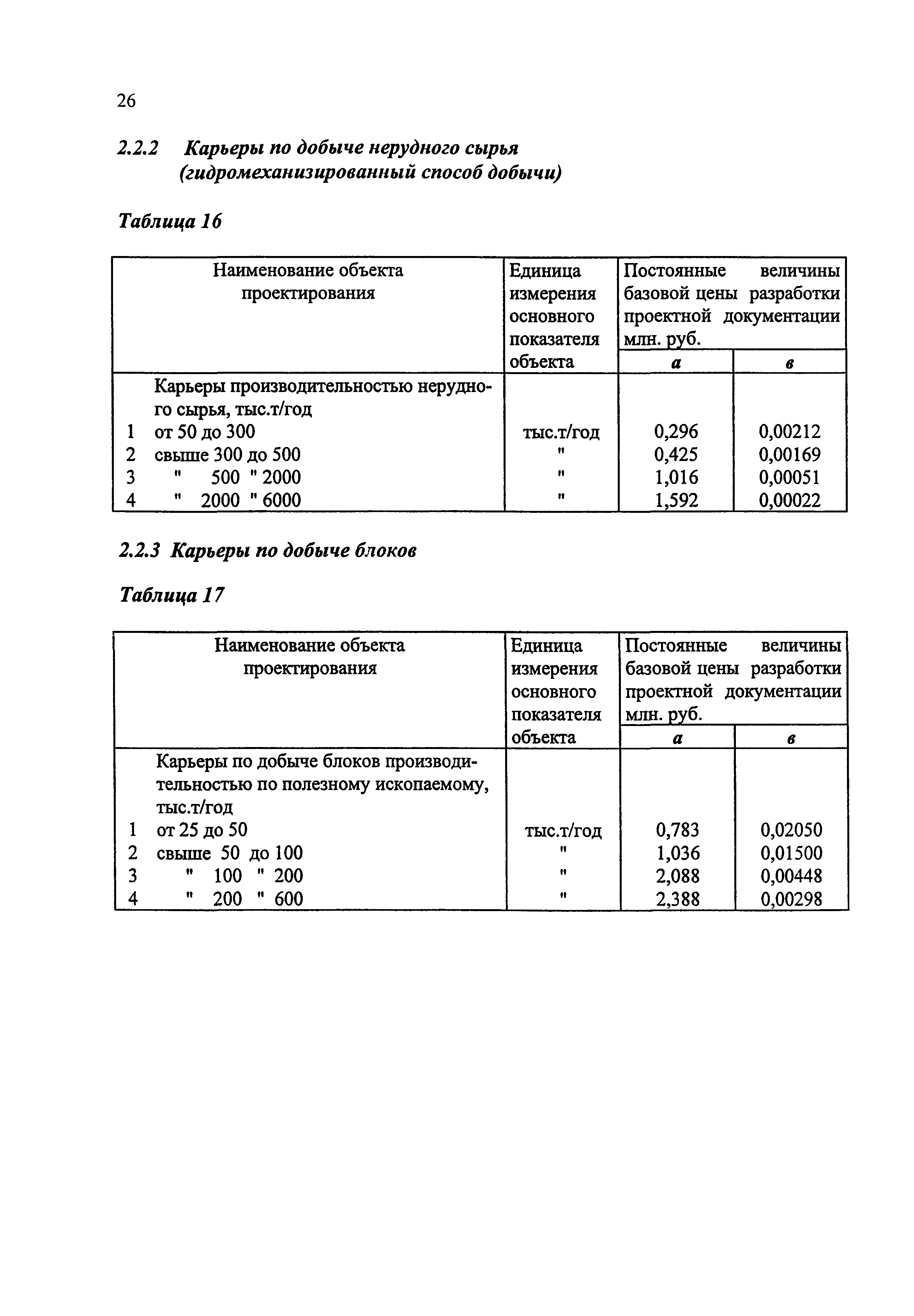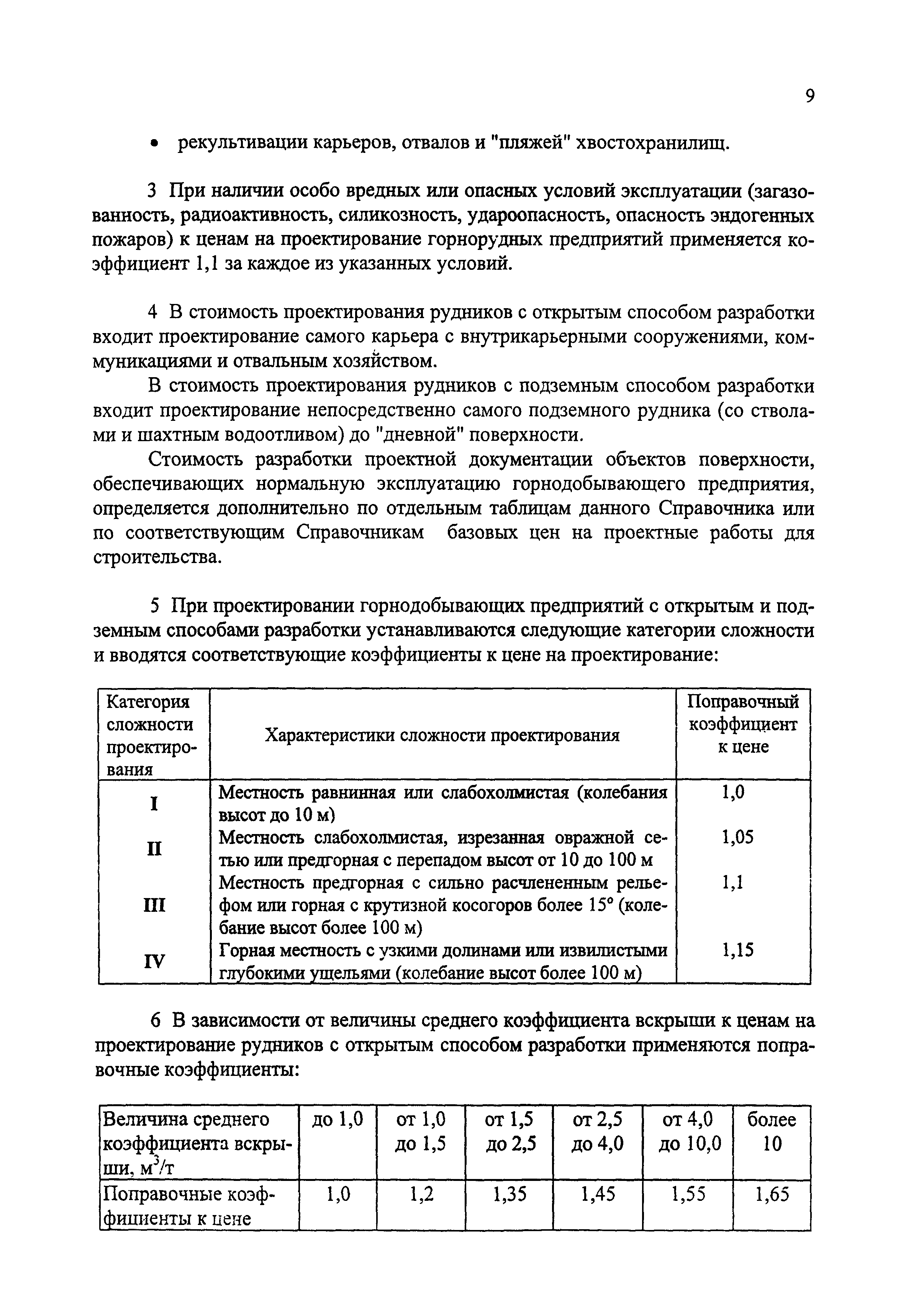 | Оглавление: | 1 Основные положения 2 Базовые цены на разработку проектной документации Глава 2.1 Горнорудные предприятия черной и цветной металлургии, горнохимического, асбестового, огнеупорного и флюсового сырья Глава 2.2 Предприятия нерудных и неметаллорудных строительных материалов 3 Таблицы относительной стоимости разработки проектной документации (в процентах от цены) |