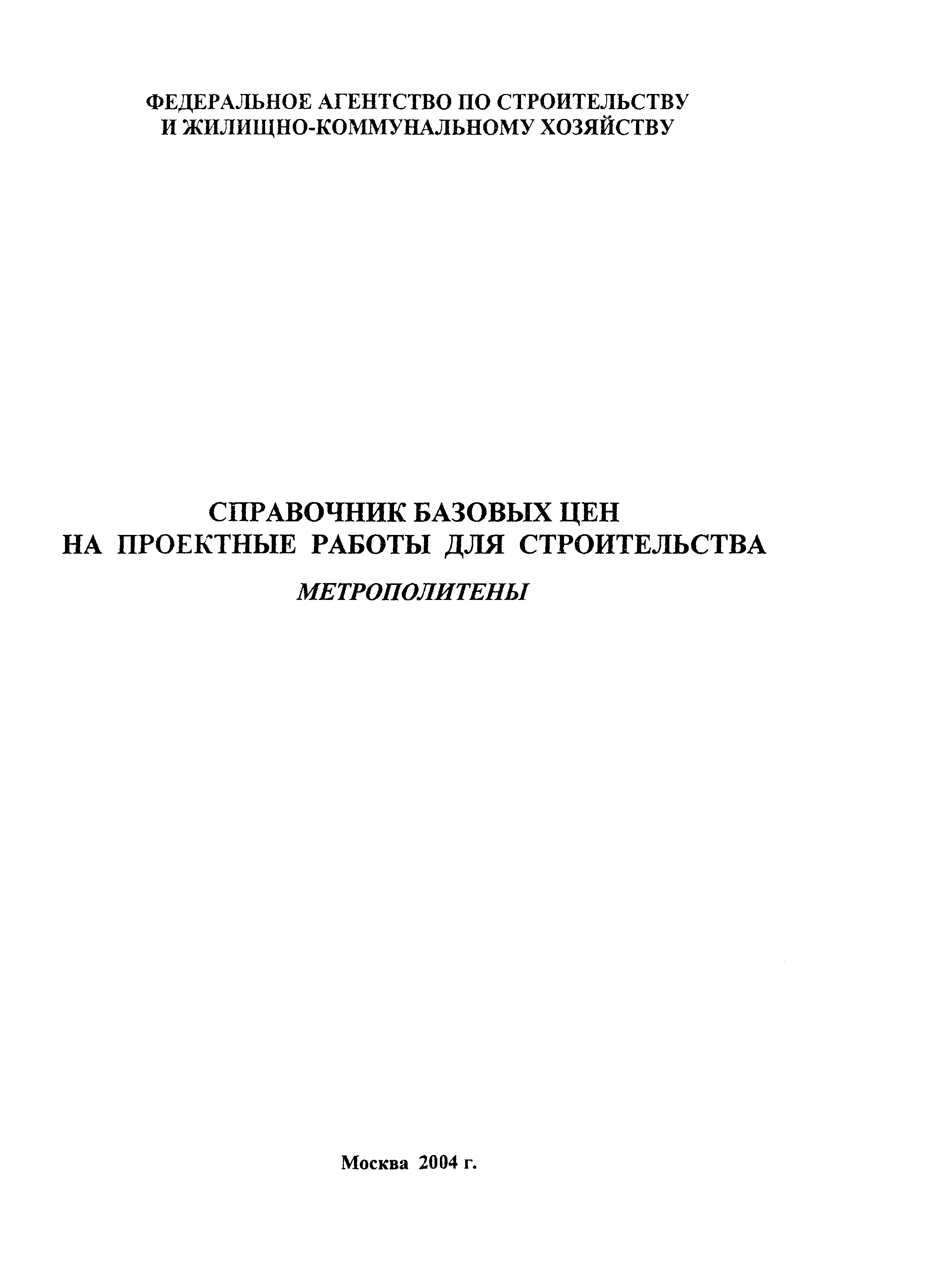 | Название рус.: | Метрополитены. Справочник базовых цен на проектные работы для строительства |