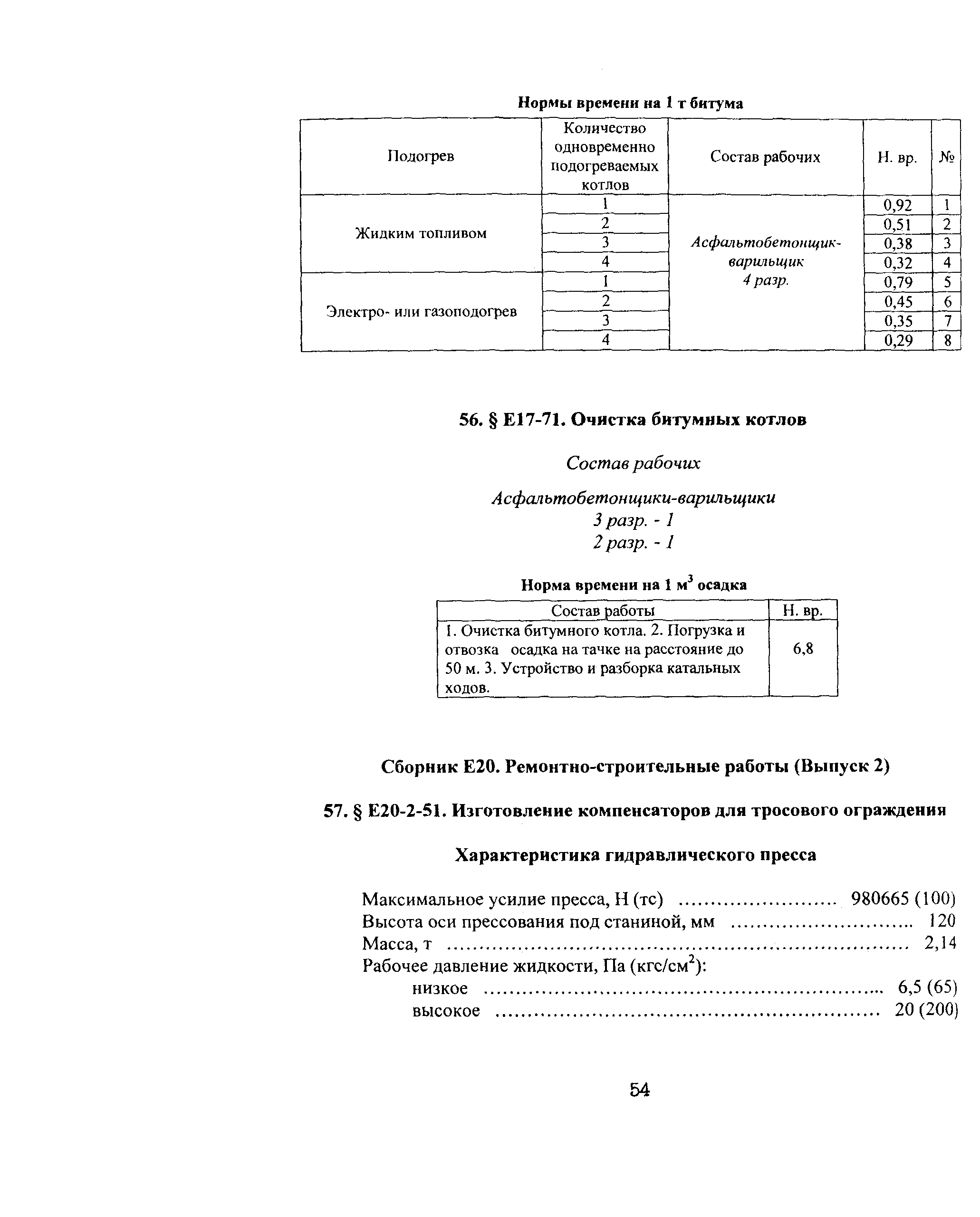 | Оглавление: | Вводная часть Сборник Е 4. Монтаж сборных и устройство монолитных железобетонных конструкций (выпуск 3) Сборник Е 17. Строительство автомобильных дорог Сборник Е 20. Ремонтно-строительные работы (выпуск 2) Сборник Е 40. Изготовление строительных конструкций и деталей (выпуск 3) Сборник В 4. Специальные работы в транспортном строительстве (выпуск 3) Сборник В 13. Строительство речных гидротехнических сооружений и подводных переходов (выпуск 1) Сборник ТЕ 20-2. Ремонтно-строительные работы (выпуск 1) Сборник ТЕ 20-2. Ремонтно-строительные работы (выпуск 4) Сборник ТЕ 20-2. Ремонтно-строительные работы (выпуск 5) Типовые нормы времени на строительные, монтажные и ремонтно-строительные работы (выпуск I-XV) Типовые нормы времени на нанесение дорожной разметки |