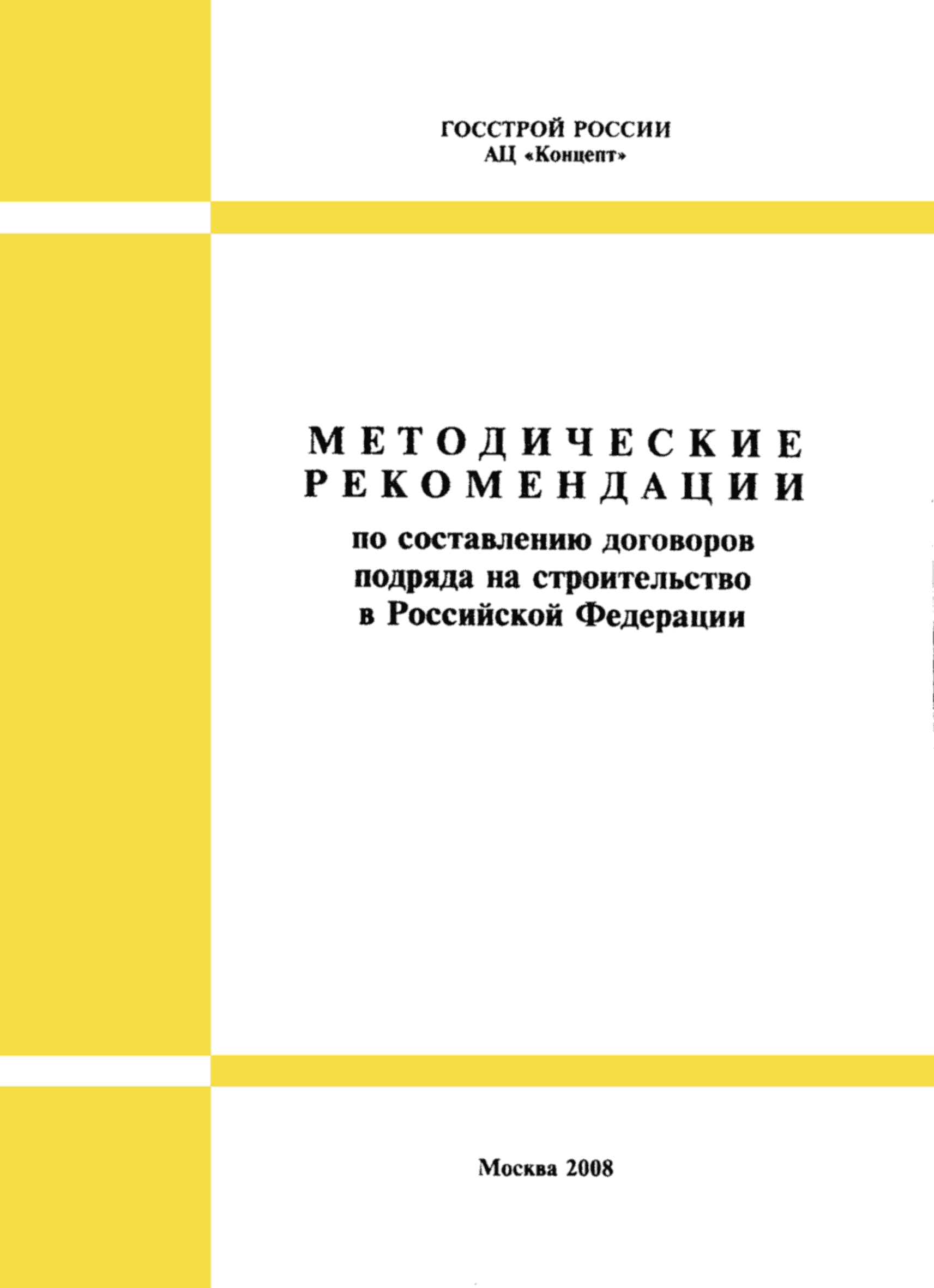 | Область применения: | Рекомендациями необходимо руководствоваться при заключении договоров подряда на строительство объектов за счет всех источников финансирования. |
