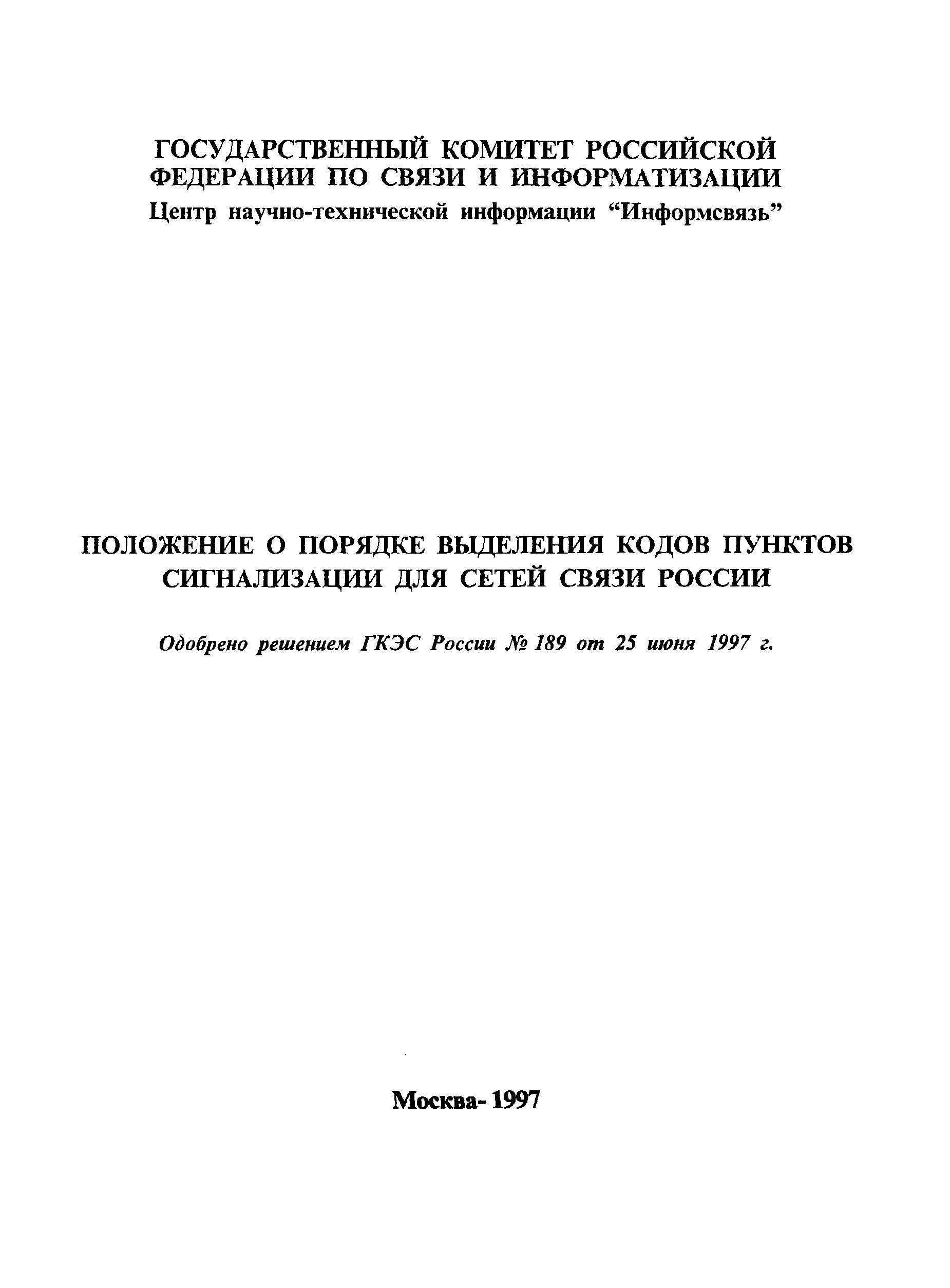 | Утверждён: | 25.06.1997 ГКЭС России (189)