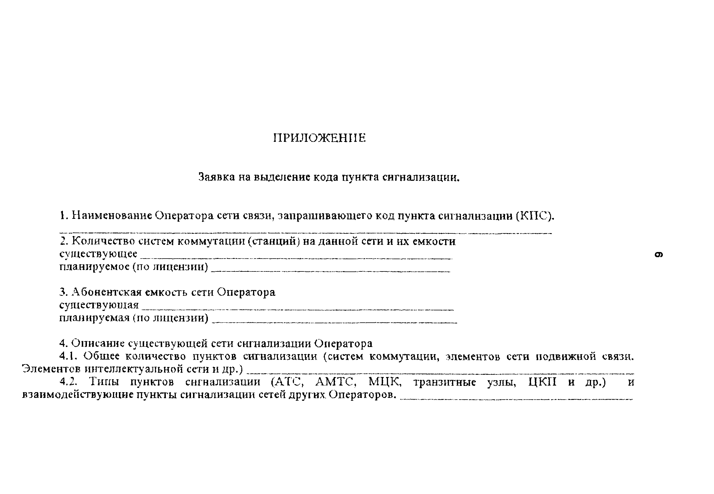 | Оглавление: | 1 Общие положения 2 Принципы и критерии распределения кодов пунктов сигнализации 3 Порядок выделения и получения кодов пунктов сигнализации 4 Координация и контроль 5 Изъятие пункта сигнализации Приложение Закрепление зон ответственности институтов Гипросвя Приложение Заявка на выделение кода пункта сигнализации |