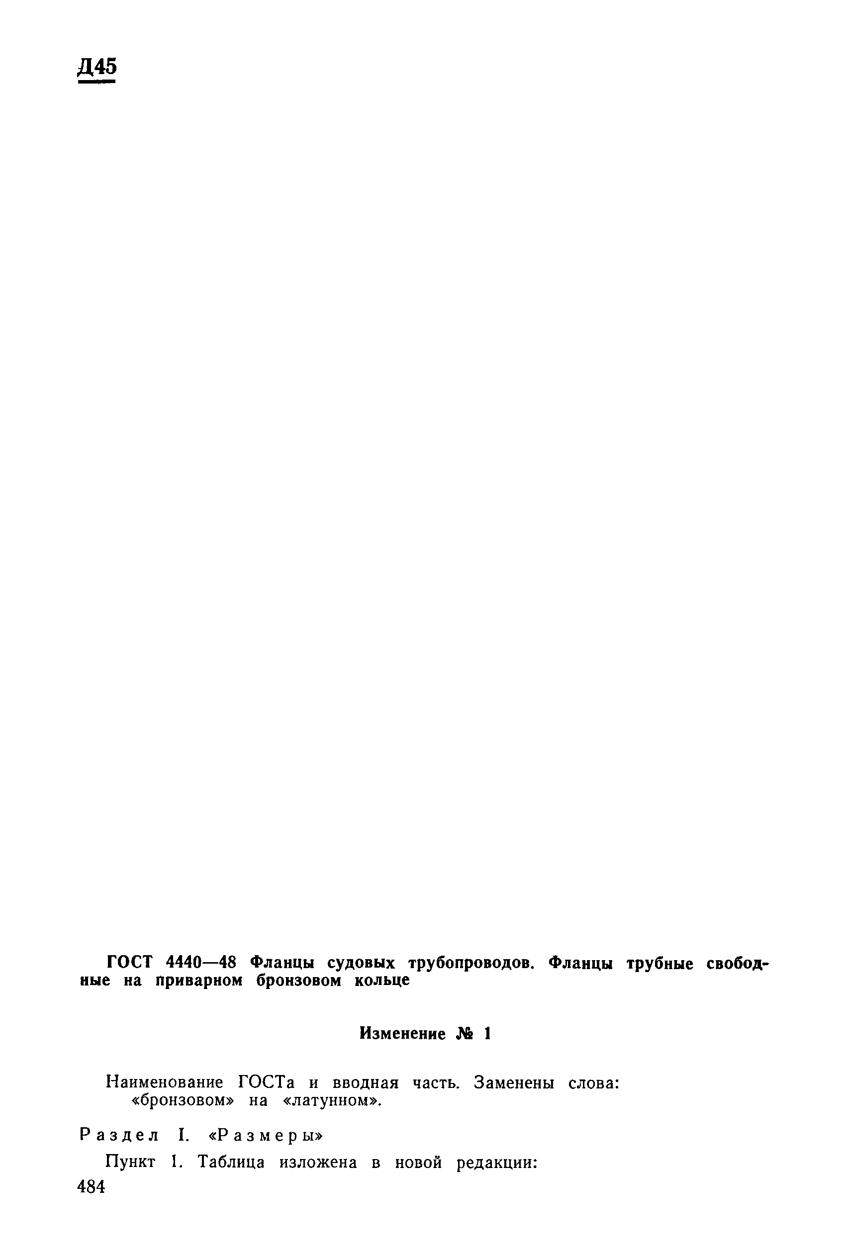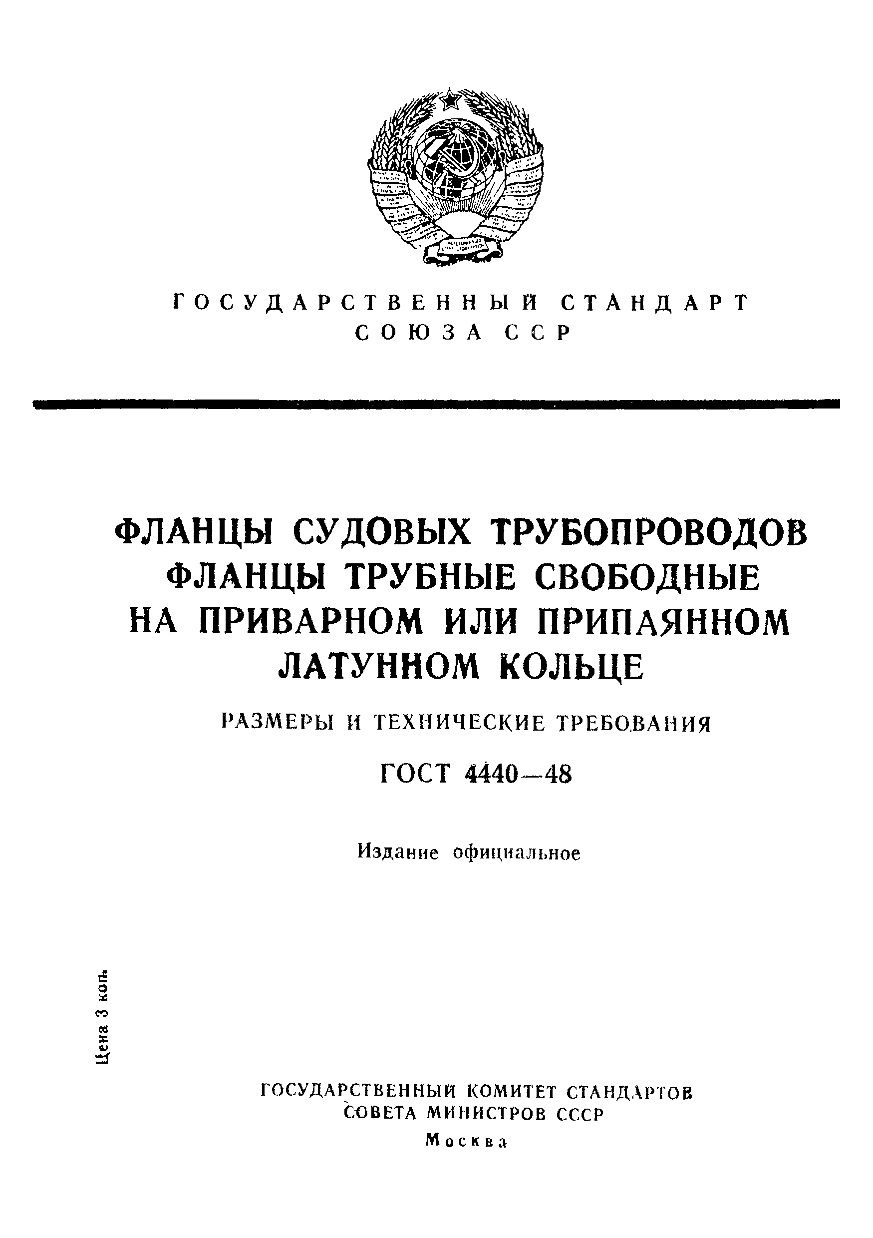 Скачать ГОСТ 4440-48 Фланцы судовых трубопроводов. Фланцы трубные свободные на приварном или припаянном латунном кольце. Размеры и технические требованияДата актуализации: 01.01.2021