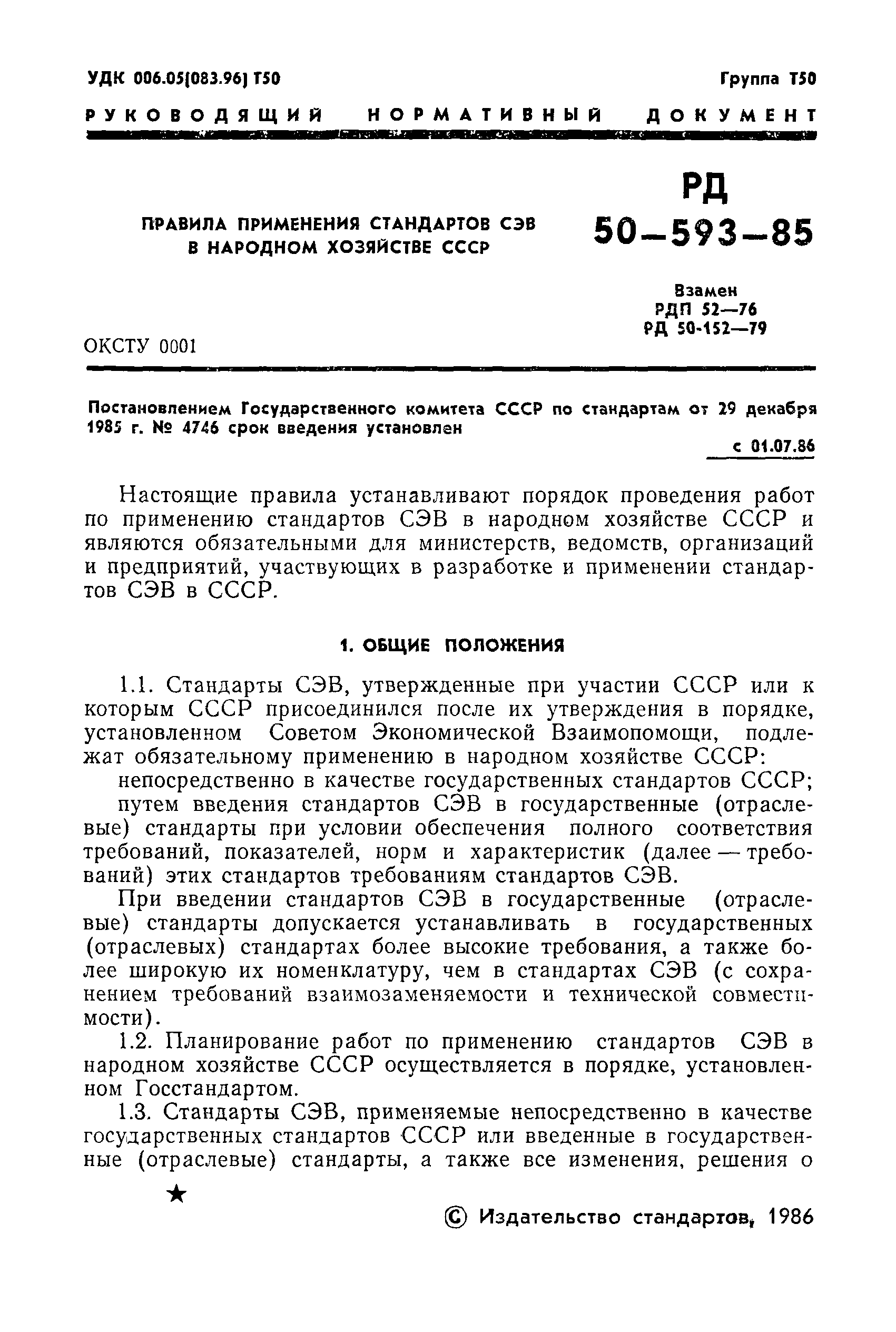 | Область применения: | Правила устанавливают порядок проведения работ по применению стандартов СЭВ в народном хозяйстве СССР и являются обязательными для министерств, ведомств, организаций и предприятий, участвующих в разработке и применении стандартов СЭВ в СССР. |