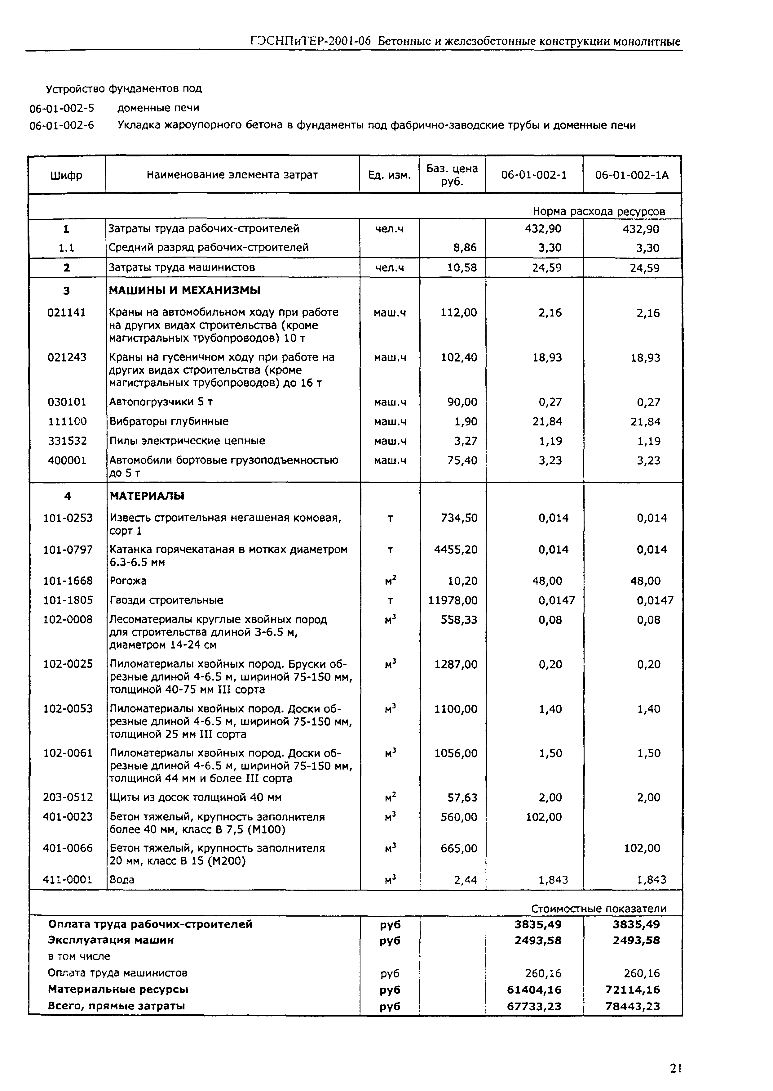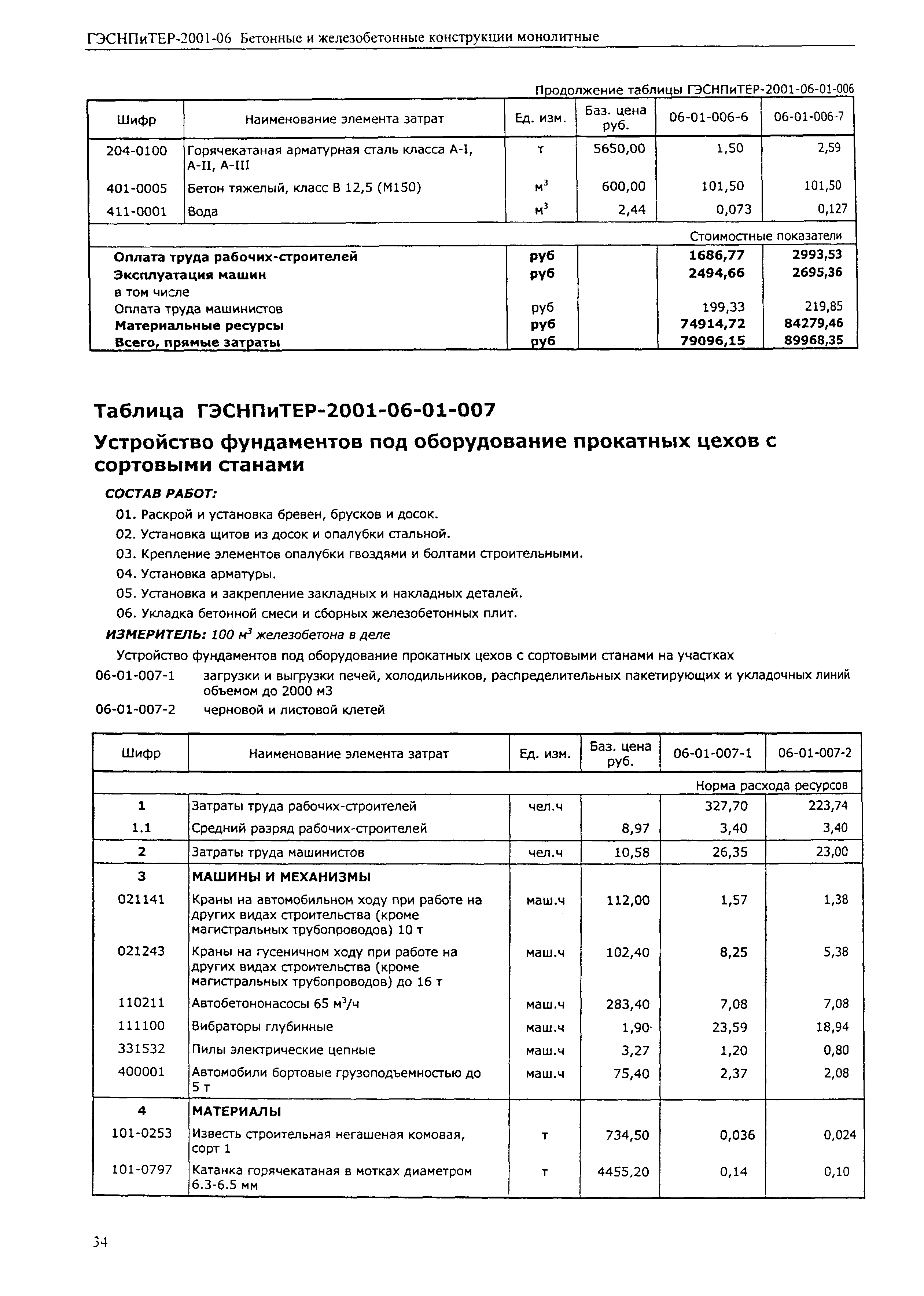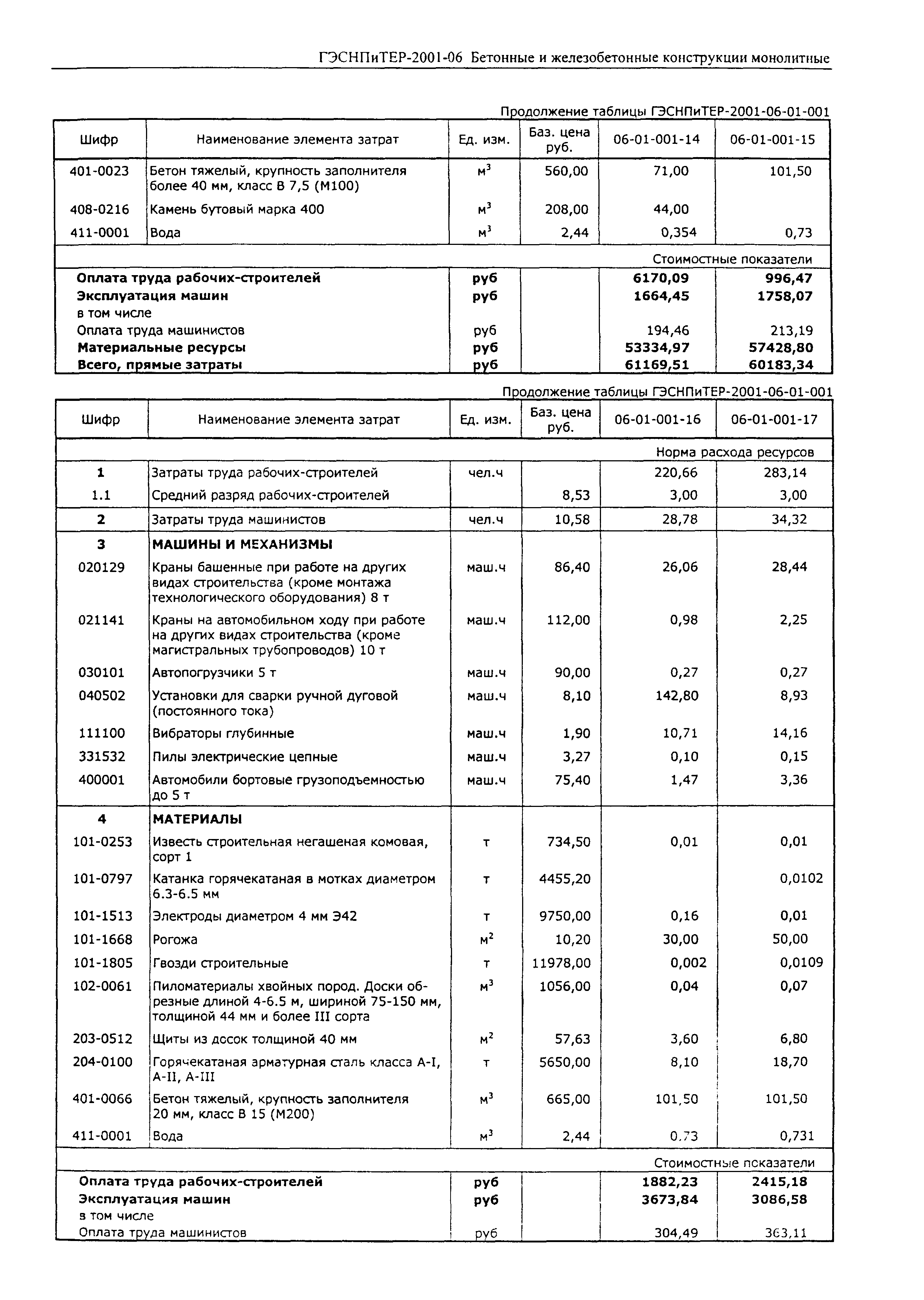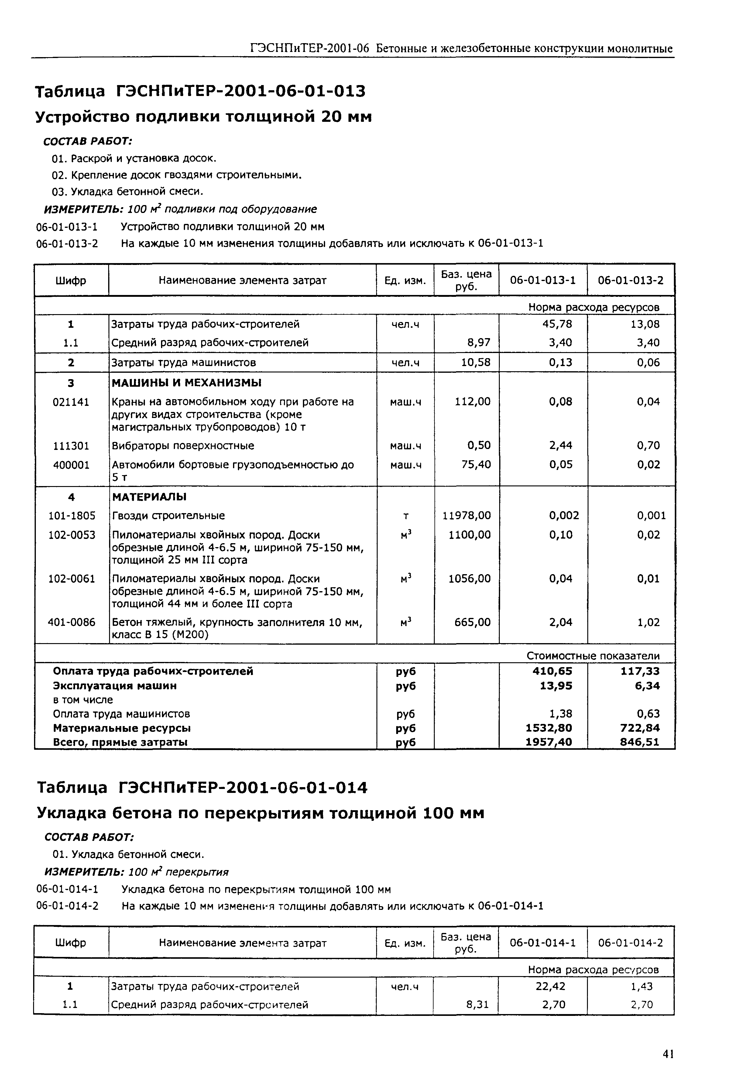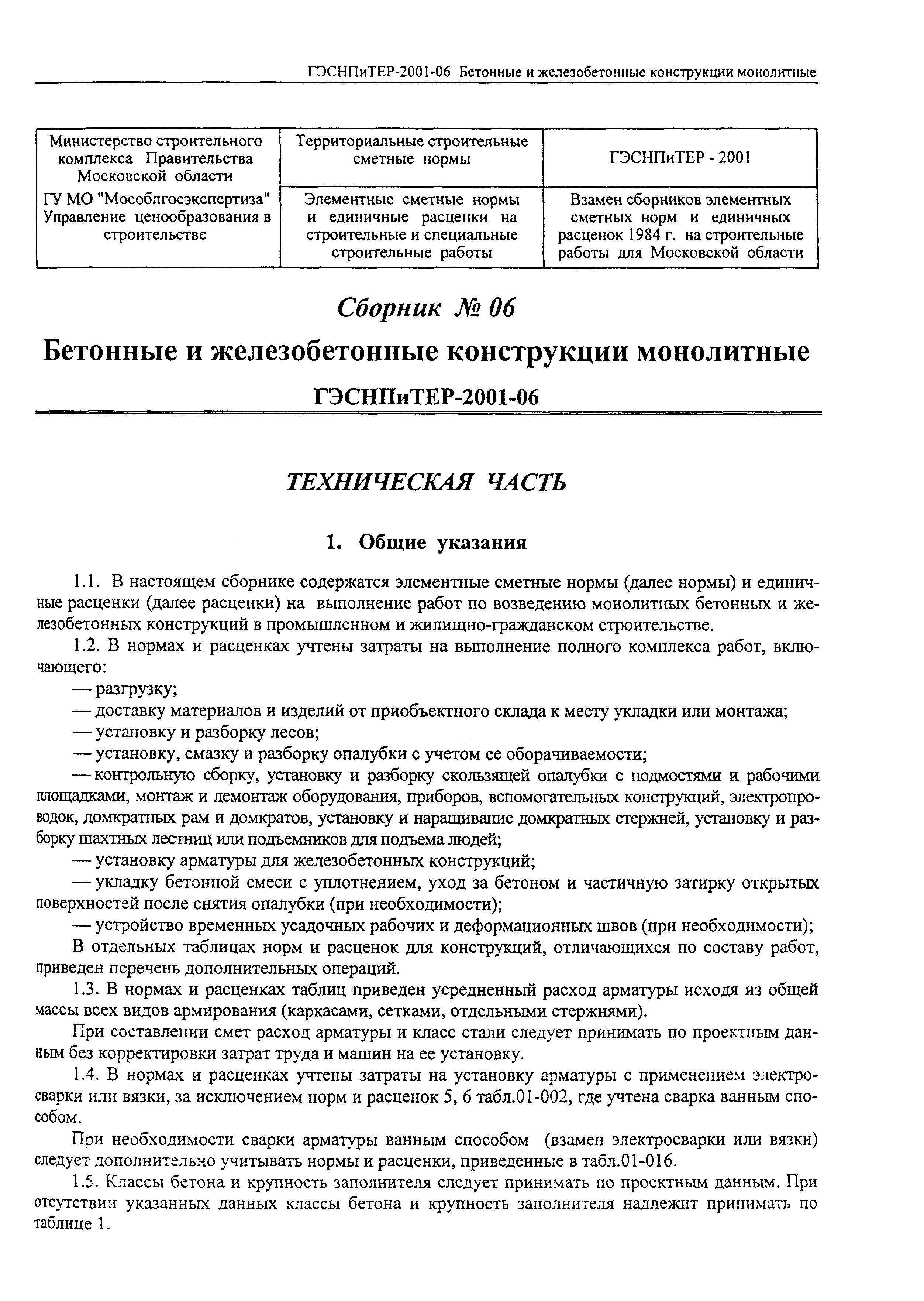 Скачать ГЭСНПиТЕР 2001-06 (I) Бетонные и железобетонные конструкции монолитные. Часть I. Территориальные единичные расценки, сметные нормы и цены на строительные и специальные строительные работы. Пособие для сметчиков к ТЕР 81-02-2001Дата актуализации: 01.01.2021