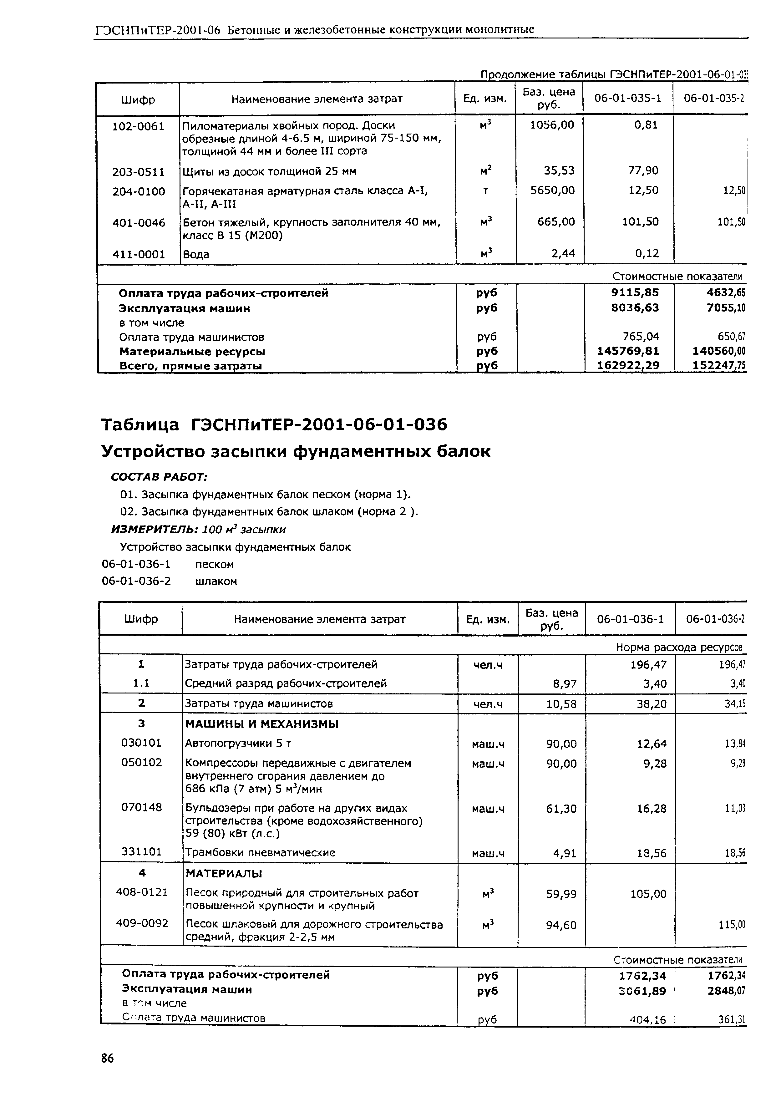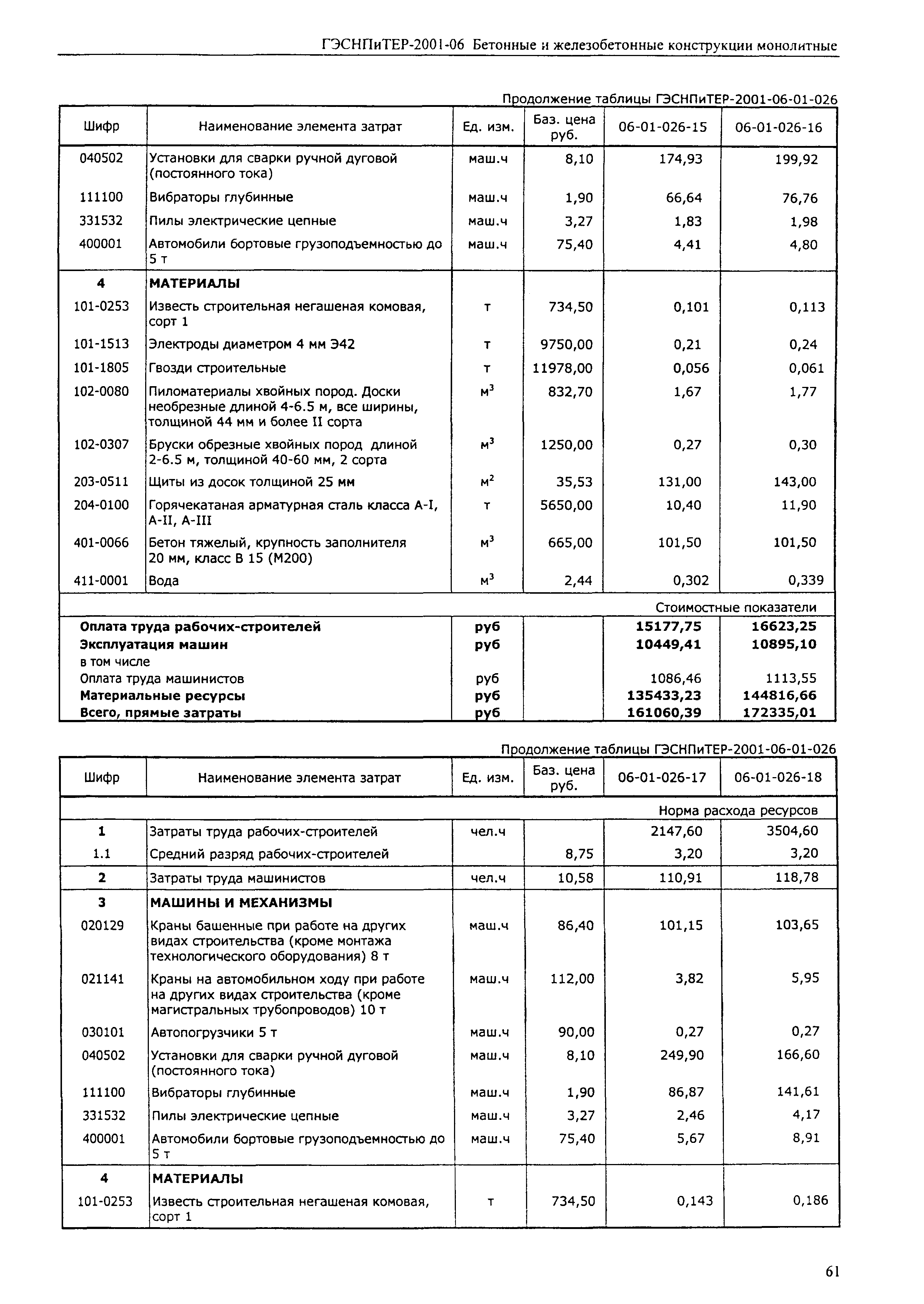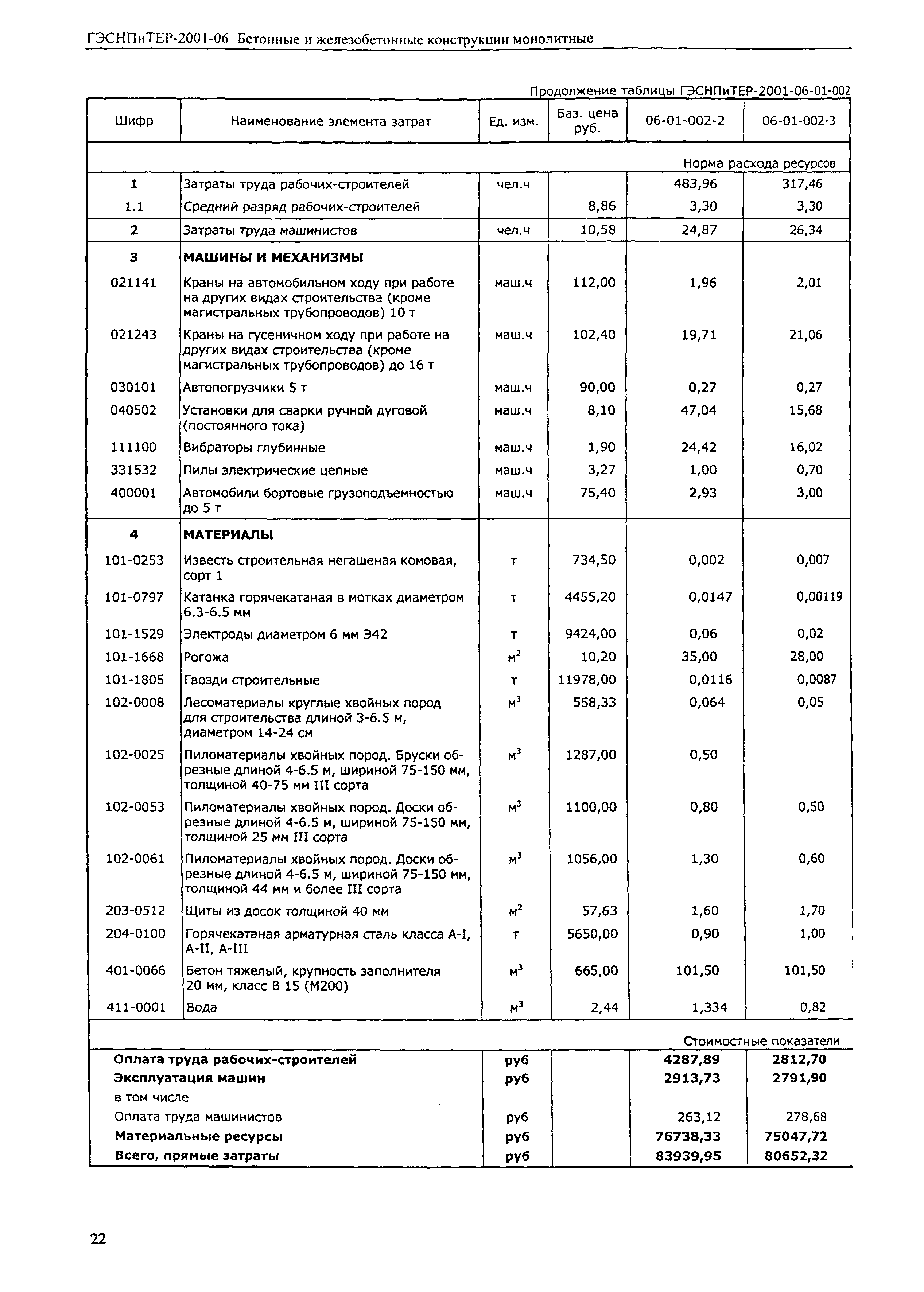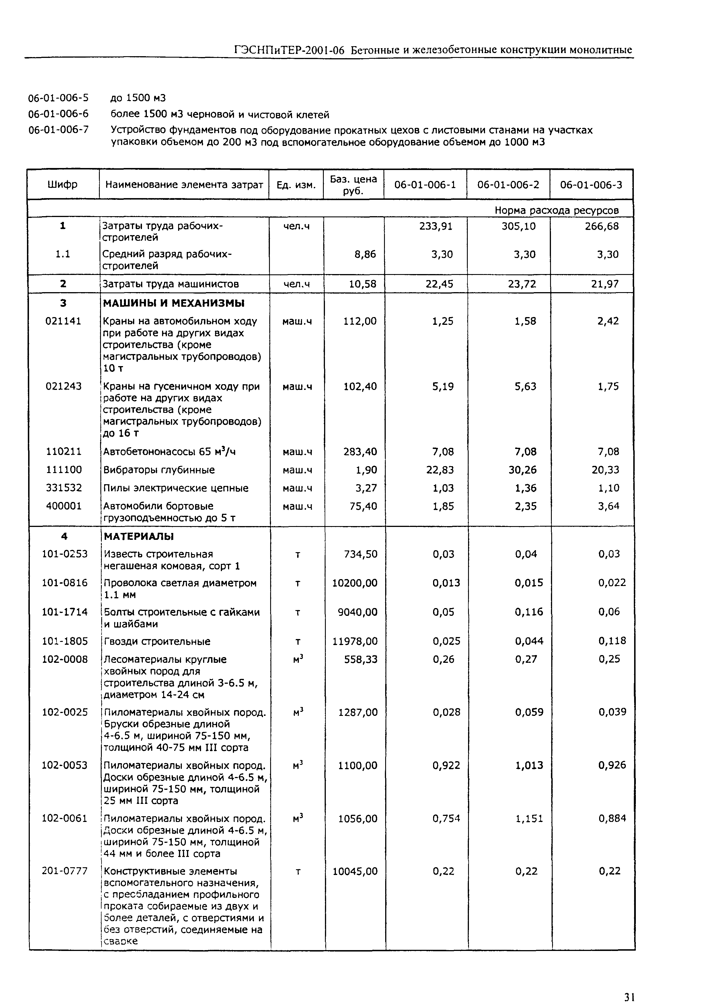Скачать ГЭСНПиТЕР 2001-06 (I) Бетонные и железобетонные конструкции монолитные. Часть I. Территориальные единичные расценки, сметные нормы и цены на строительные и специальные строительные работы. Пособие для сметчиков к ТЕР 81-02-2001Дата актуализации: 01.01.2021