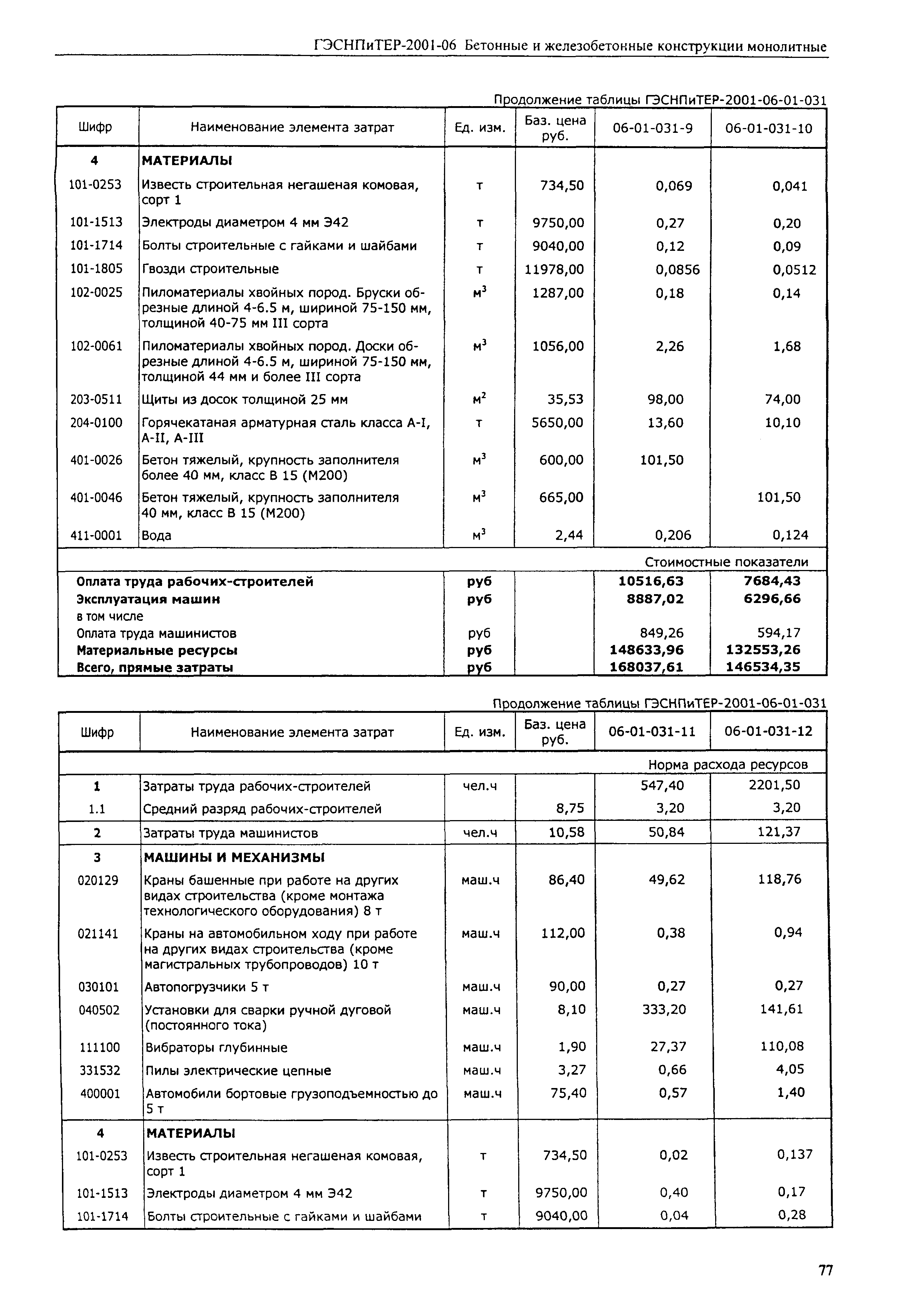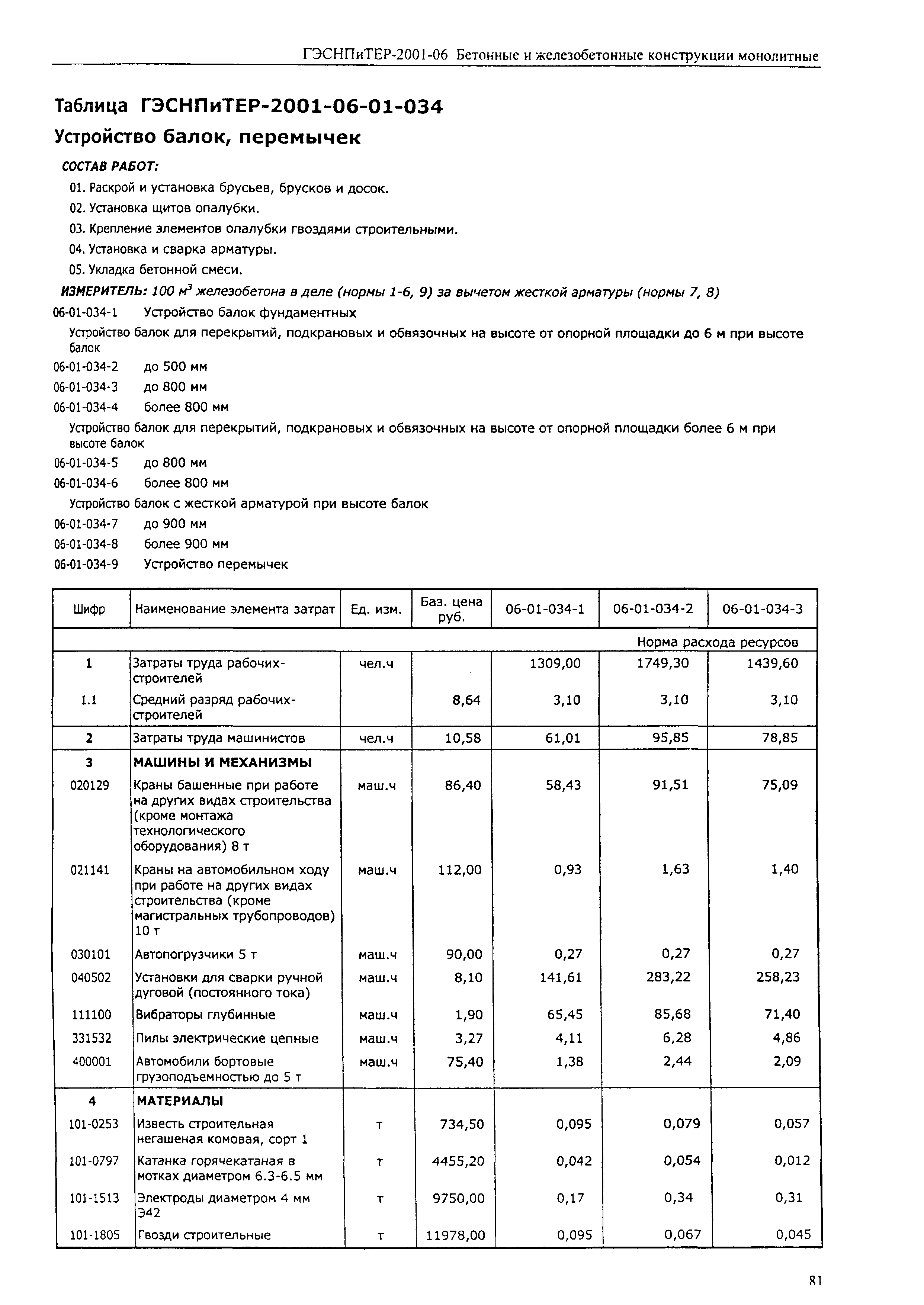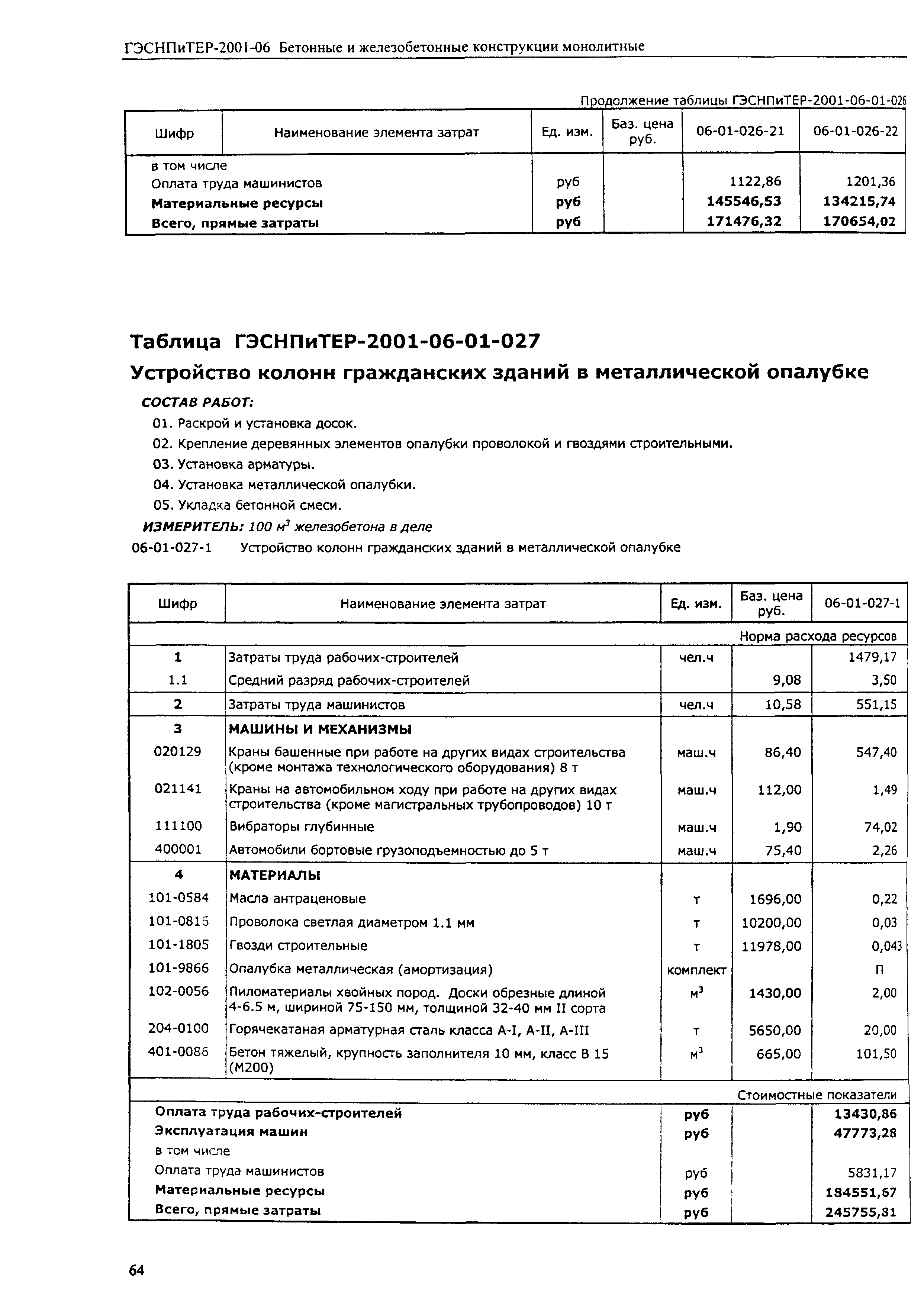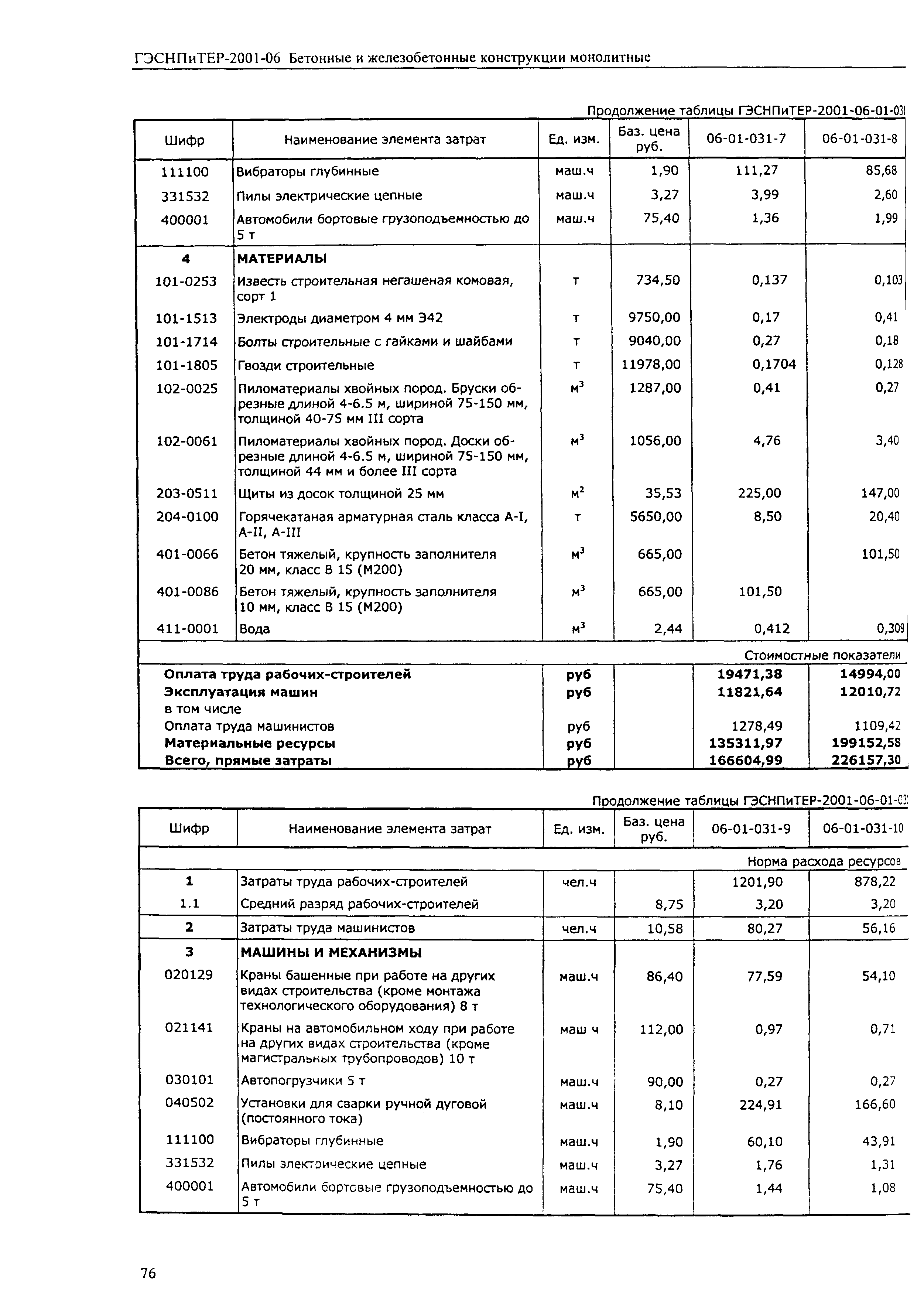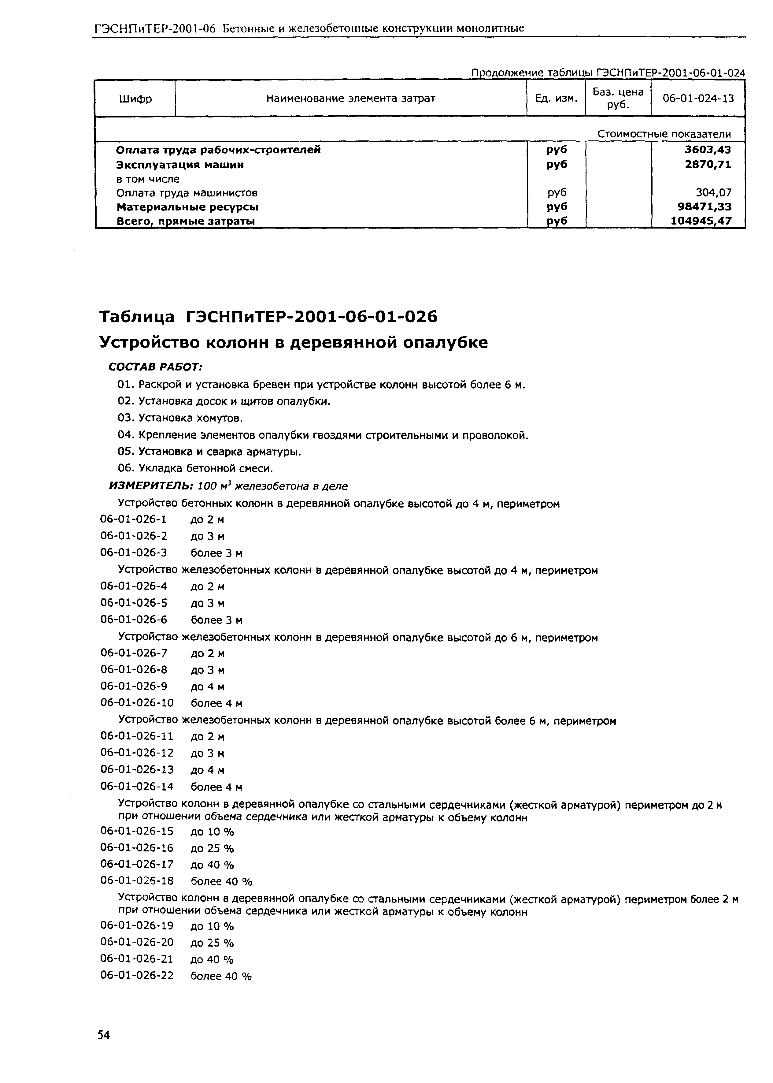 Скачать ГЭСНПиТЕР 2001-06 (I) Бетонные и железобетонные конструкции монолитные. Часть I. Территориальные единичные расценки, сметные нормы и цены на строительные и специальные строительные работы. Пособие для сметчиков к ТЕР 81-02-2001Дата актуализации: 01.01.2021