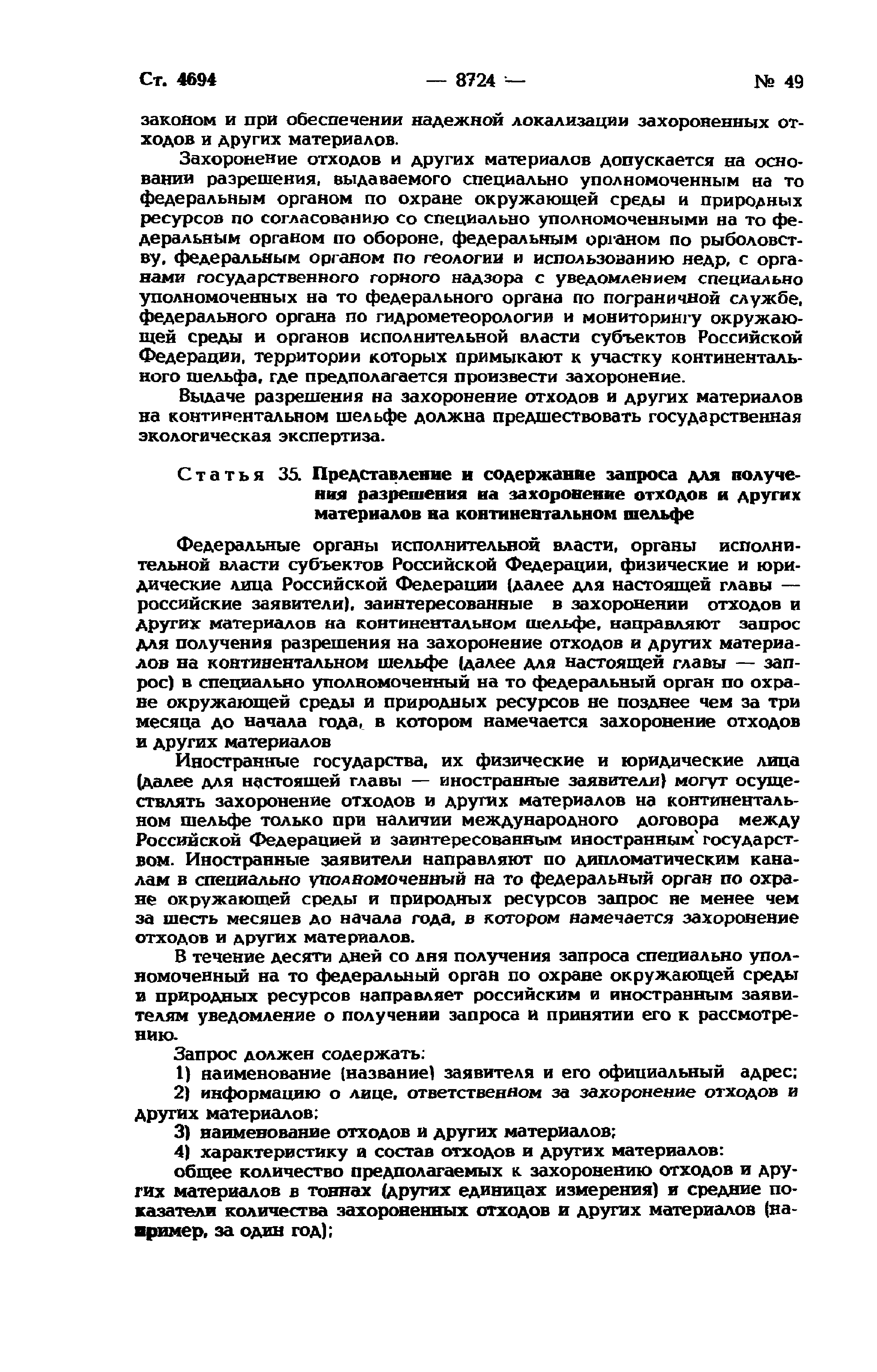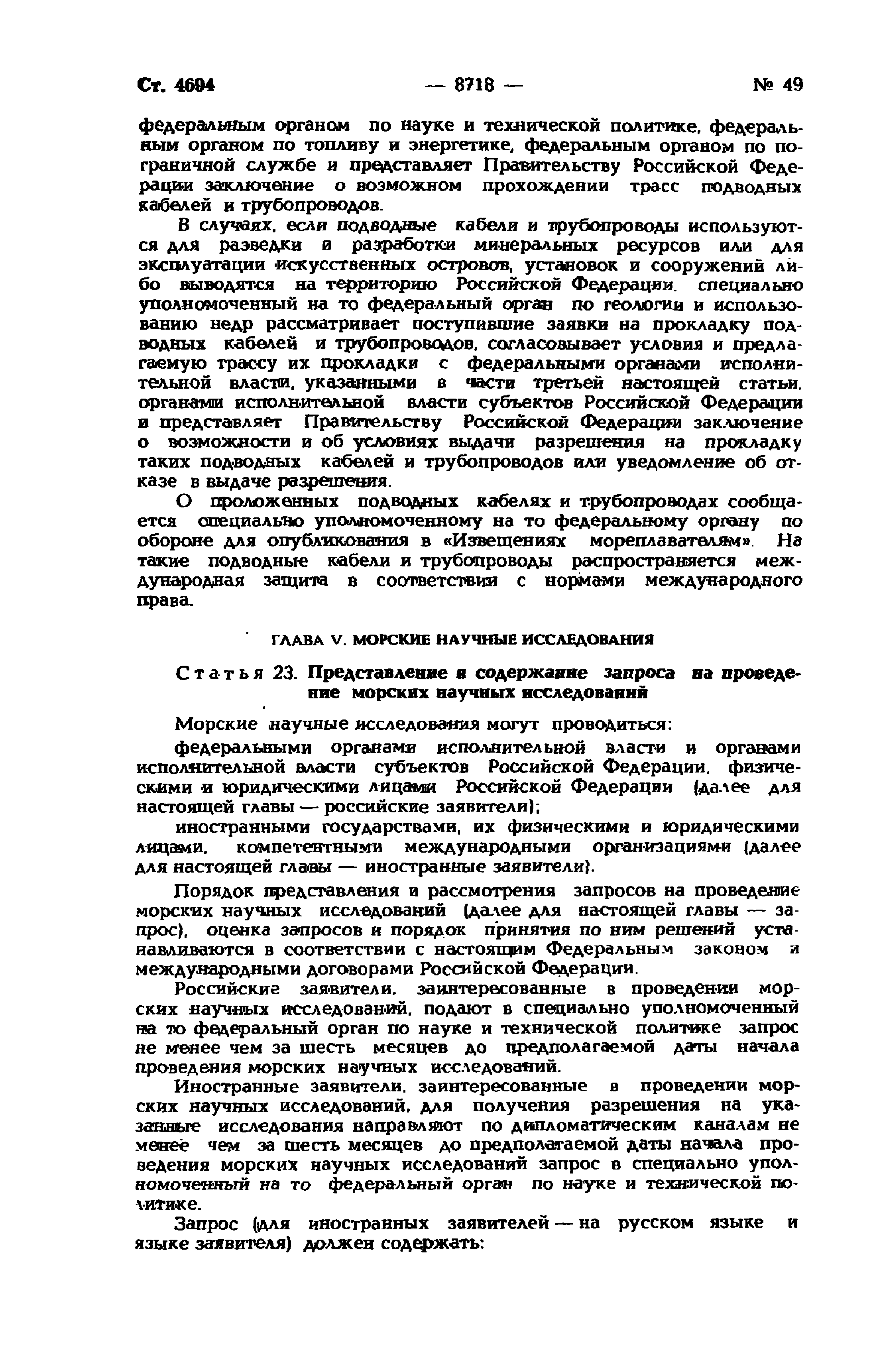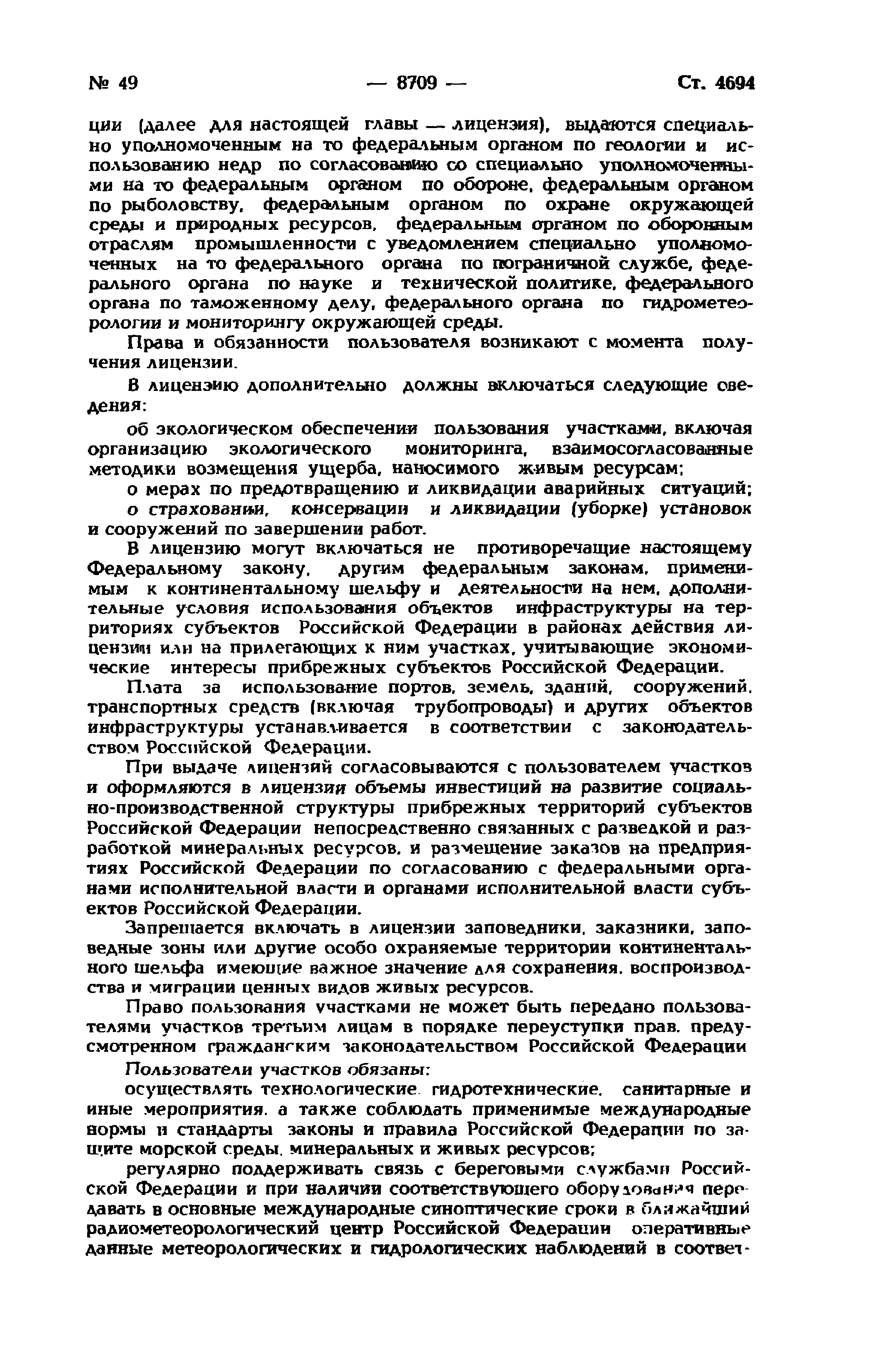 | Оглавление: | Глава I. Общие положения Глава II. Разведка континентального шельфа и разработка его минеральных ресурсов Глава III. Особенности рыболовства на континентальном шельфе Глава IV. Создание, эксплуатация, использование искусственных островов, установок, сооружений, прокладка подводных кабелей и трубопроводов на континентальном шельфе, особенности проведения указанных работ, а также буровых работ Глава V. Морские научные исследования Глава VI. Защита и сохранение морской среды, природных ресурсов континентального шельфа, захоронение отходов и других материалов Глава VII. Особенности экономических отношений при пользовании континентальным шельфом Глава VIII. Обеспечение выполнения положений настоящего Федерального закона |