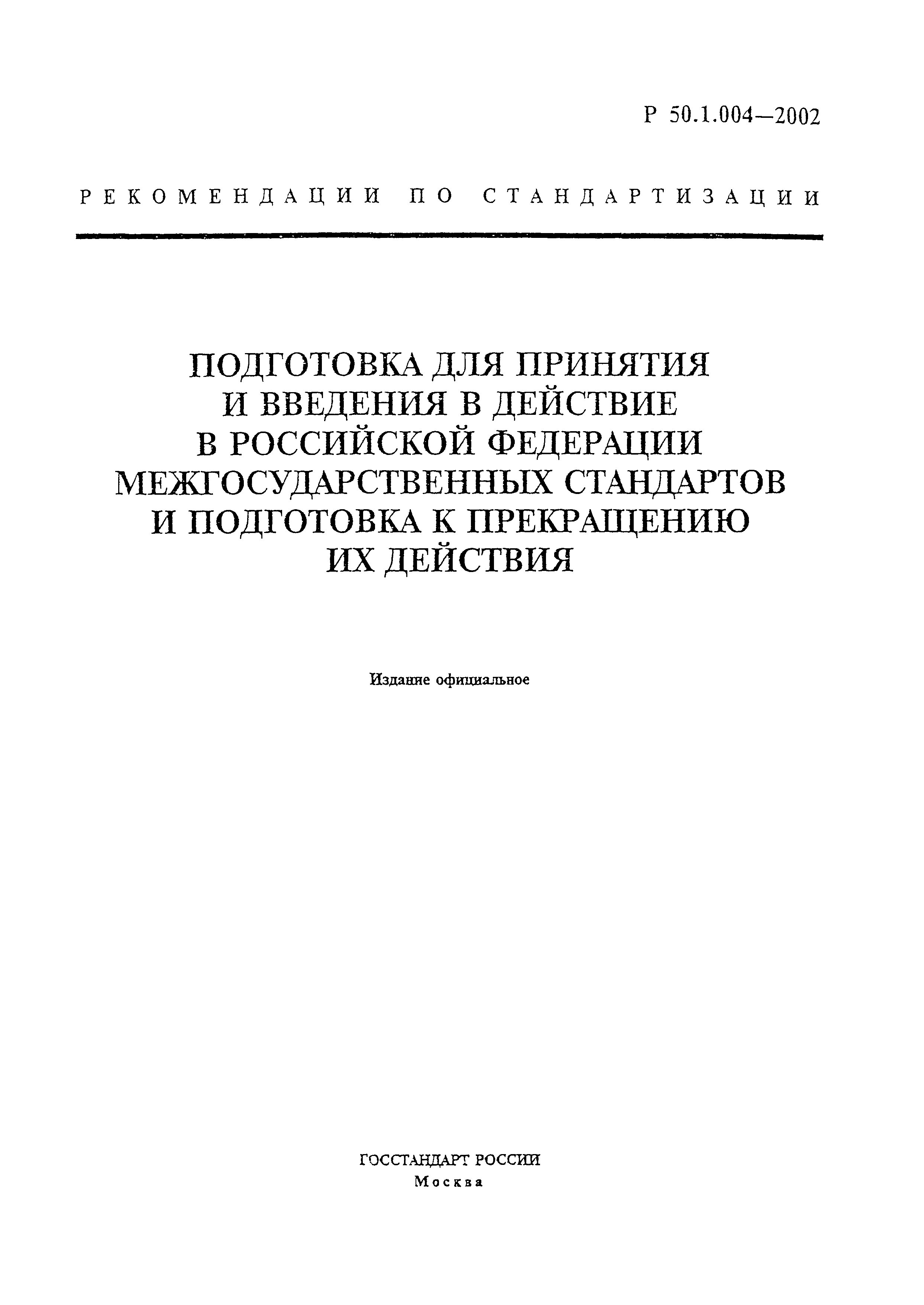 Скачать Р 50.1.004-2002 Подготовка для принятия и введения в действие в Российской Федерации межгосударственных стандартов и подготовка к прекращению их действияДата актуализации: 01.01.2021