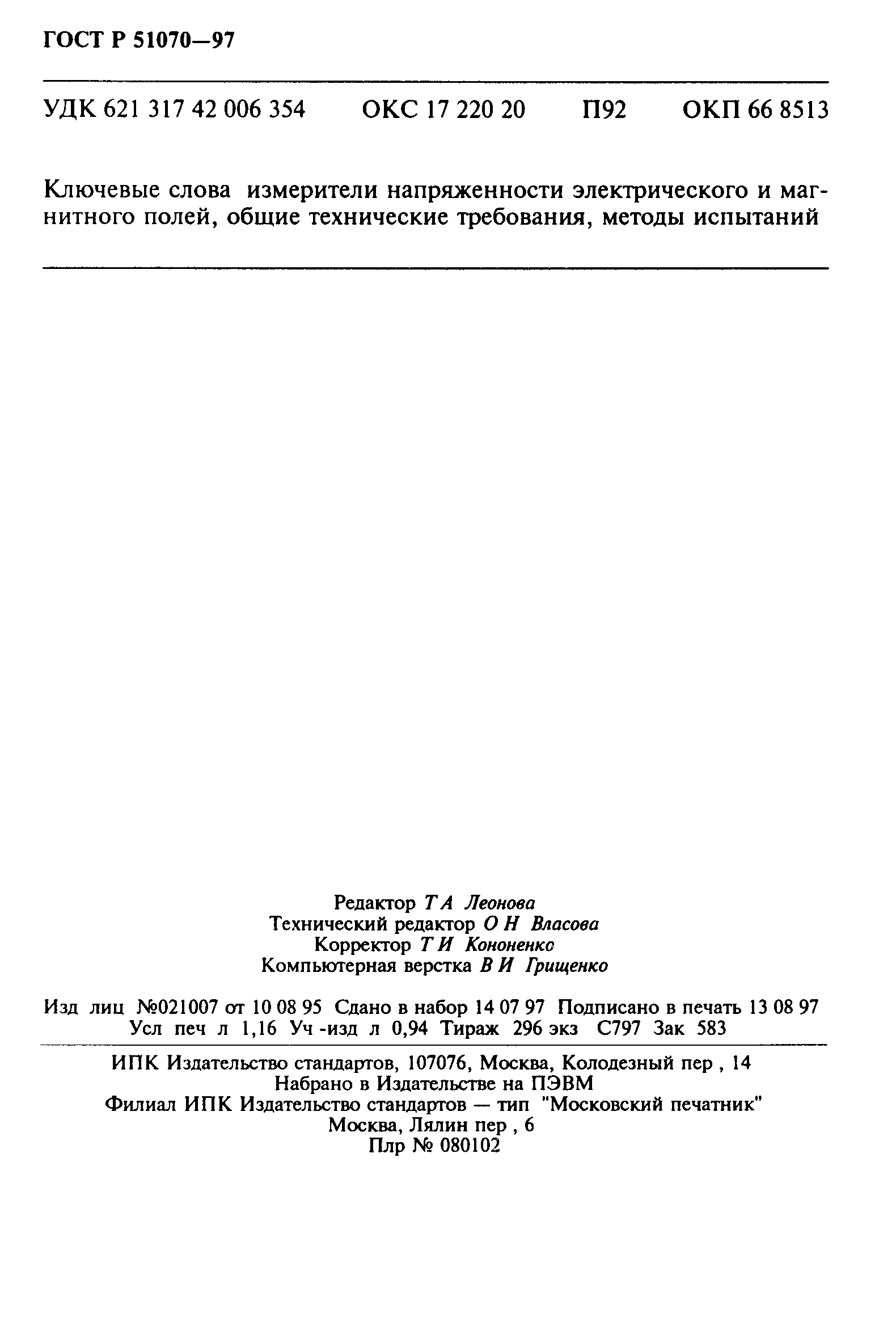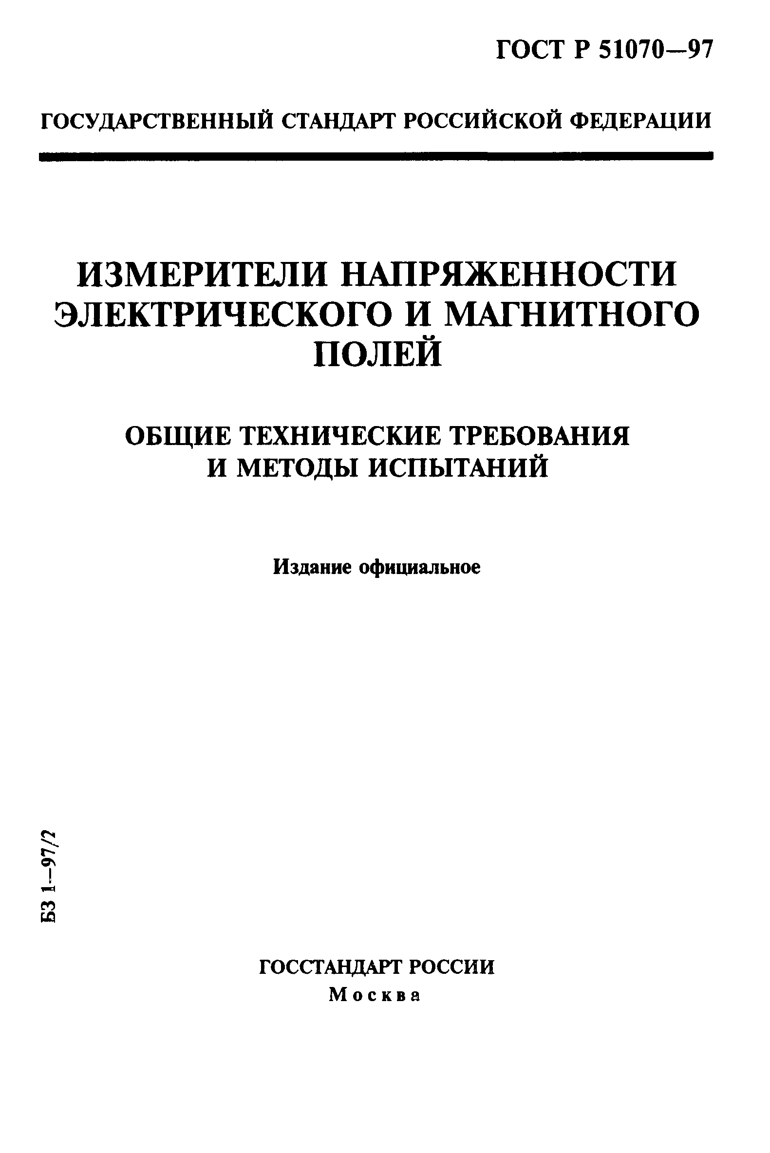 Скачать ГОСТ Р 51070-97 Измерители напряженности электрического и магнитного полей. Общие технические требования и методы испытанийДата актуализации: 01.01.2021