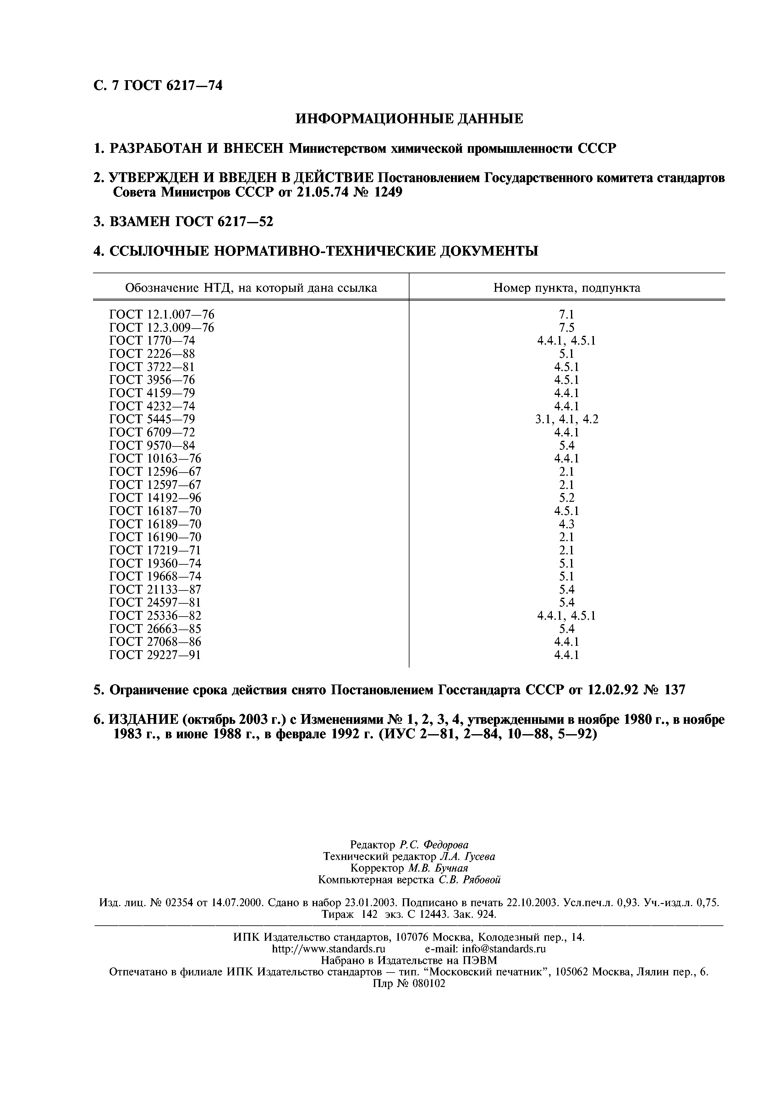 | Оглавление: | 1 Марки 2 Технические требования 3 Правила приемки 4 Методы анализа 5 Упаковка, маркировка, транспортирование и хранение 6 Гарантии изготовителя 7 Требования безопасности |