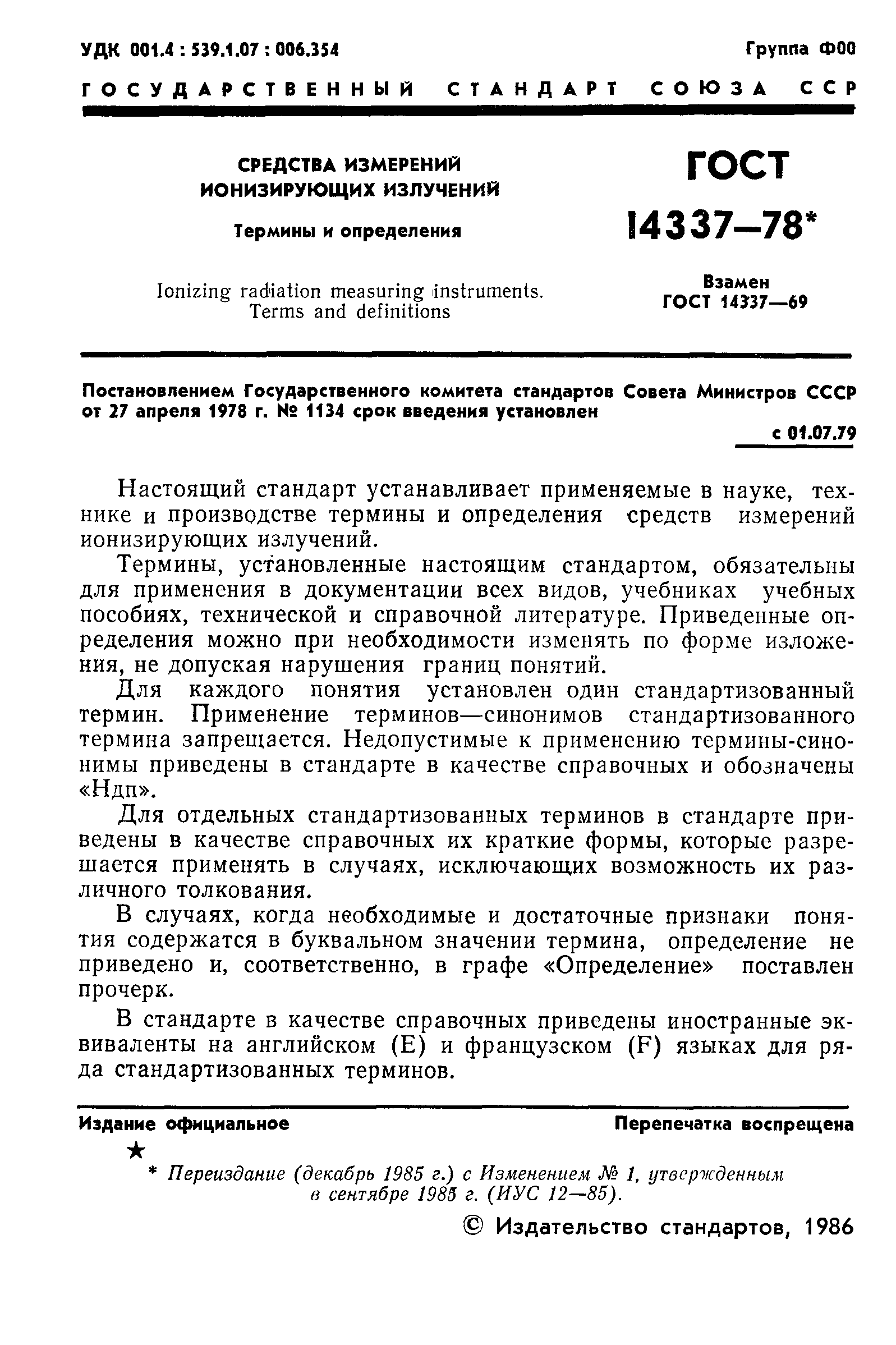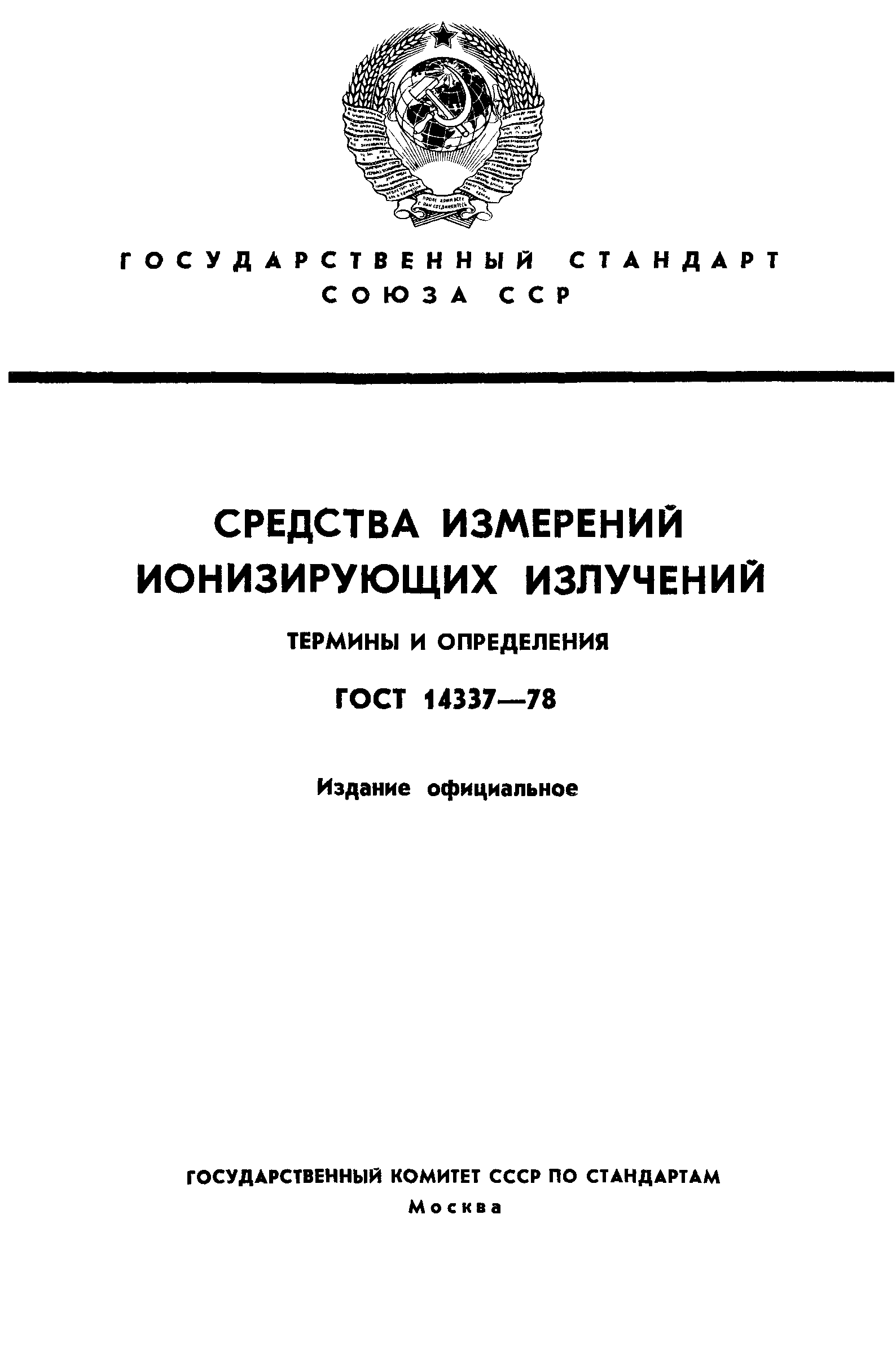 | Заменяет собой: | ГОСТ 14337-69 «Приборы для измерения ионизирующих излучений. Термины и определения» |