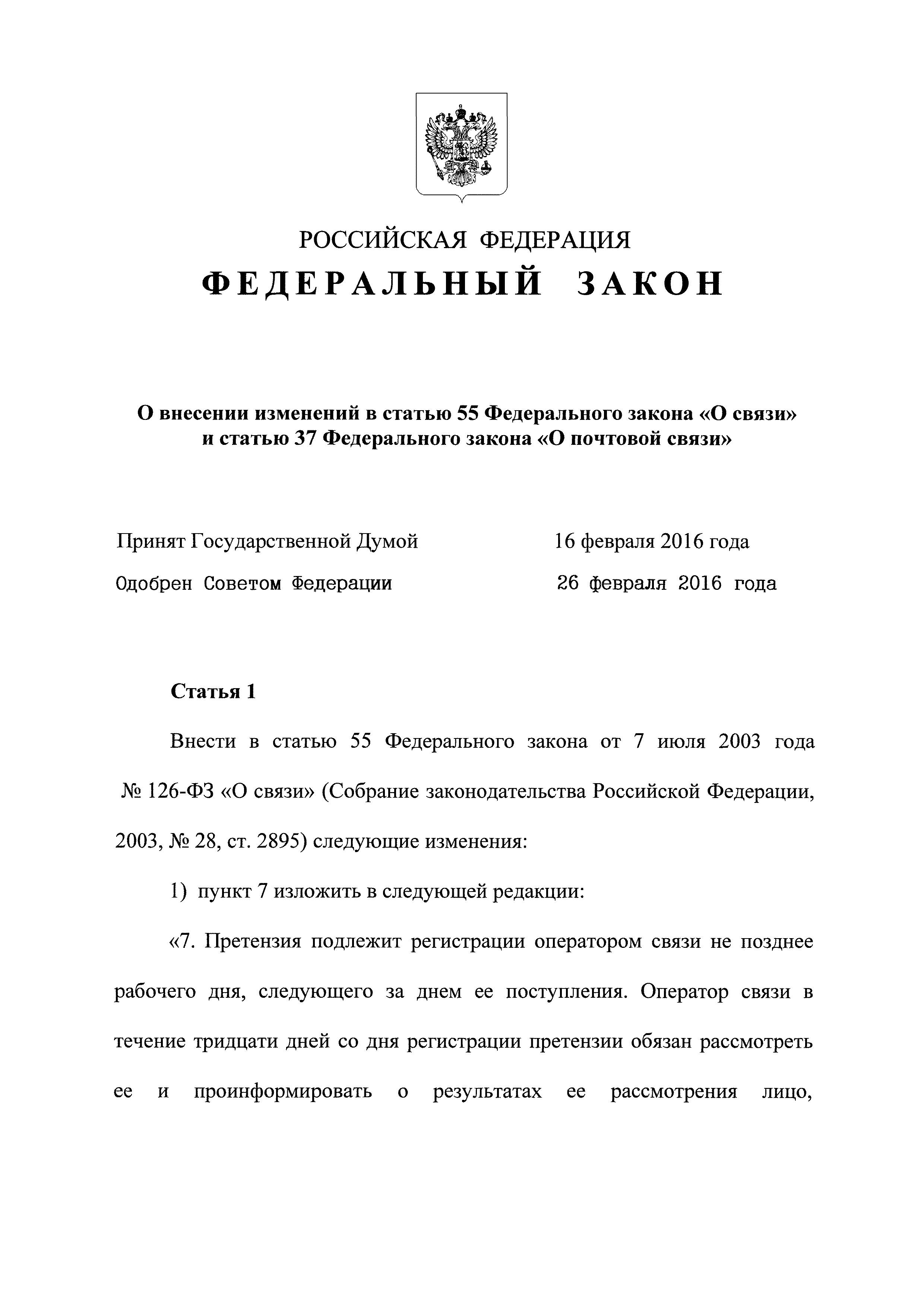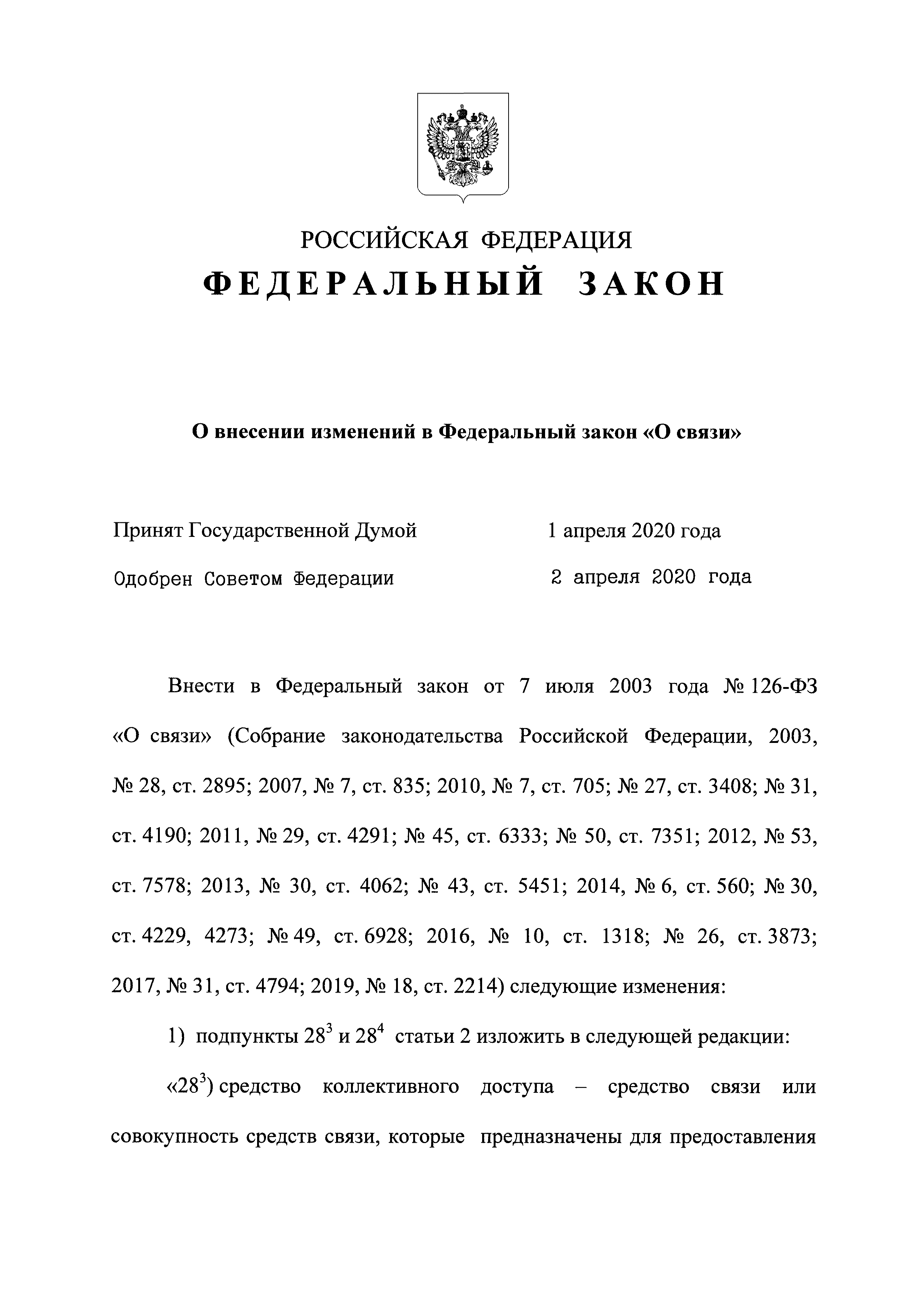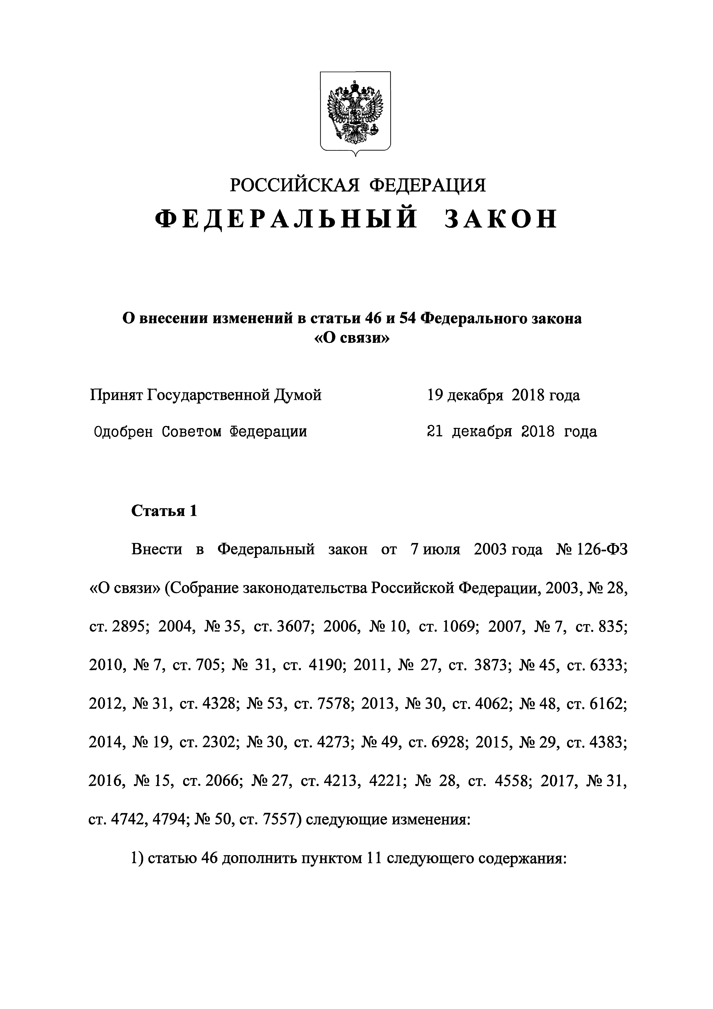 Скачать Федеральный закон 126-ФЗ О связиДата актуализации: 01.01.2021 Федеральный закон 126-ФЗ
