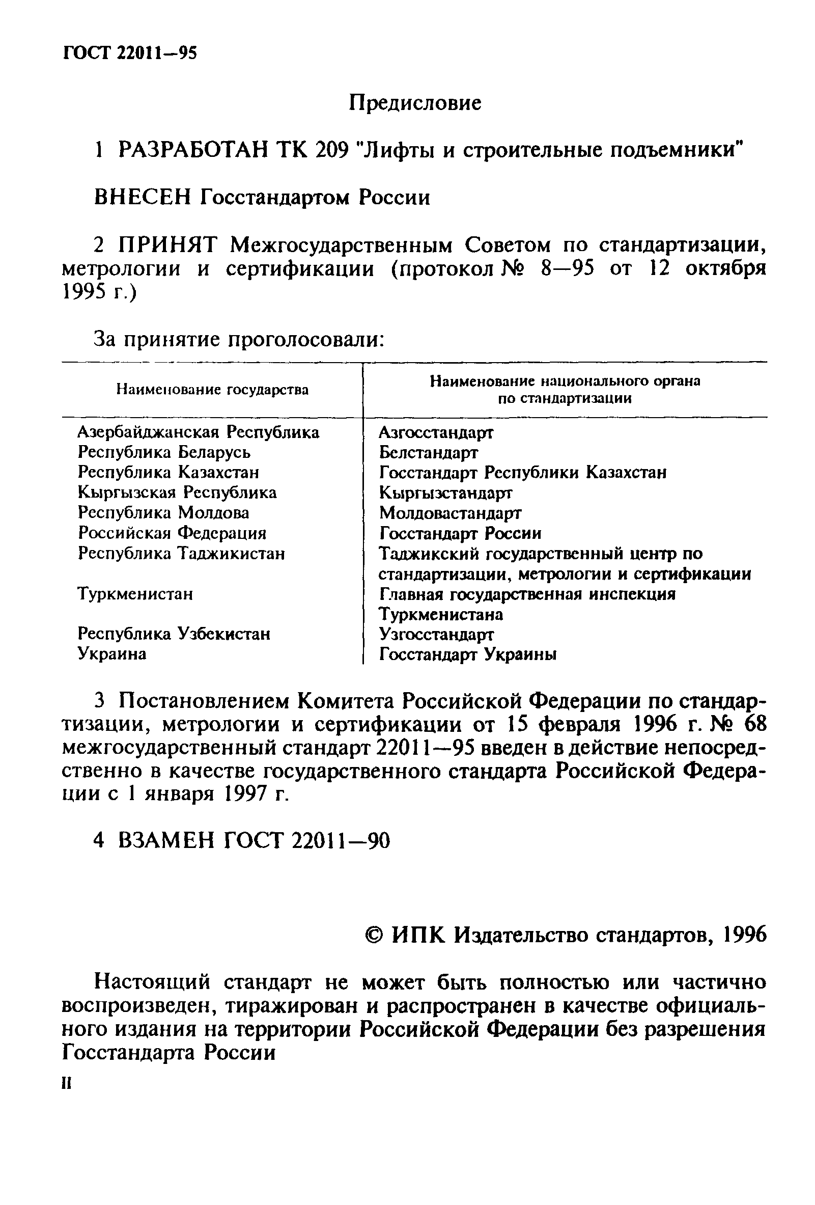 | | Утверждён: | 15.02.1996 Госстандарт России (Russian Federation Gosstandart 68) 12.10.1995 Межгосударственный Совет по стандартизации, метрологии и сертификации (Inter-Governmental Council on Standardization, Metrology, and Certification 8-95)
