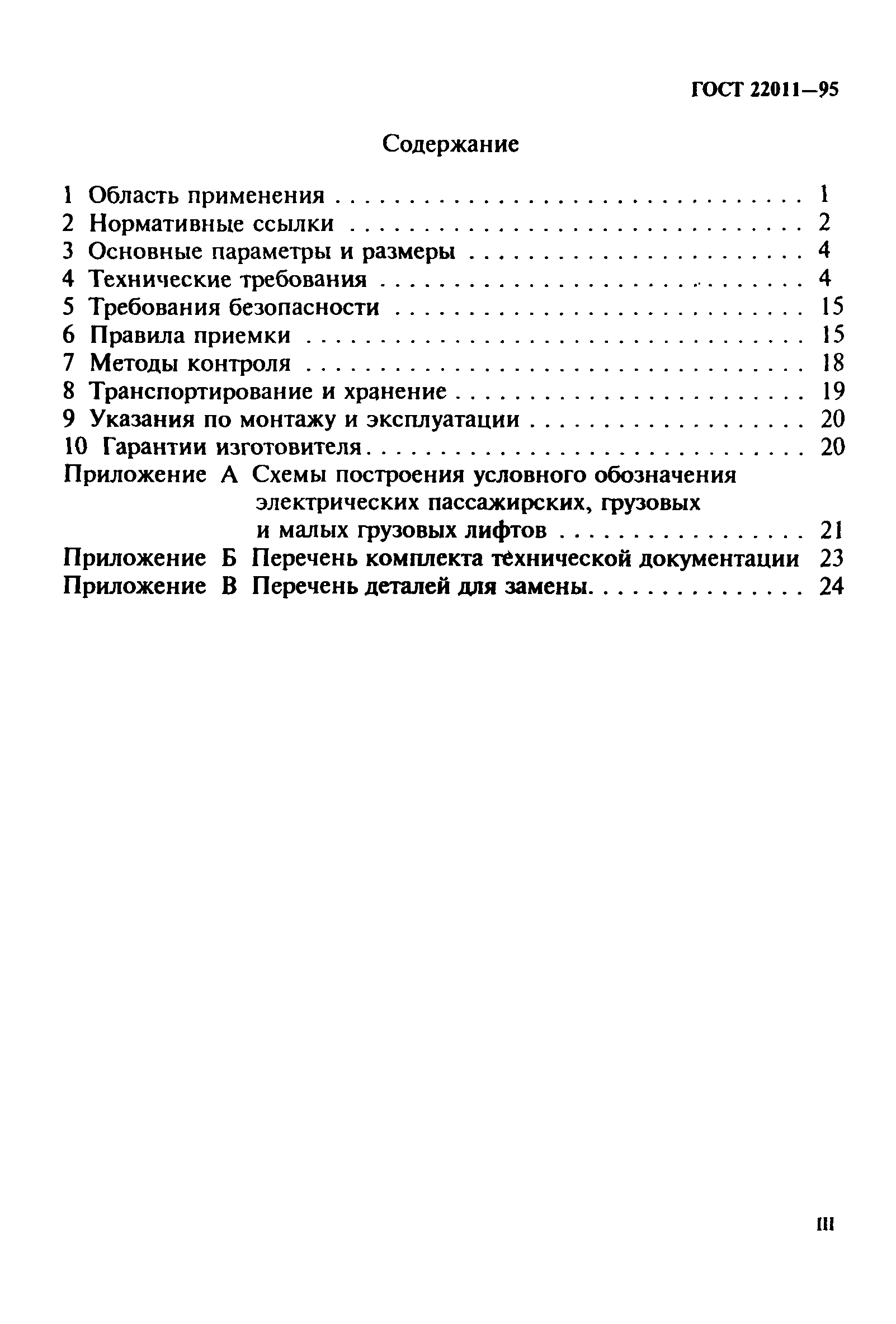 - для работы в условиях конденсации влаги в шахте или машинном помещении, выпадения инея или образования льда на оборудовании. | | Оглавление: | 1 Область применения 2 Нормативные ссылки 3 Основные параметры и размеры 4 Технические требования 5 Требования безопасности 6 Правила приемки 7 Методы контроля 8 Транспортирование и хранение 9 Указания по монтажу и эксплуатации 10 Гарантии изготовителя Приложение А Схемы построения условного обозначения электрических пассажирских, грузовых и малых грузовых лифтов Приложение Б Перечень комплекта технической документации Приложение В Перечень деталей для замены | | Разработан: | ТК 209 Лифты, строительные подъемники и эскалаторы