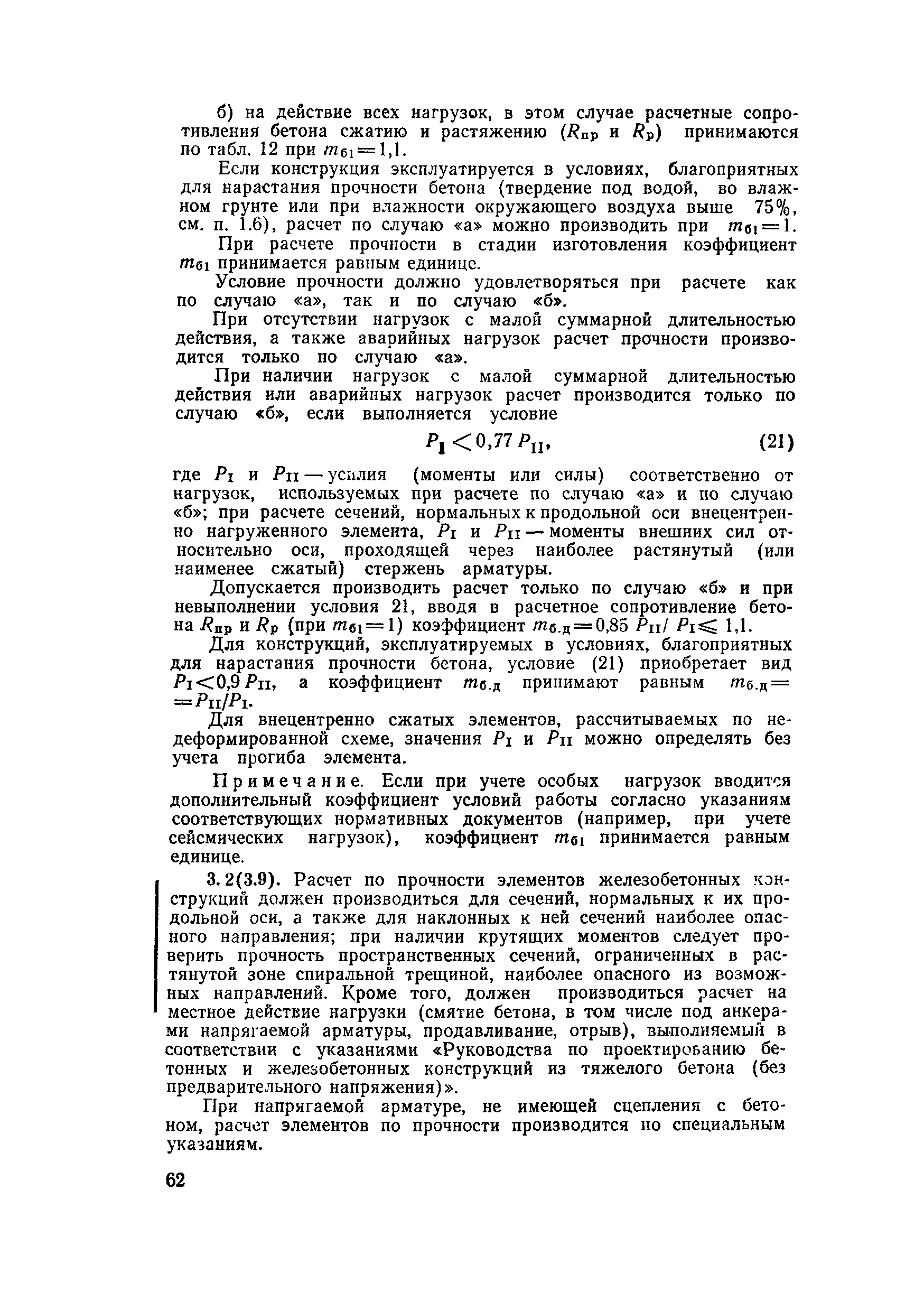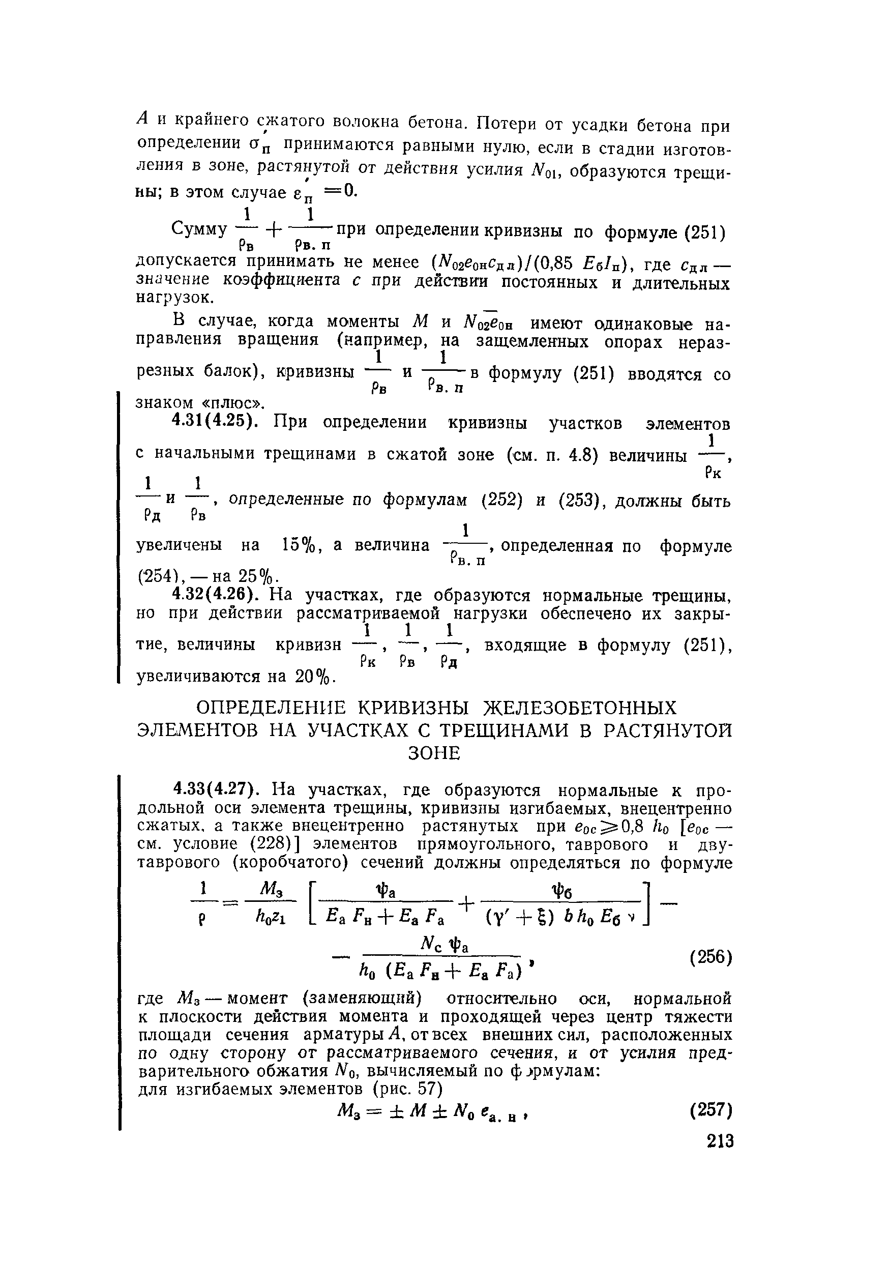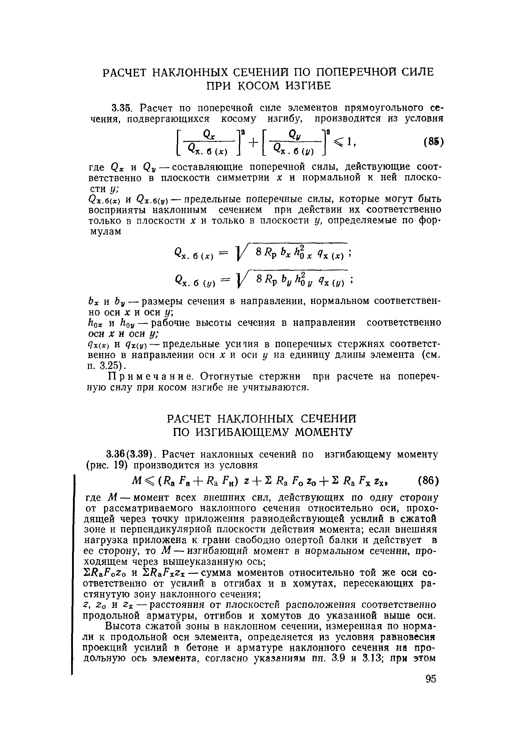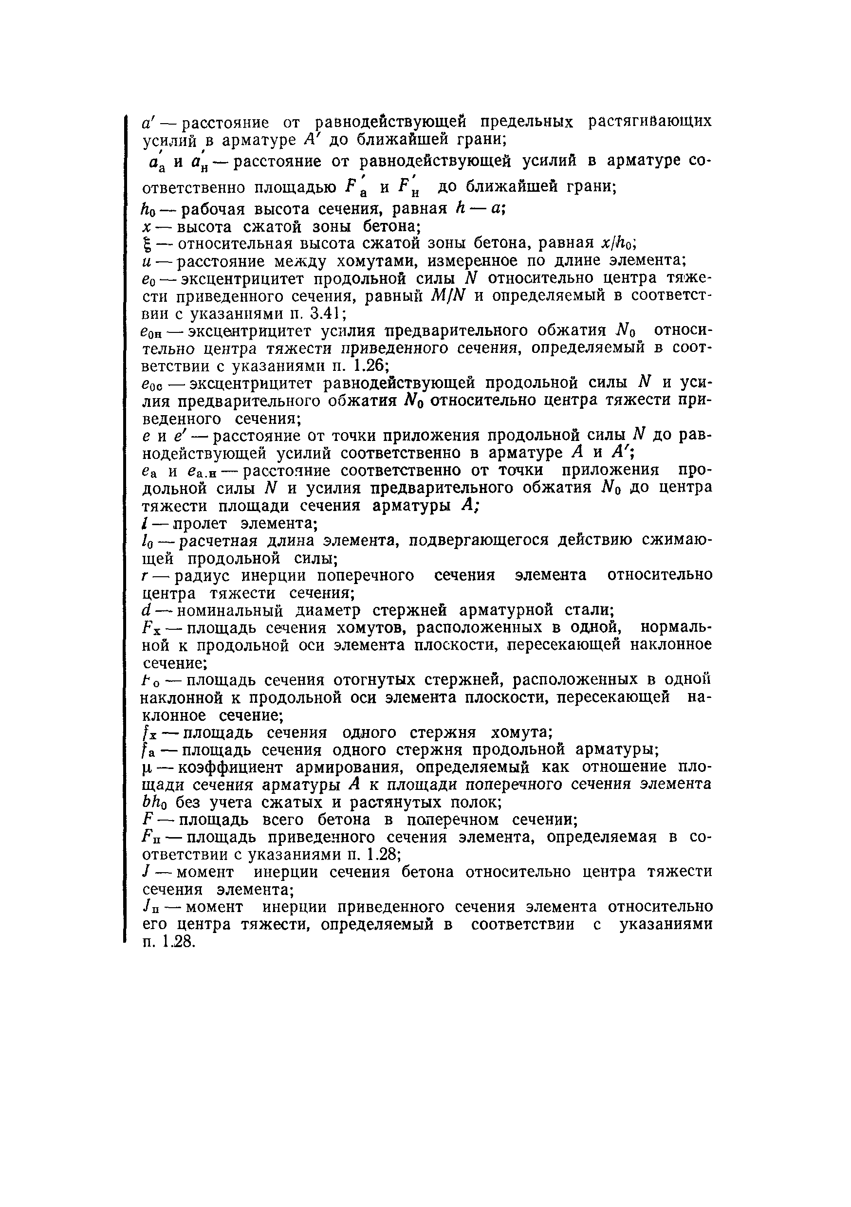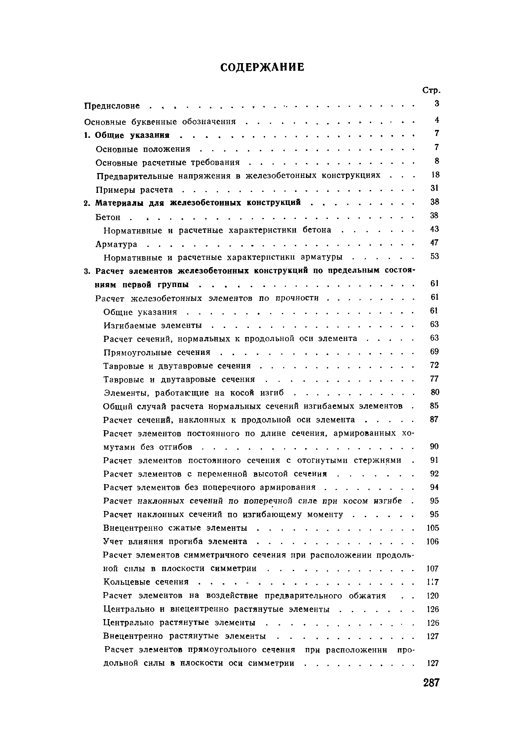 | Оглавление: | Предисловие Основные буквенные обозначения 1. Общие указания Основные положения Основные расчетные требования Предварительные напряжения в железобетонных конструкциях Примеры расчета 2. Материалы для железобетонных конструкций Бетон Нормативные и расчетные характеристики бетона Арматура Нормативные и расчетные характеристики арматуры 3. Расчет элементов железобетонных конструкций по предельным состояниям первой группы Расчет железобетонных элементов по прочности Общие указания Изгибаемые элементы Расчет сечений, нормальных к продольной оси элемента Прямоугольные сечения Тавровые и двутавровые сечения Тавровые и двутавровые сечения Элементы, работающие на косой изгиб Общий случай расчета нормальных сечений изгибаемых элементов Расчет сечений, наклонных к продольной оси элемента Расчет элементов постоянного по длине сечения, армированных хомутами без отгибов Расчет элементов постоянного сечения с отогнутыми стержнями Расчет элементов с переменной высотой сечения Расчет элементов без поперечного армирования Расчет наклонных сечений по поперечной силе при косом изгибе Расчет наклонных сечений по изгибающему моменту Внецентренно сжатые элементы Учет влияния прогиба элемента Расчет элементов симметричного сечения при расположении продольной силы в плоскости симметрии Кольцевые сечения Расчет элементов на воздействие предварительного обжатия Центрально и внецентренно растянутые элементы Центрально растянутые элементы Внецентренно растянутые элементы Расчет элементов прямоугольного сечения при расположении продольной силы в плоскости оси симметрии Расчет сечений, наклонных к продольной оси элементов Элементы, работающие на кручение с изгибом Элементы прямоугольного сечения Элементы таврового, двутаврового и других сечений, имеющих входящие углы Элементы кольцевого сечения с продольной арматурой, равномерно распределенной по окружности Примеры расчета Расчет железобетонных конструкций на выносливость Примеры расчета 4. Расчет элементов железобетонных конструкций по предельным состояниям второй группы Расчет железобетонных элементов по образованию трещин Расчет по образованию трещин, нормальных к продольной оси элемента Расчет по образованию трещин, наклонных к продольной оси элемента Расчет железобетонных элементов по раскрытию трещин Расчет по раскрытию трещин, нормальных к продольной оси элемента Расчет по раскрытию трещин, наклонных к продольной оси элемента Расчет железобетонных элементов по закрытию трещин Расчет по закрытию трещин, нормальных к продольной оси элемента Расчет по закрытию трещин, наклонных к продольной оси элемента Расчет элементов железобетонных конструкций по деформациям Определение кривизны железобетонных элементов на участках без трещин в растянутой зоне Определение кривизны железобетонных элементов на участках с трещинами в растянутой зоне Определение прогибов Определение продольных деформаций Приближенные методы расчета деформаций Примеры расчета 5. Конструктивные требования Общие требования Габариты и очертания элементов конструкций Защитный слой бетона Минимальные расстояния между стержнями арматуры Анкеровка арматуры Анкеровка напрягаемой арматуры Указания по армированию железобетонных элементов Продольное арм