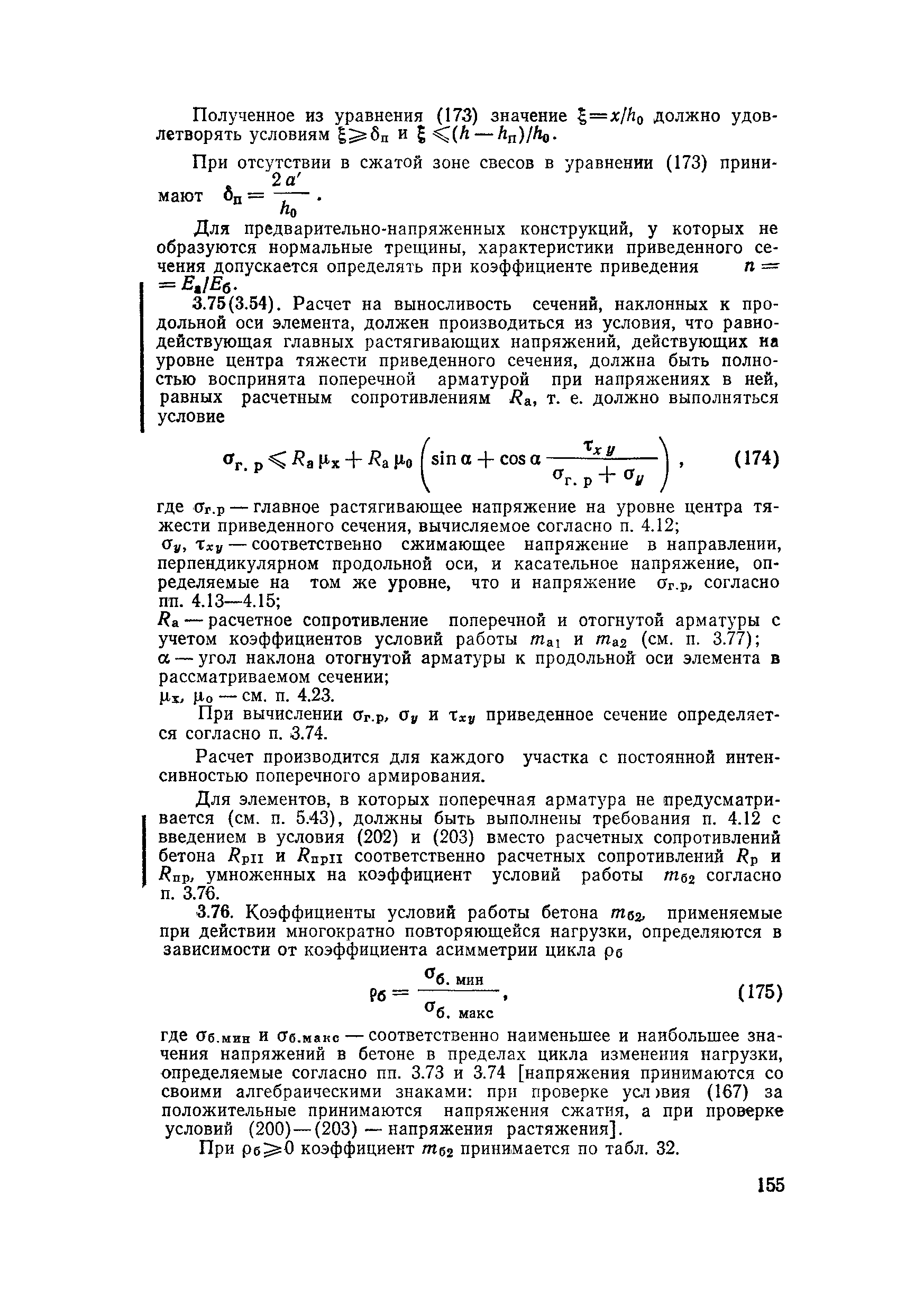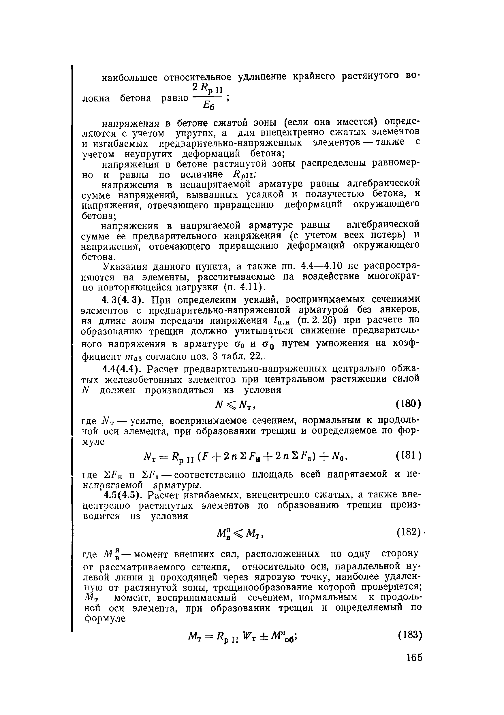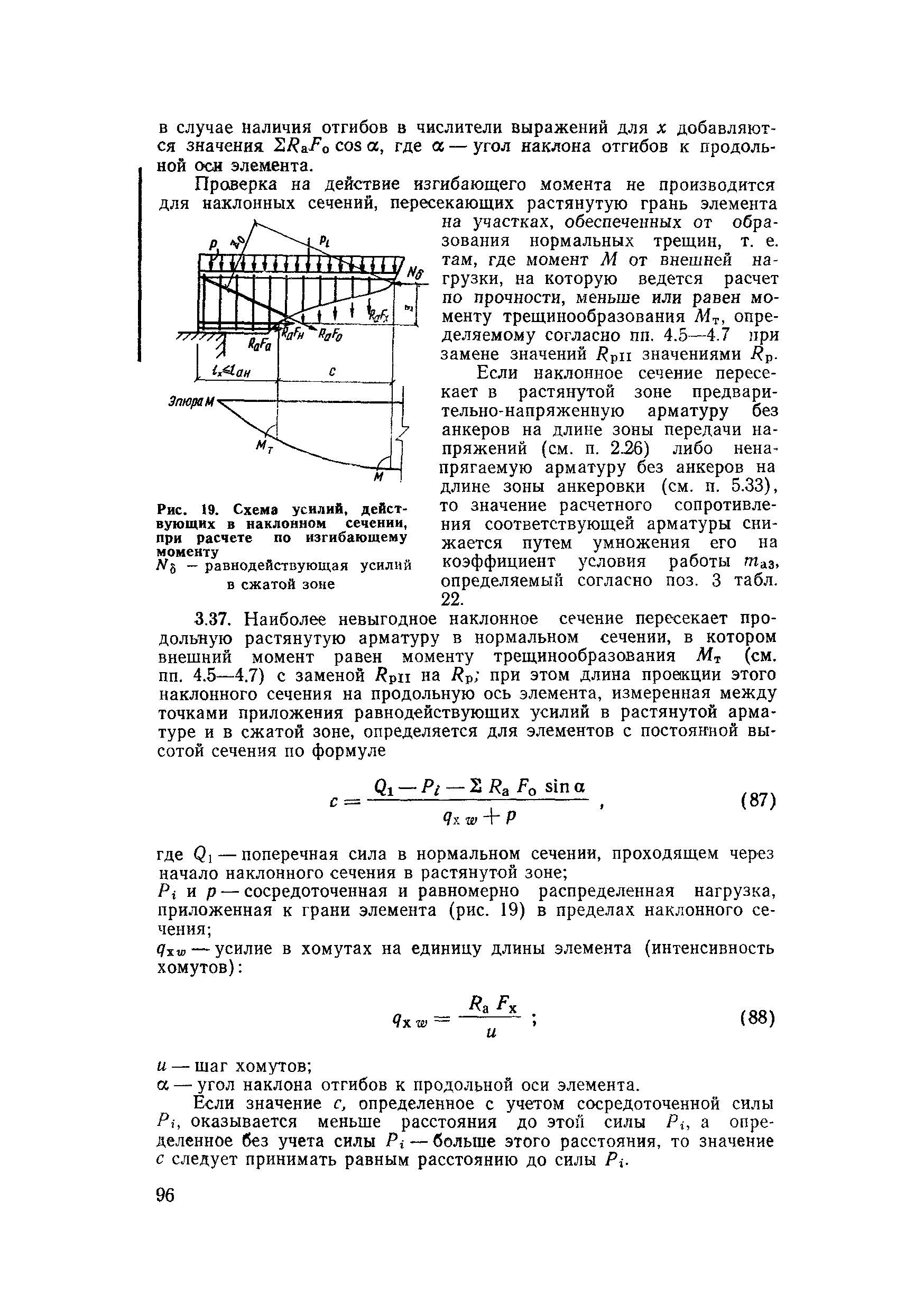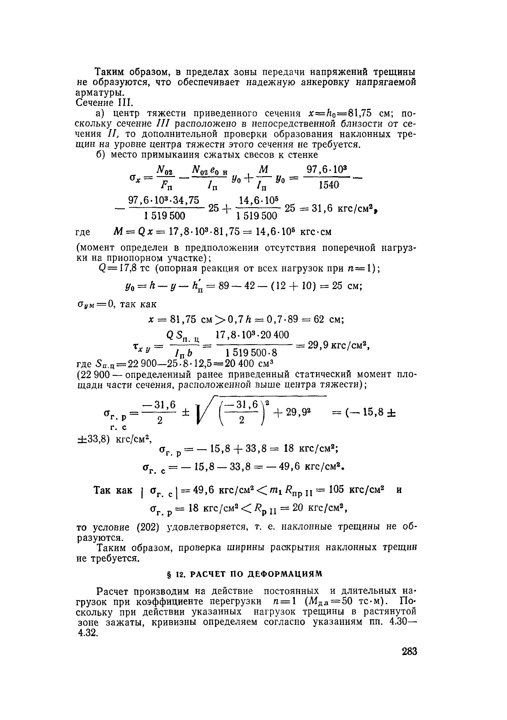 | Оглавление: | Предисловие Основные буквенные обозначения 1. Общие указания Основные положения Основные расчетные требования Предварительные напряжения в железобетонных конструкциях Примеры расчета 2. Материалы для железобетонных конструкций Бетон Нормативные и расчетные характеристики бетона Арматура Нормативные и расчетные характеристики арматуры 3. Расчет элементов железобетонных конструкций по предельным состояниям первой группы Расчет железобетонных элементов по прочности Общие указания Изгибаемые элементы Расчет сечений, нормальных к продольной оси элемента Прямоугольные сечения Тавровые и двутавровые сечения Тавровые и двутавровые сечения Элементы, работающие на косой изгиб Общий случай расчета нормальных сечений изгибаемых элементов Расчет сечений, наклонных к продольной оси элемента Расчет элементов постоянного по длине сечения, армированных хомутами без отгибов Расчет элементов постоянного сечения с отогнутыми стержнями Расчет элементов с переменной высотой сечения Расчет элементов без поперечного армирования Расчет наклонных сечений по поперечной силе при косом изгибе Расчет наклонных сечений по изгибающему моменту Внецентренно сжатые элементы Учет влияния прогиба элемента Расчет элементов симметричного сечения при расположении продольной силы в плоскости симметрии Кольцевые сечения Расчет элементов на воздействие предварительного обжатия Центрально и внецентренно растянутые элементы Центрально растянутые элементы Внецентренно растянутые элементы Расчет элементов прямоугольного сечения при расположении продольной силы в плоскости оси симметрии Расчет сечений, наклонных к продольной оси элементов Элементы, работающие на кручение с изгибом Элементы прямоугольного сечения Элементы таврового, двутаврового и других сечений, имеющих входящие углы Элементы кольцевого сечения с продольной арматурой, равномерно распределенной по окружности Примеры расчета Расчет железобетонных конструкций на выносливость Примеры расчета 4. Расчет элементов железобетонных конструкций по предельным состояниям второй группы Расчет железобетонных элементов по образованию трещин Расчет по образованию трещин, нормальных к продольной оси элемента Расчет по образованию трещин, наклонных к продольной оси элемента Расчет железобетонных элементов по раскрытию трещин Расчет по раскрытию трещин, нормальных к продольной оси элемента Расчет по раскрытию трещин, наклонных к продольной оси элемента Расчет железобетонных элементов по закрытию трещин Расчет по закрытию трещин, нормальных к продольной оси элемента Расчет по закрытию трещин, наклонных к продольной оси элемента Расчет элементов железобетонных конструкций по деформациям Определение кривизны железобетонных элементов на участках без трещин в растянутой зоне Определение кривизны железобетонных элементов на участках с трещинами в растянутой зоне Определение прогибов Определение продольных деформаций Приближенные методы расчета деформаций Примеры расчета 5. Конструктивные требования Общие требования Габариты и очертания элементов конструкций Защитный слой бетона Минимальные расстояния между стержнями арматуры Анкеровка арматуры Анкеровка напрягаемой арматуры Указания по армированию железобетонных элементов Продольное арм