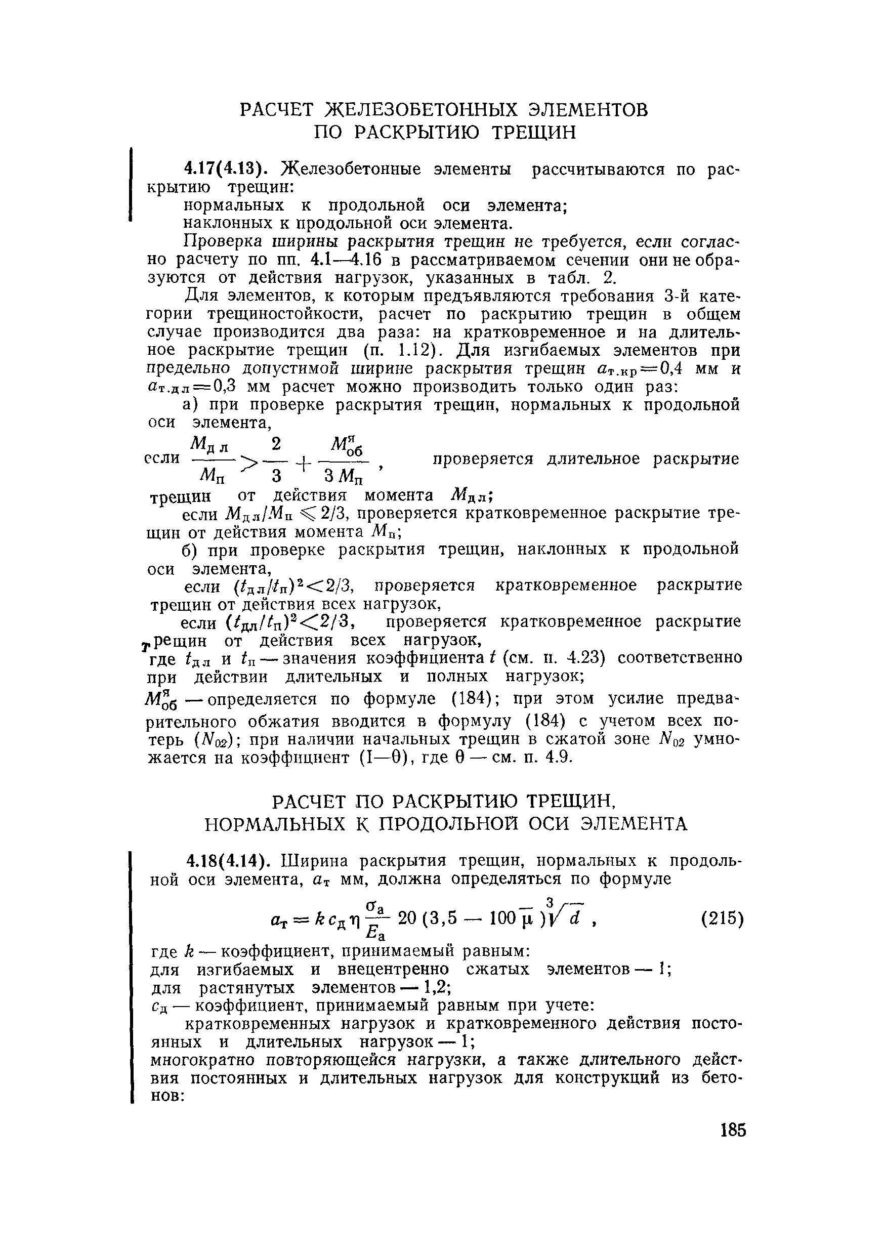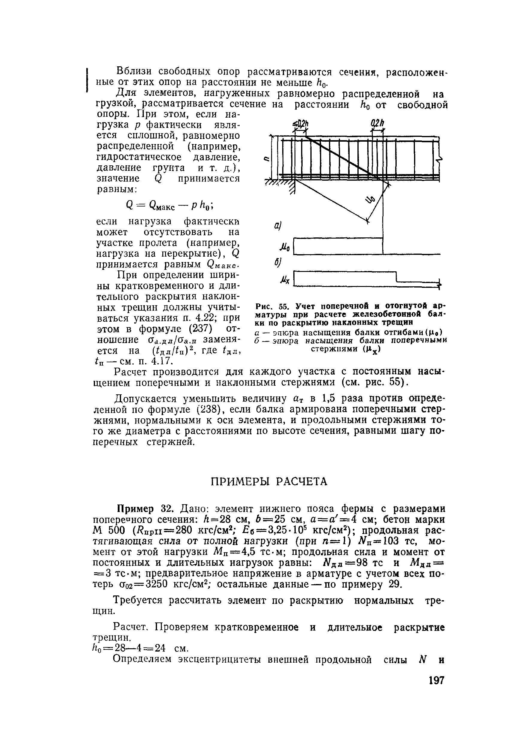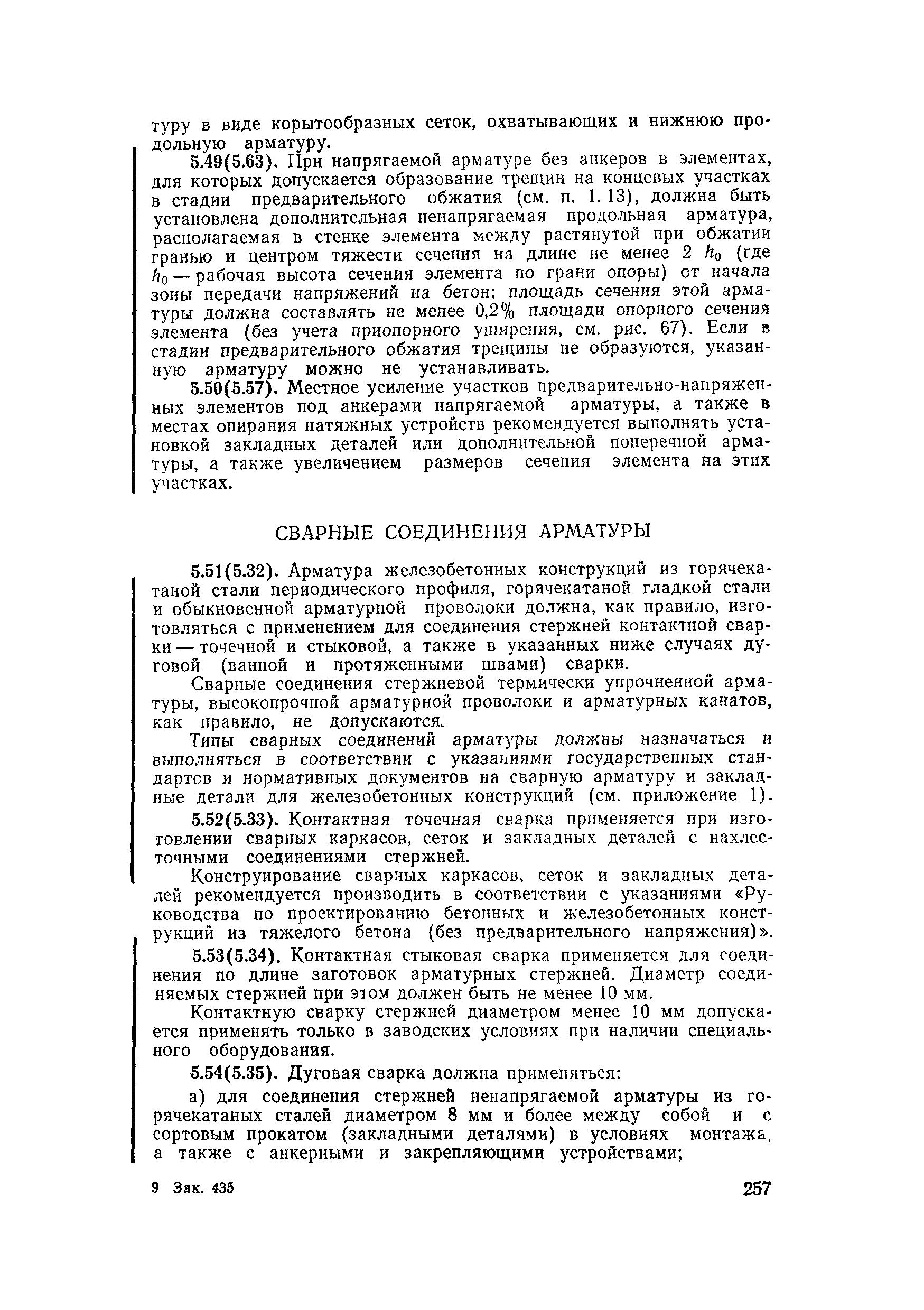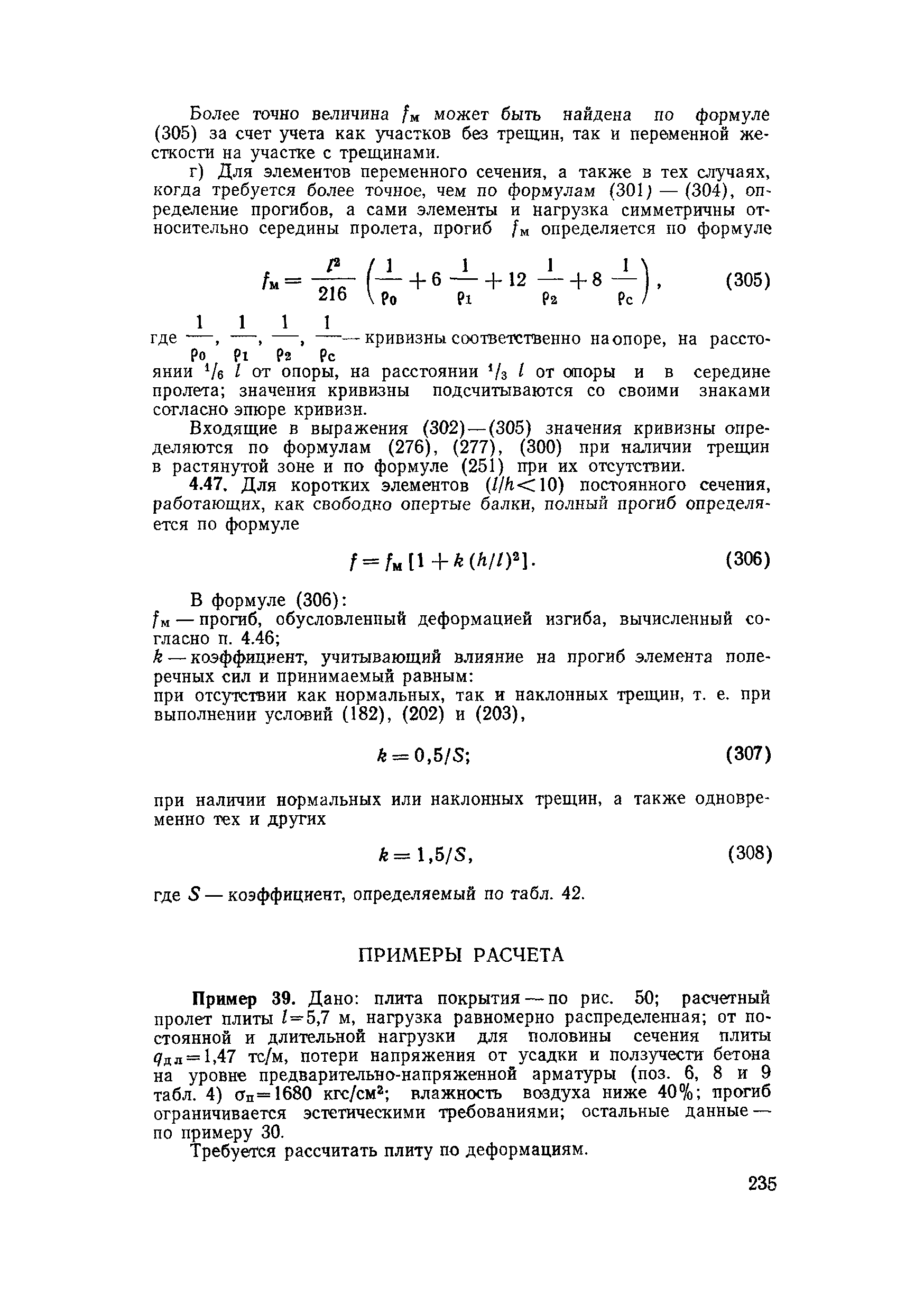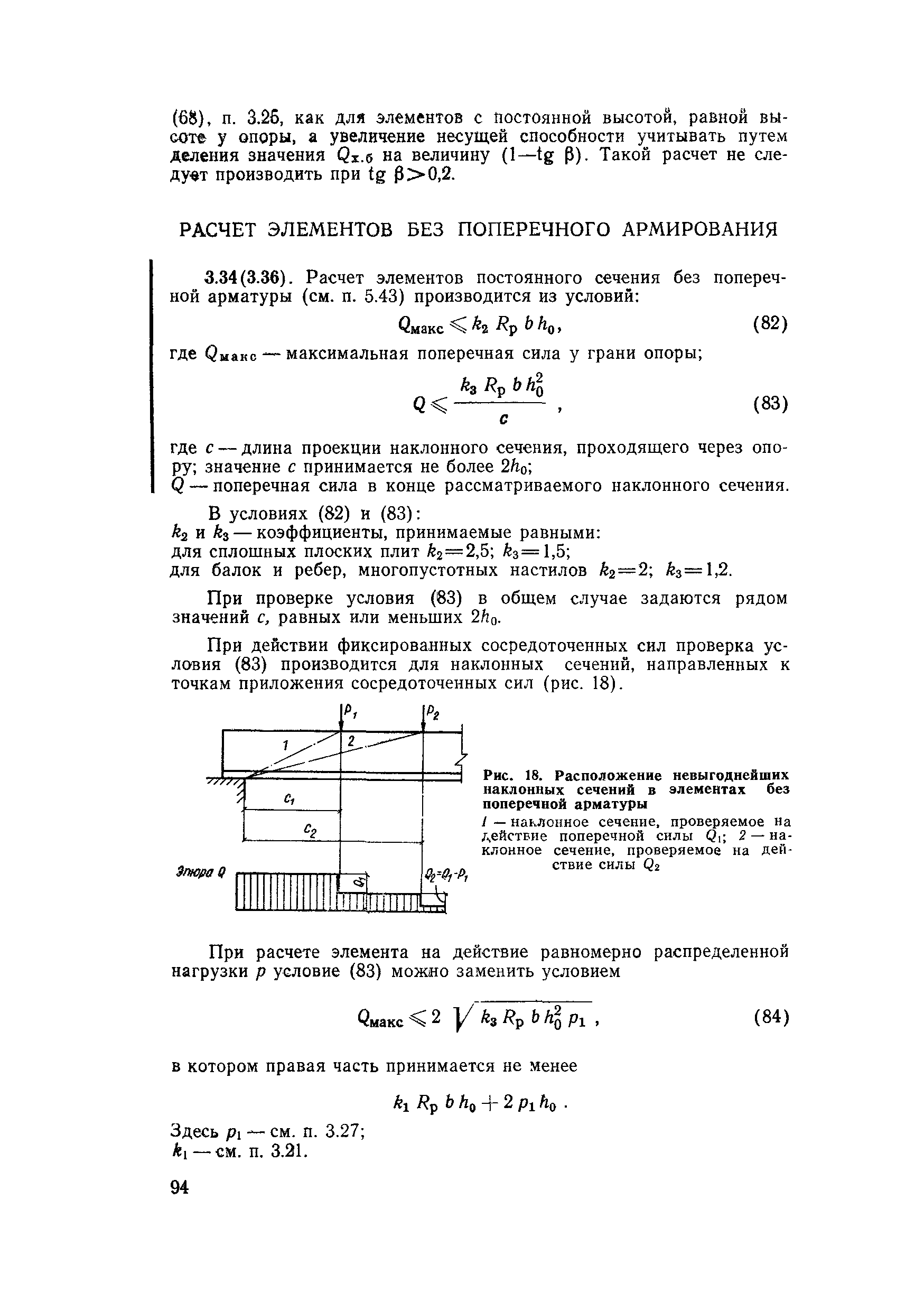| Оглавление: | Предисловие Основные буквенные обозначения 1. Общие указания Основные положения Основные расчетные требования Предварительные напряжения в железобетонных конструкциях Примеры расчета 2. Материалы для железобетонных конструкций Бетон Нормативные и расчетные характеристики бетона Арматура Нормативные и расчетные характеристики арматуры 3. Расчет элементов железобетонных конструкций по предельным состояниям первой группы Расчет железобетонных элементов по прочности Общие указания Изгибаемые элементы Расчет сечений, нормальных к продольной оси элемента Прямоугольные сечения Тавровые и двутавровые сечения Тавровые и двутавровые сечения Элементы, работающие на косой изгиб Общий случай расчета нормальных сечений изгибаемых элементов Расчет сечений, наклонных к продольной оси элемента Расчет элементов постоянного по длине сечения, армированных хомутами без отгибов Расчет элементов постоянного сечения с отогнутыми стержнями Расчет элементов с переменной высотой сечения Расчет элементов без поперечного армирования Расчет наклонных сечений по поперечной силе при косом изгибе Расчет наклонных сечений по изгибающему моменту Внецентренно сжатые элементы Учет влияния прогиба элемента Расчет элементов симметричного сечения при расположении продольной силы в плоскости симметрии Кольцевые сечения Расчет элементов на воздействие предварительного обжатия Центрально и внецентренно растянутые элементы Центрально растянутые элементы Внецентренно растянутые элементы Расчет элементов прямоугольного сечения при расположении продольной силы в плоскости оси симметрии Расчет сечений, наклонных к продольной оси элементов Элементы, работающие на кручение с изгибом Элементы прямоугольного сечения Элементы таврового, двутаврового и других сечений, имеющих входящие углы Элементы кольцевого сечения с продольной арматурой, равномерно распределенной по окружности Примеры расчета Расчет железобетонных конструкций на выносливость Примеры расчета 4. Расчет элементов железобетонных конструкций по предельным состояниям второй группы Расчет железобетонных элементов по образованию трещин Расчет по образованию трещин, нормальных к продольной оси элемента Расчет по образованию трещин, наклонных к продольной оси элемента Расчет железобетонных элементов по раскрытию трещин Расчет по раскрытию трещин, нормальных к продольной оси элемента Расчет по раскрытию трещин, наклонных к продольной оси элемента Расчет железобетонных элементов по закрытию трещин Расчет по закрытию трещин, нормальных к продольной оси элемента Расчет по закрытию трещин, наклонных к продольной оси элемента Расчет элементов железобетонных конструкций по деформациям Определение кривизны железобетонных элементов на участках без трещин в растянутой зоне Определение кривизны железобетонных элементов на участках с трещинами в растянутой зоне Определение прогибов Определение продольных деформаций Приближенные методы расчета деформаций Примеры расчета 5. Конструктивные требования Общие требования Габариты и очертания элементов конструкций Защитный слой бетона Минимальные расстояния между стержнями арматуры Анкеровка арматуры Анкеровка напрягаемой арматуры Указания по армированию железобетонных элементов Продольное арм